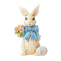 Minibeeldje van een konijn dat een boeket bloemen vasthoudt met een Pasen aan zijn voeten.... meer zien