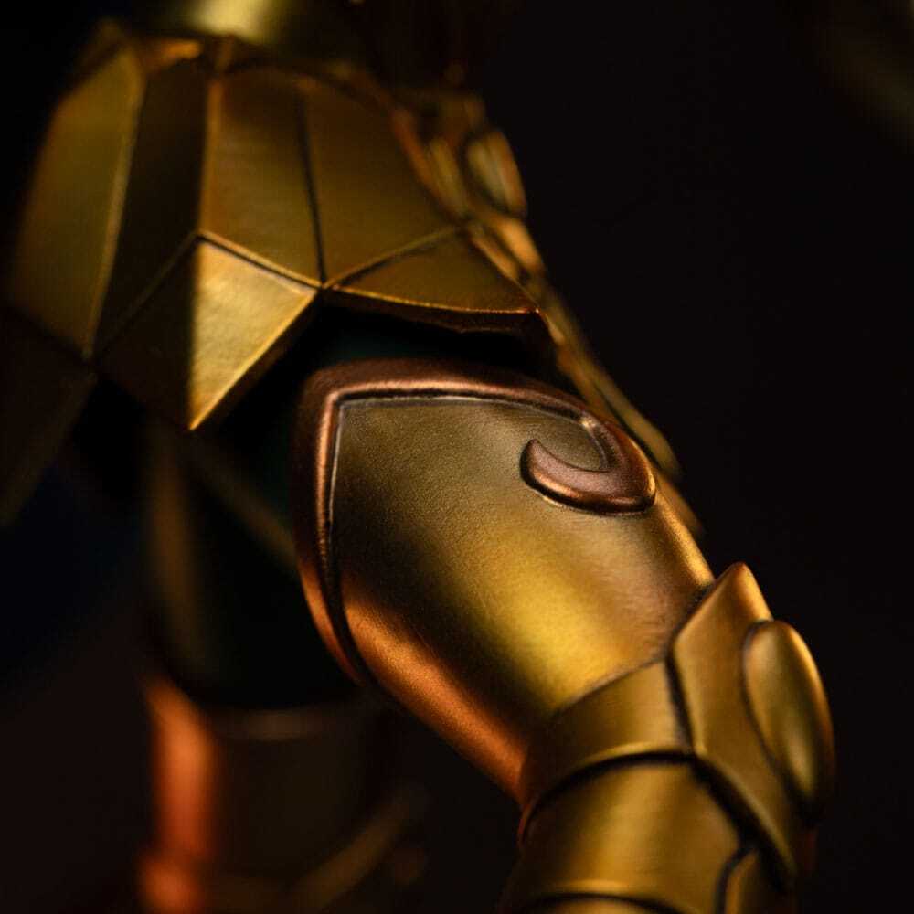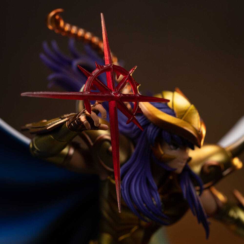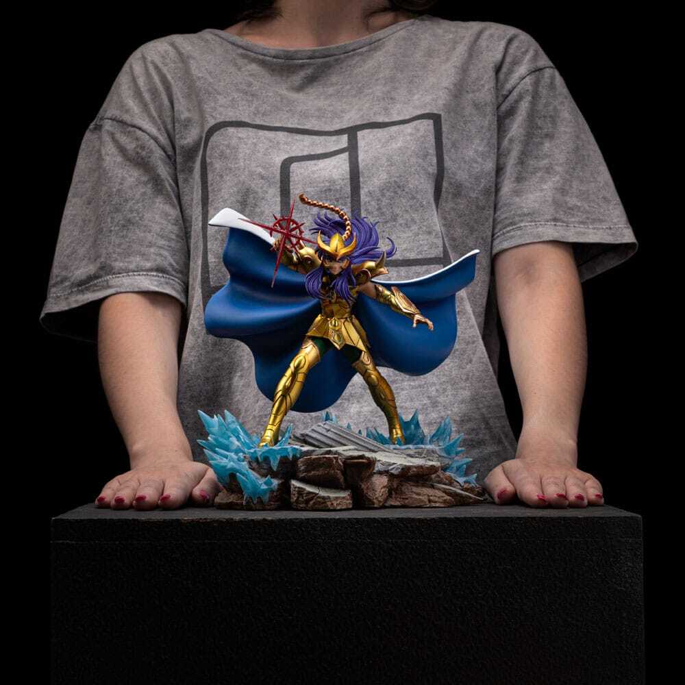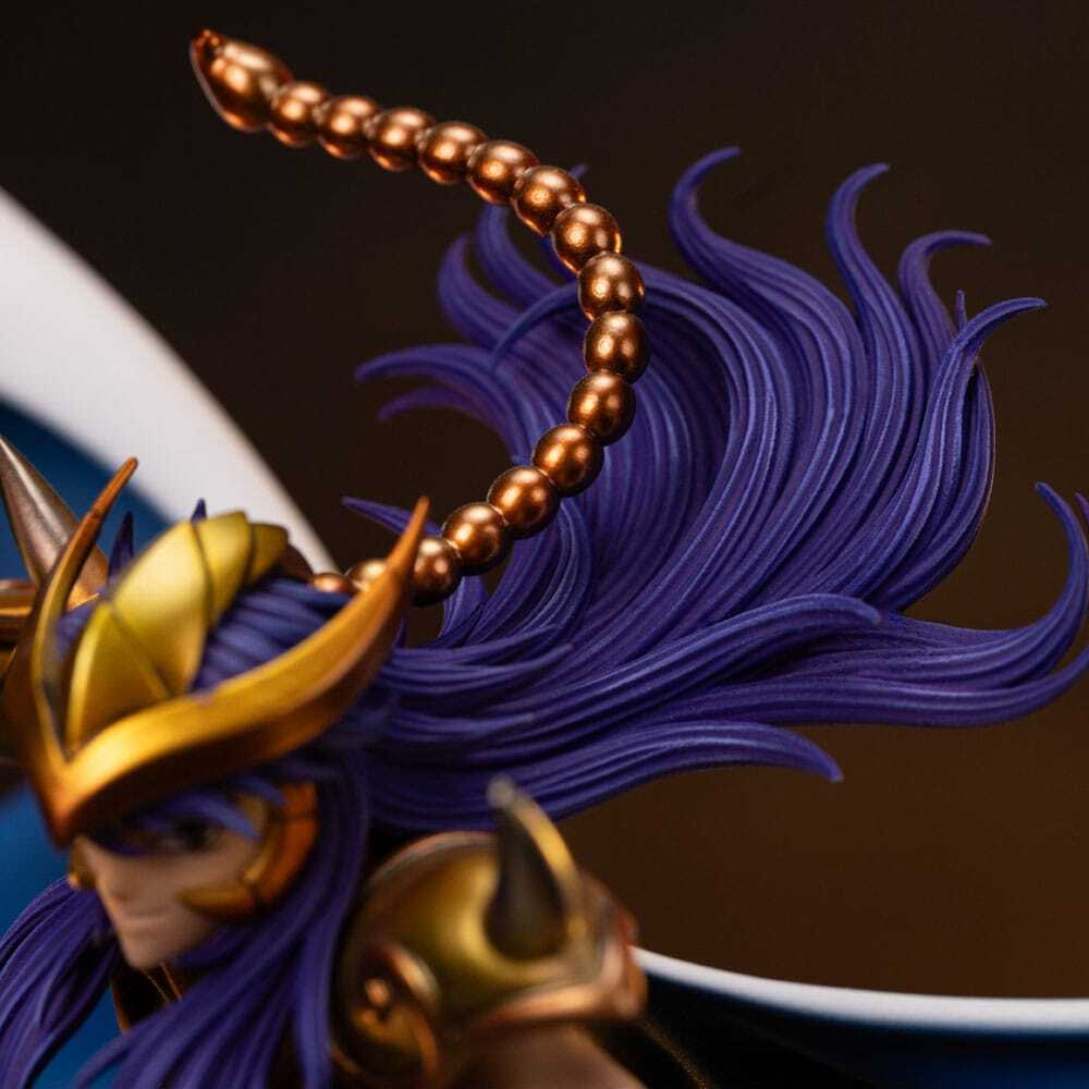 Dit beeld is officieel gelicentieerd en wordt in een gelimiteerde oplage geproduceerd. De sokkel is voorzien van gedetailleerde details die trouw zijn aan de originele referenties van de serie, waardoor de legendarische Gouden Heilige van Schorpioen tot leven komt.