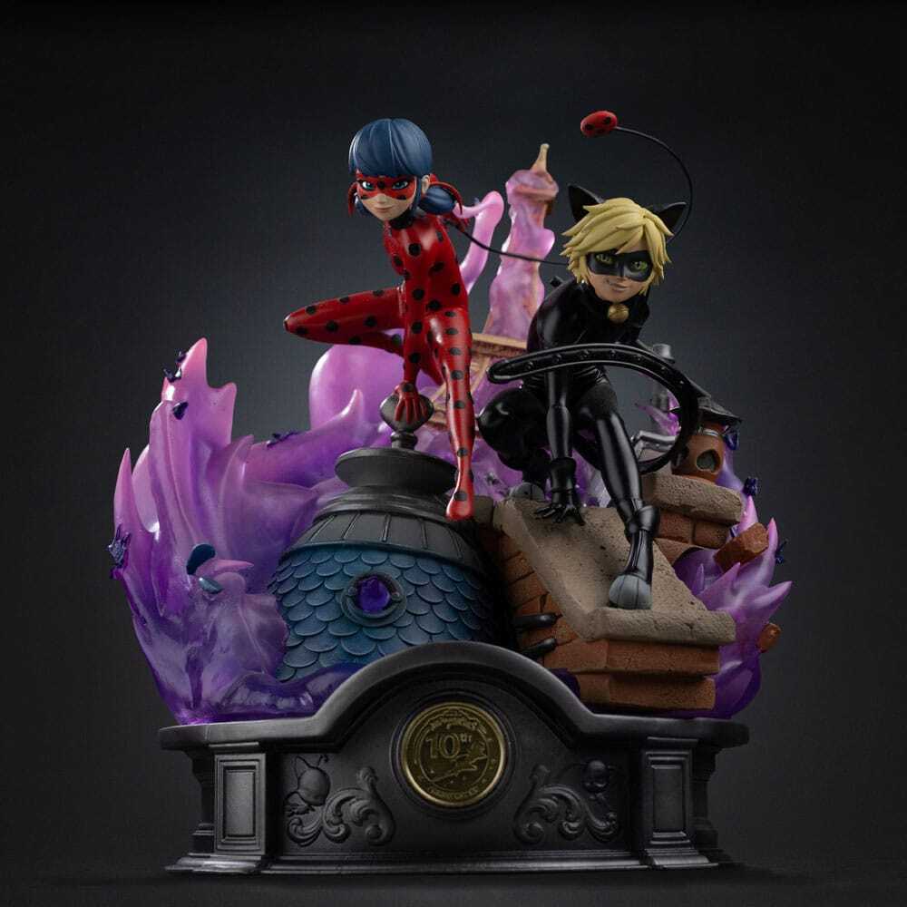 Beeldje Deluxe Art Scale Van Lady Bug En Cat Noir, Gesigneerde Editie, 23 Cm - Iron Studios Miraculous