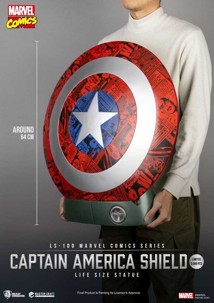 Vervaardigd met hoogwaardig PVC en levendige lak, vertegenwoordigt het getrouw het heldendom en de nalatenschap van Captain America, waardoor het een opvallende toevoeging is aan elke tentoonstelling.
