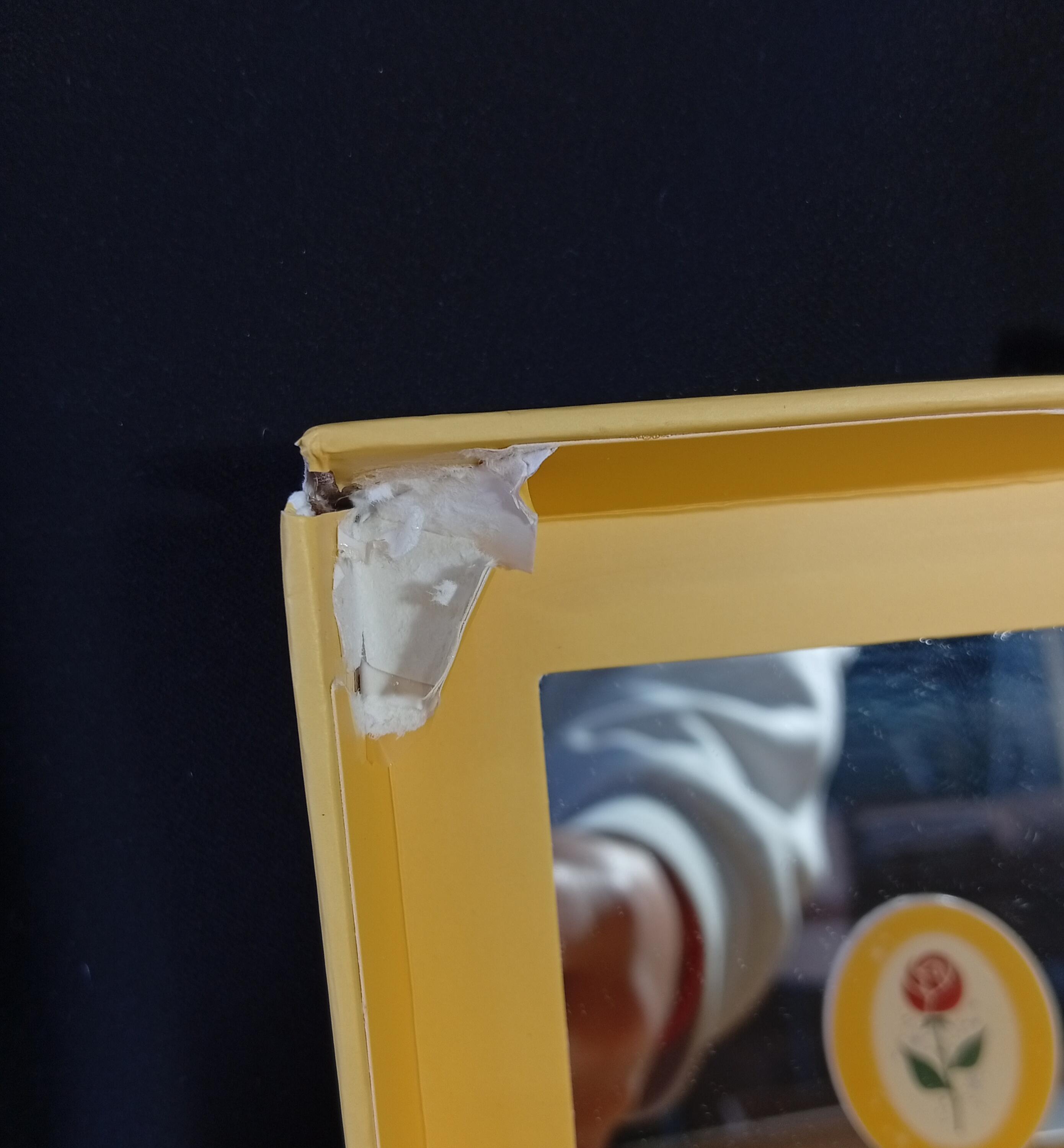 - Linkerbovenhoek is gescheurd.