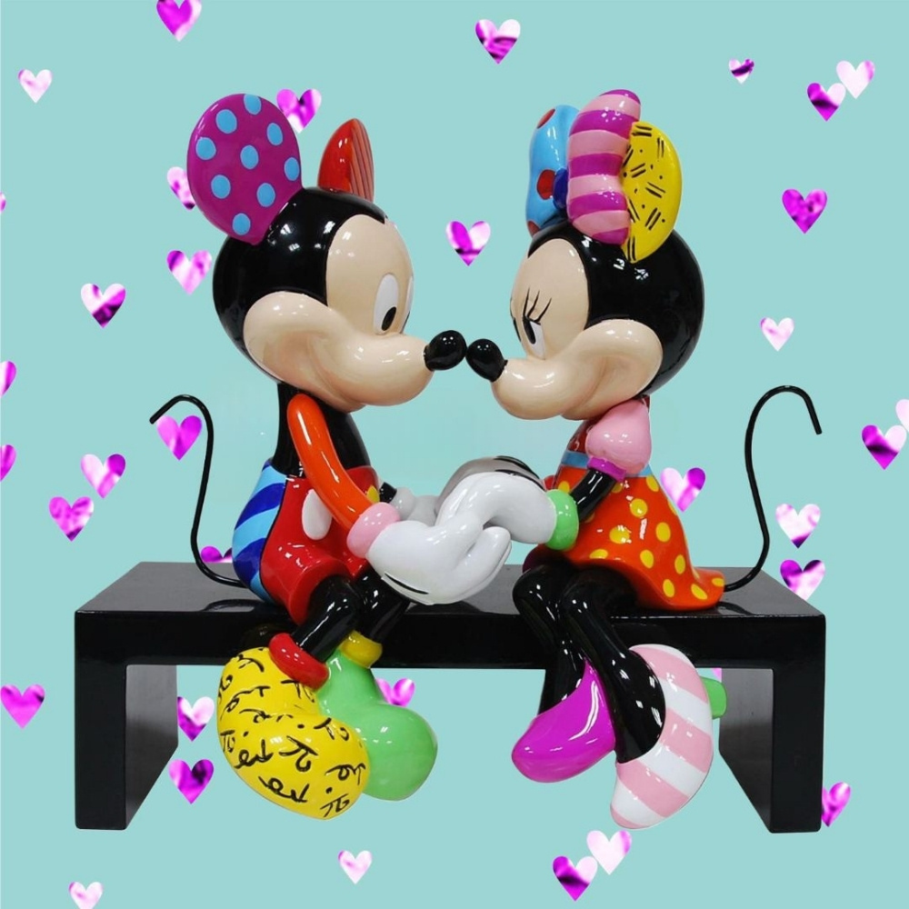 Ontworpen door popartiest Romero Britto, Mickey & Minnie deelt een lief moment, hand in hand zittend op een bankje in het park. Dit liefdevolle eerbetoon aan Disney's meest geliefde koppel is levendig versierd met Britto's iconische en gedurfde patronen en kleuren, waardoor het een uniek exemplaar is.
