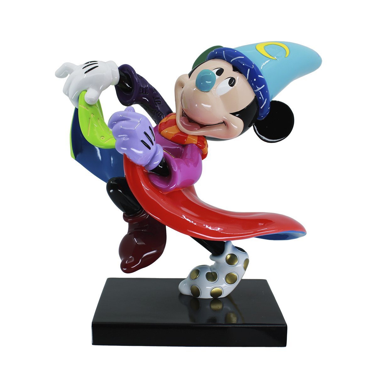 Popartiest Romero Britto viert de 85e verjaardag van Walt Disney's geanimeerde meesterwerk Fantasia met deze Sorcerer Mickey uit The Sorcerer's Apprentice. Elk beeld is met de hand geschilderd door bekwame ambachtslieden in Britto's levendige popkleurenpalet.