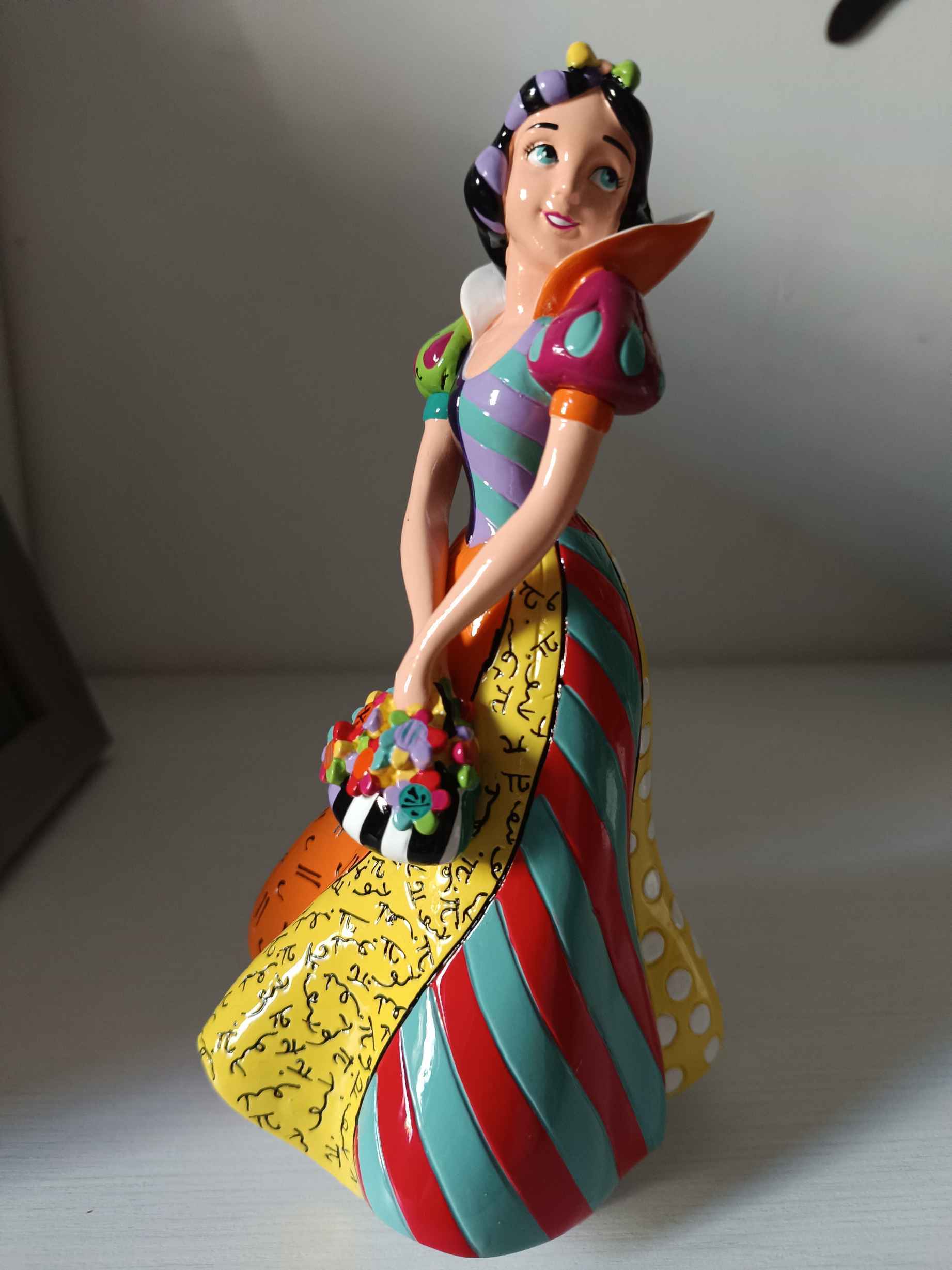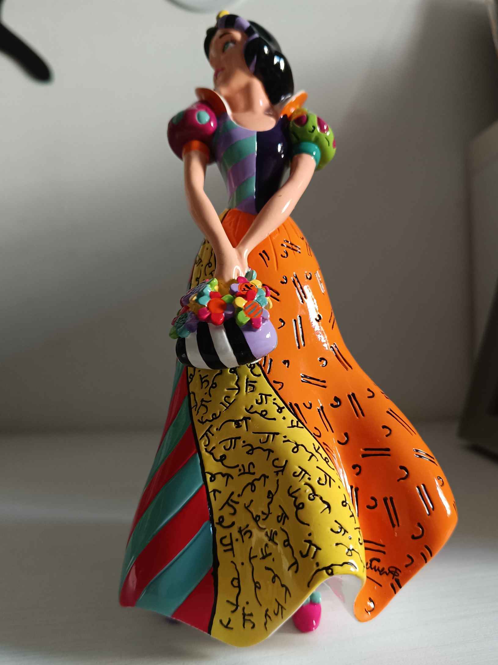 De eerste Disneyprinses, ze schittert met haar kleuren, kenmerkend voor Britto-beeldjes. Prachtig beeldje in de vorm van een tekenfilmfiguur.