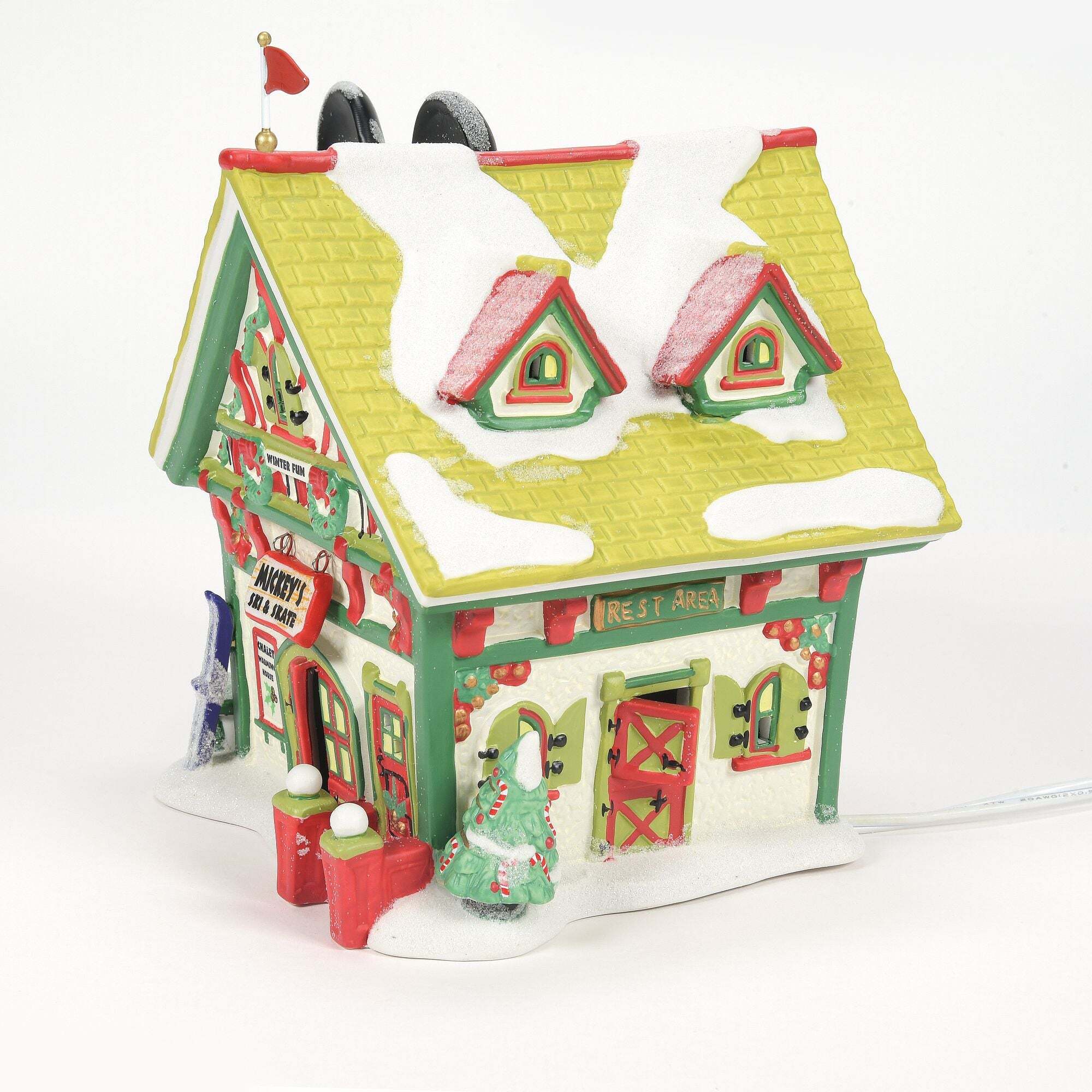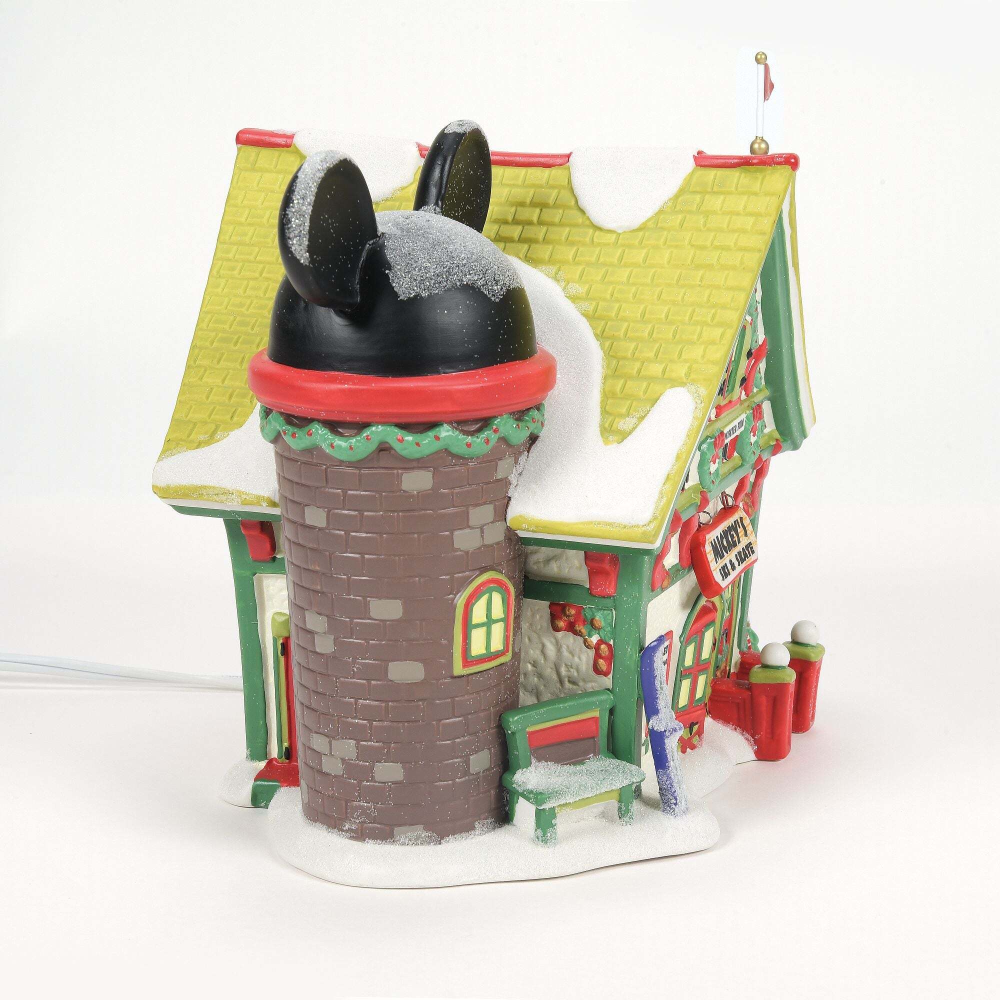 Mickey's Village komt tot leven met het Kerstmis . Elk verlicht stuk wordt geleverd met een snoer met schakelaar en een gloeilamp, en is ontworpen door de kunstenaars van Department 56.