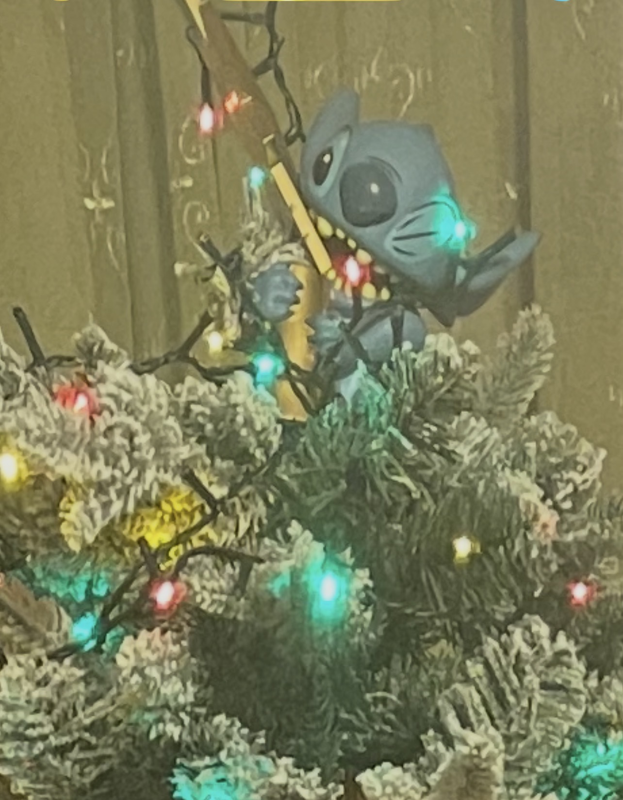 Stitch boomtopper decoratie. Geen enkel Kerstmis is veilig zolang Stitch er is. Verrukt door de lichtjes, geluiden en geuren van Kerstmis, wil Stitch helpen met het versieren van uw Kerstmis .