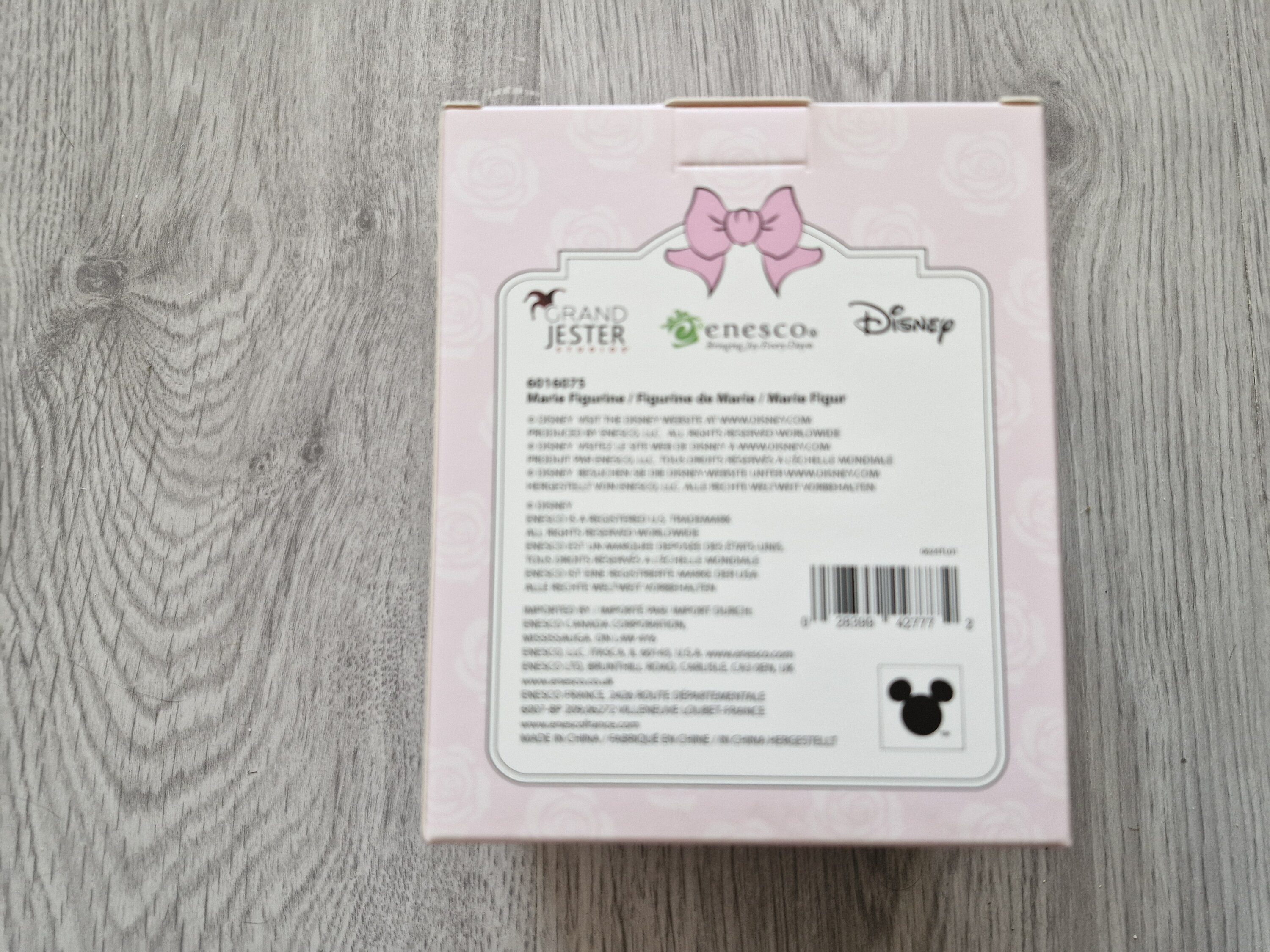 Maria-beeldje bedekt met een zacht aanvoelende gevlokte afwerking. Dit beeldje is exclusief voor Enesco Frankrijk, uit de Disney Grand Jester -collectie. Dit is geen speelgoed, alleen bedoeld voor volwassenen.