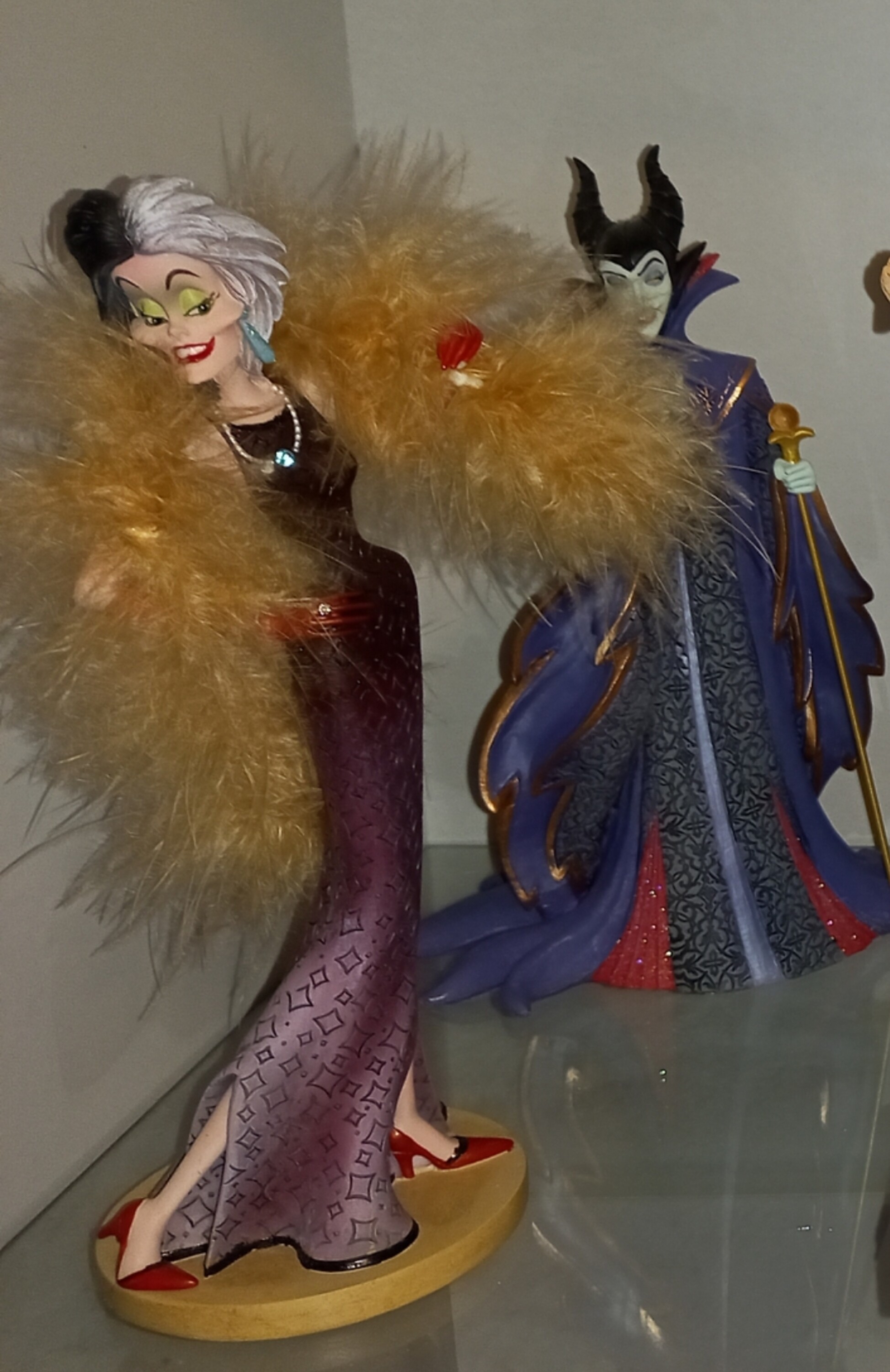 Prachtig Cruella de Vil-beeldje, met een verensjaal die een extra tintje toevoegt, waardoor het echt uniek is! ❤️