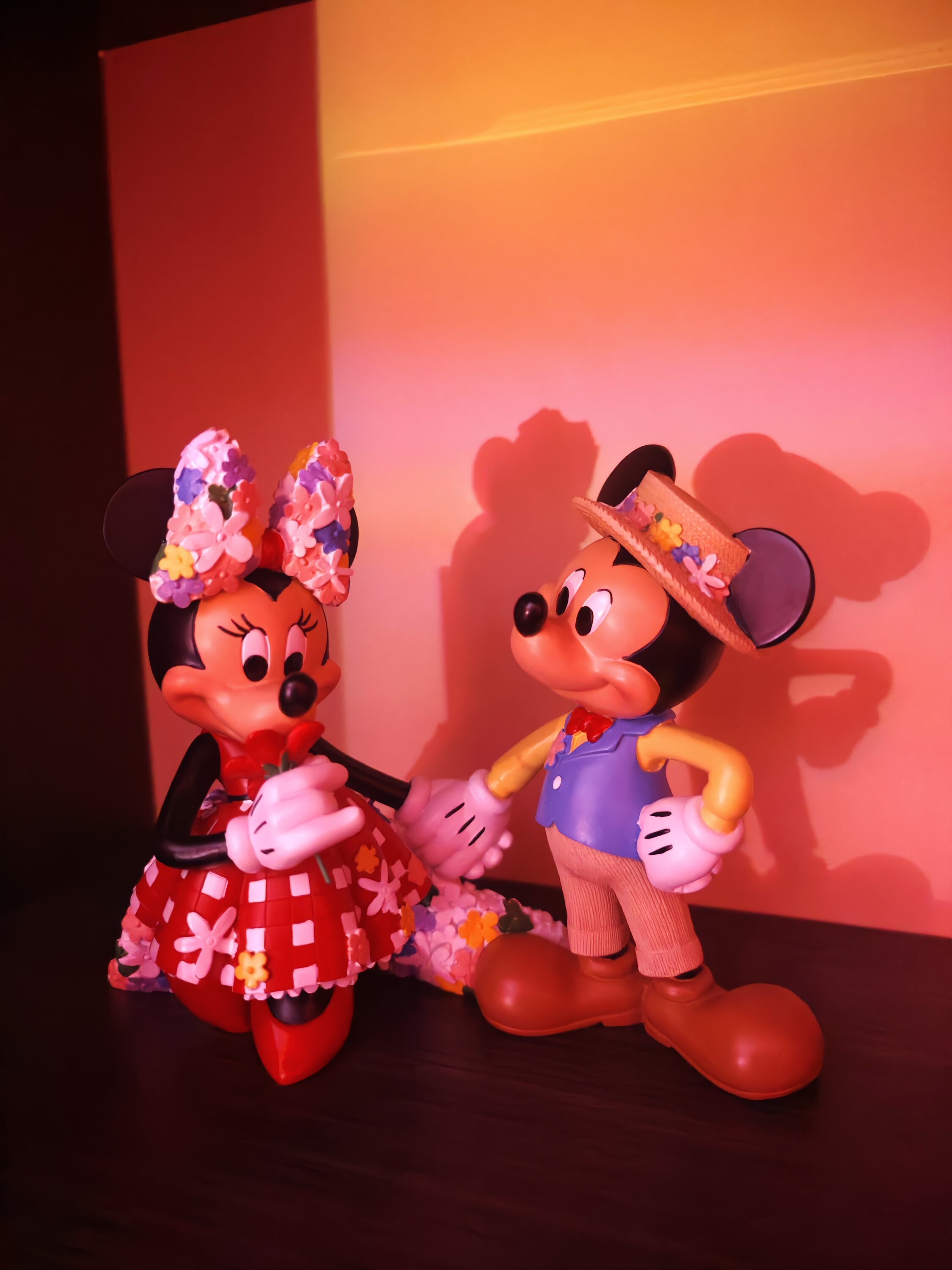 Dit beeldje, uit de Disney Showcase Floral Collection, toont Mickey Muis, met een strohoed, terwijl hij meeslepend naar Minnie staart. Minnie, mooi als een bloem, draagt een bloemenstrik en een cape die bij haar rood-witte gingham-jurk past. Dit figuur is een waar eerbetoon aan de liefde en vreugde die deze twee iconische personages in het Disney-universum brengen.
