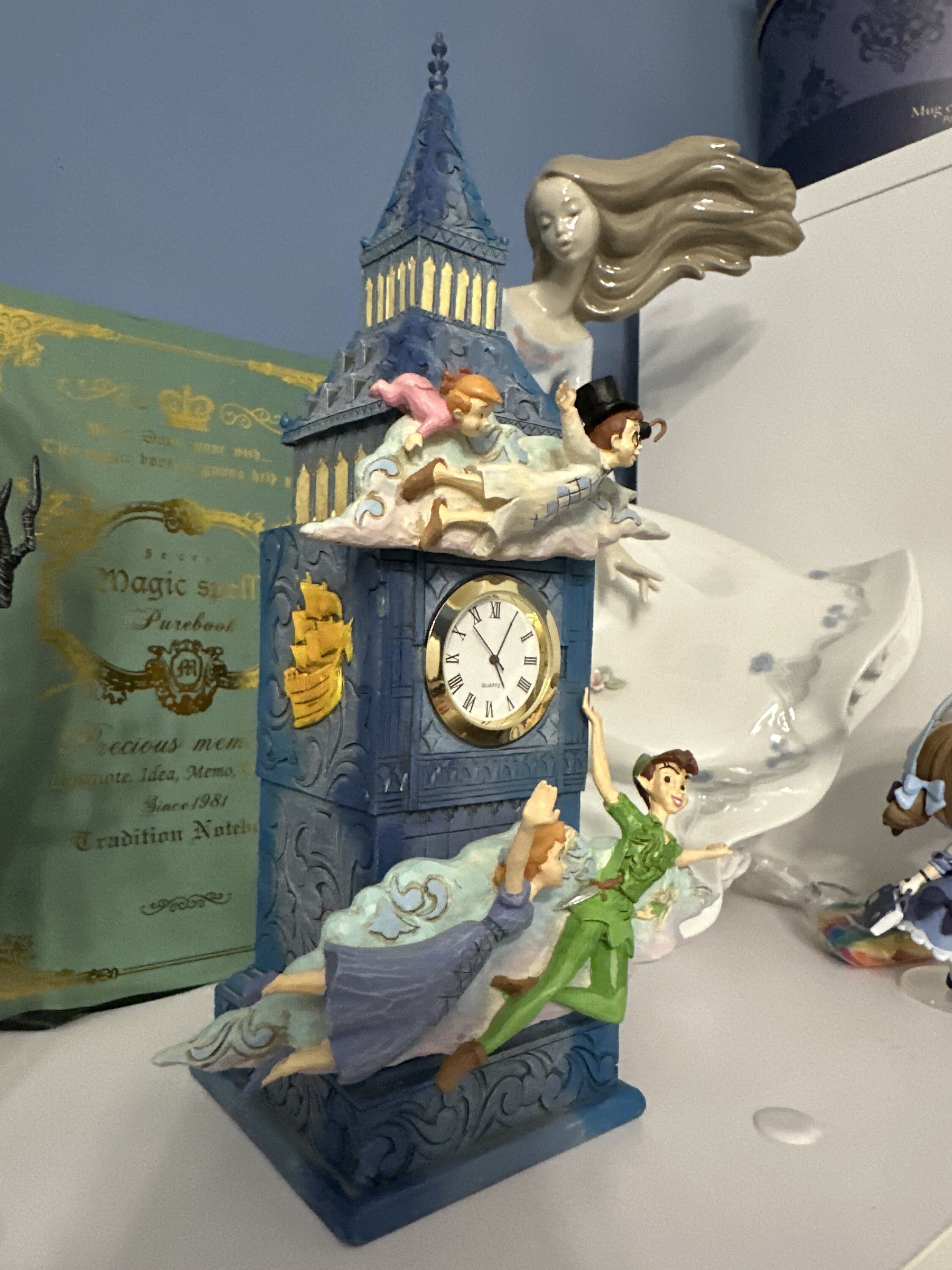 C’est une magnifique figurine Peter pan, qui en plus fait vraiment horloge ! J’adore !!