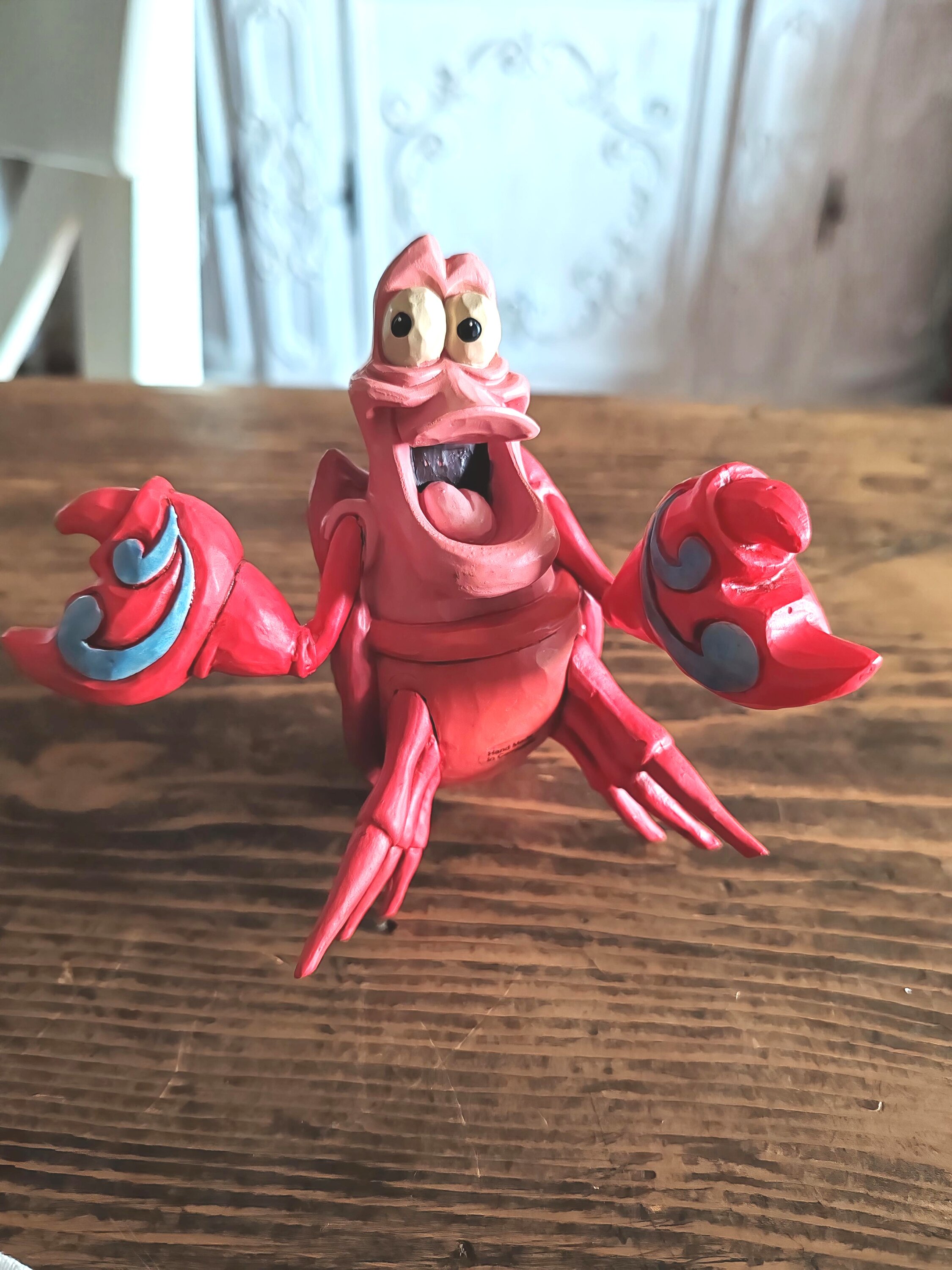 Sebastian de Krab fungeert als adviseur van koning Triton en heeft vaak de taak om over de jongste dochter van de koning, prinses Ariel, te waken. Deze creatie van Jim Shore weerspiegelt de medelevende persoonlijkheid van de krab met kleur en patroon