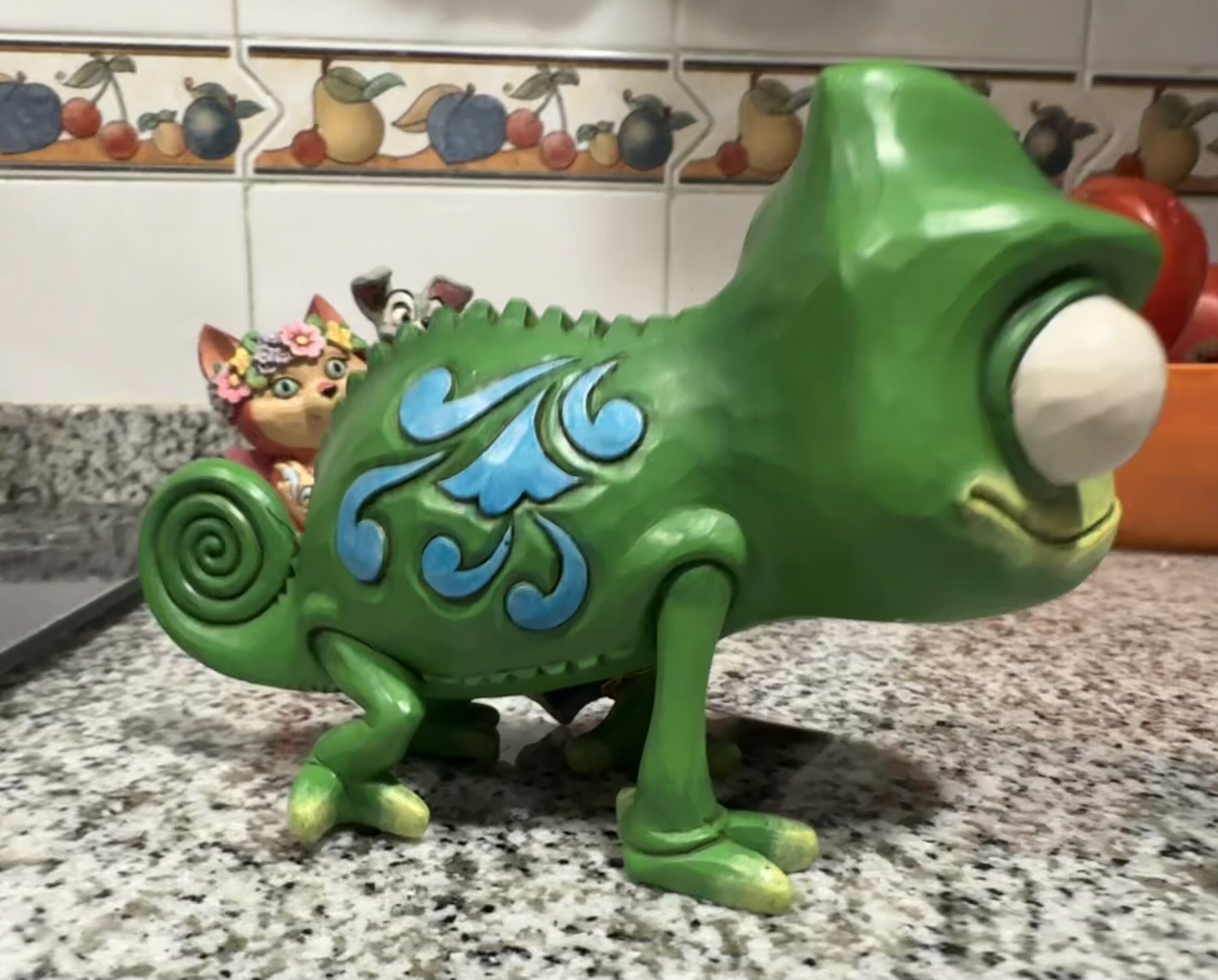 Il mitico compagno di viaggio della principessa Rapunzel. Sono rimasto piacevolmente colpito dalle dimensioni della statuetta. Il camaleontino è raffigurato davvero bene!