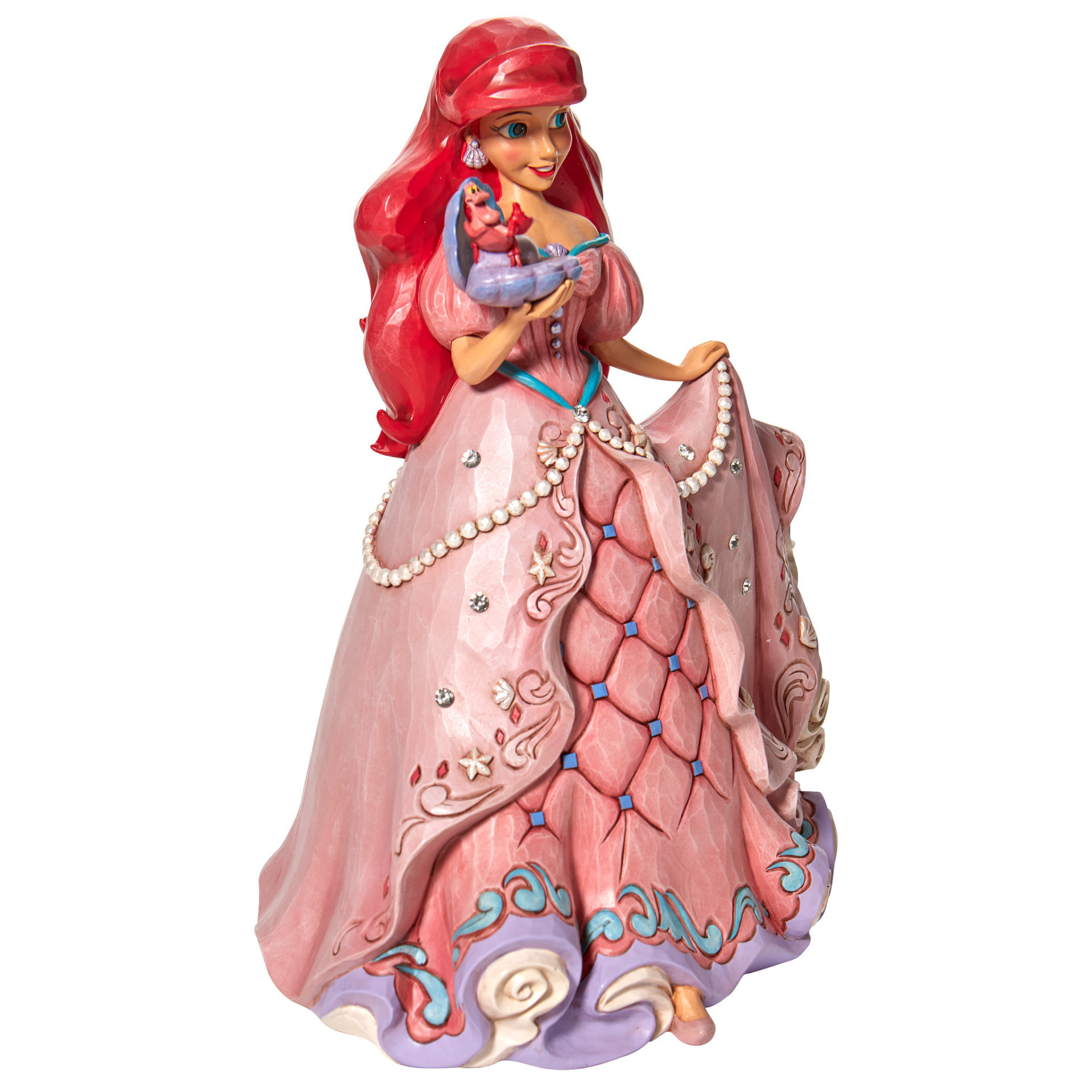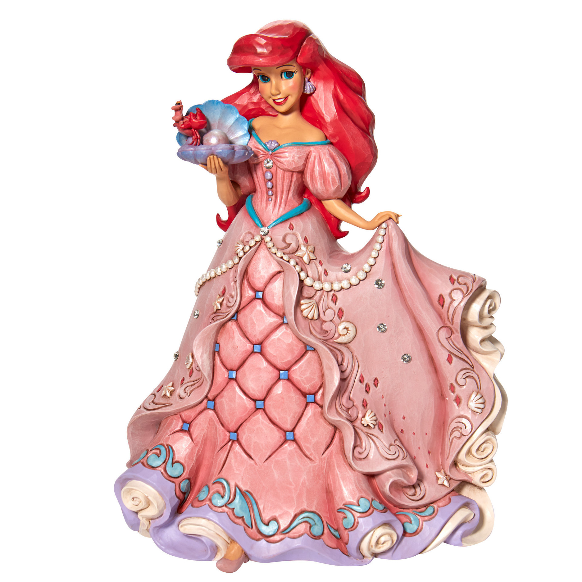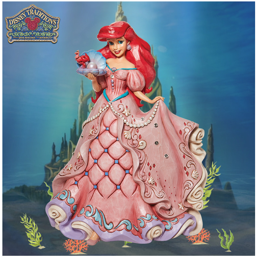 Het tweede in de Enchanted Princesses-serie, dit Jim Shore -ontwerp toont Ariel in een prachtige jurk versierd met schelpen en juwelen, terwijl ze een oester met een parel vasthoudt.