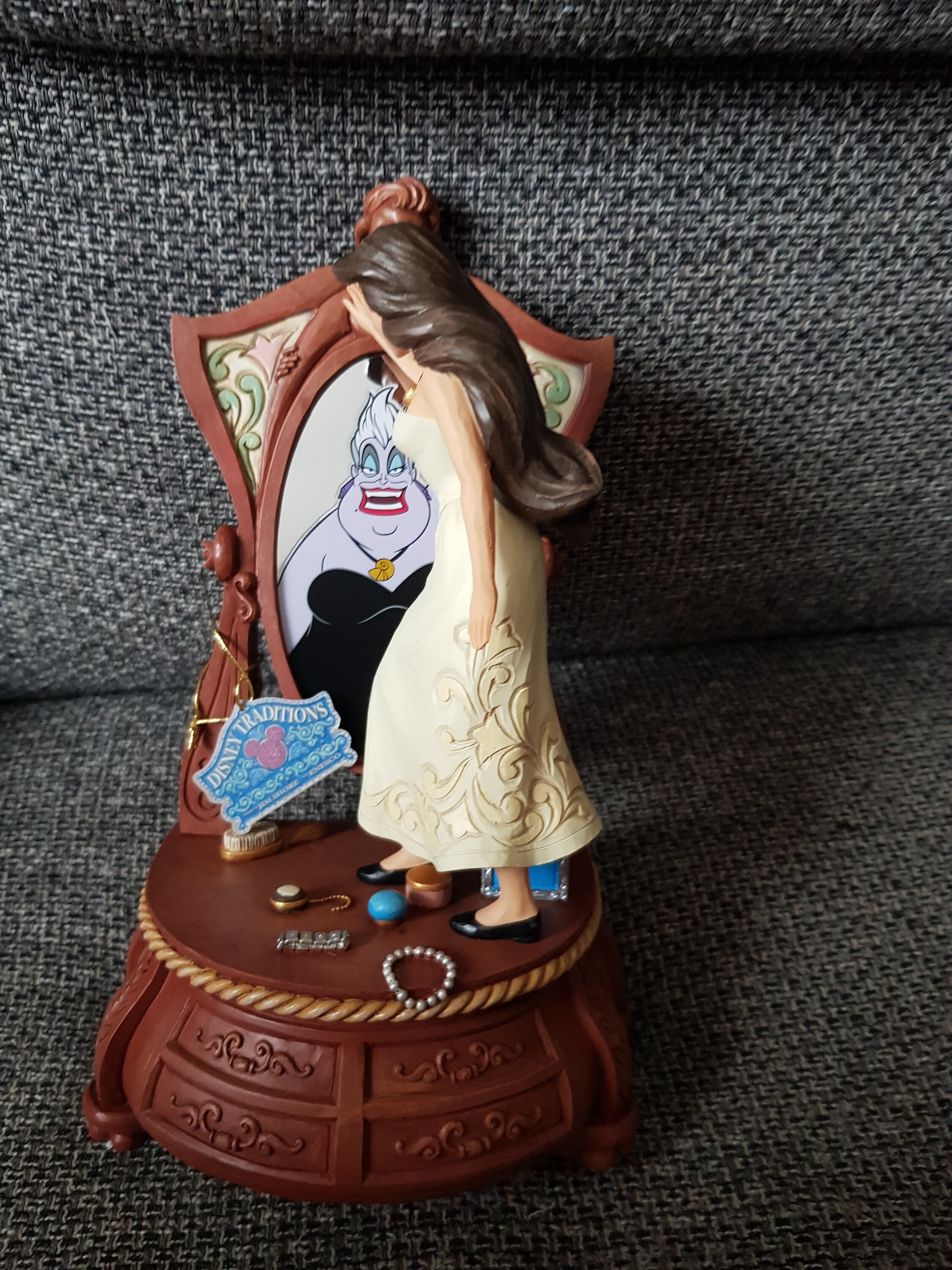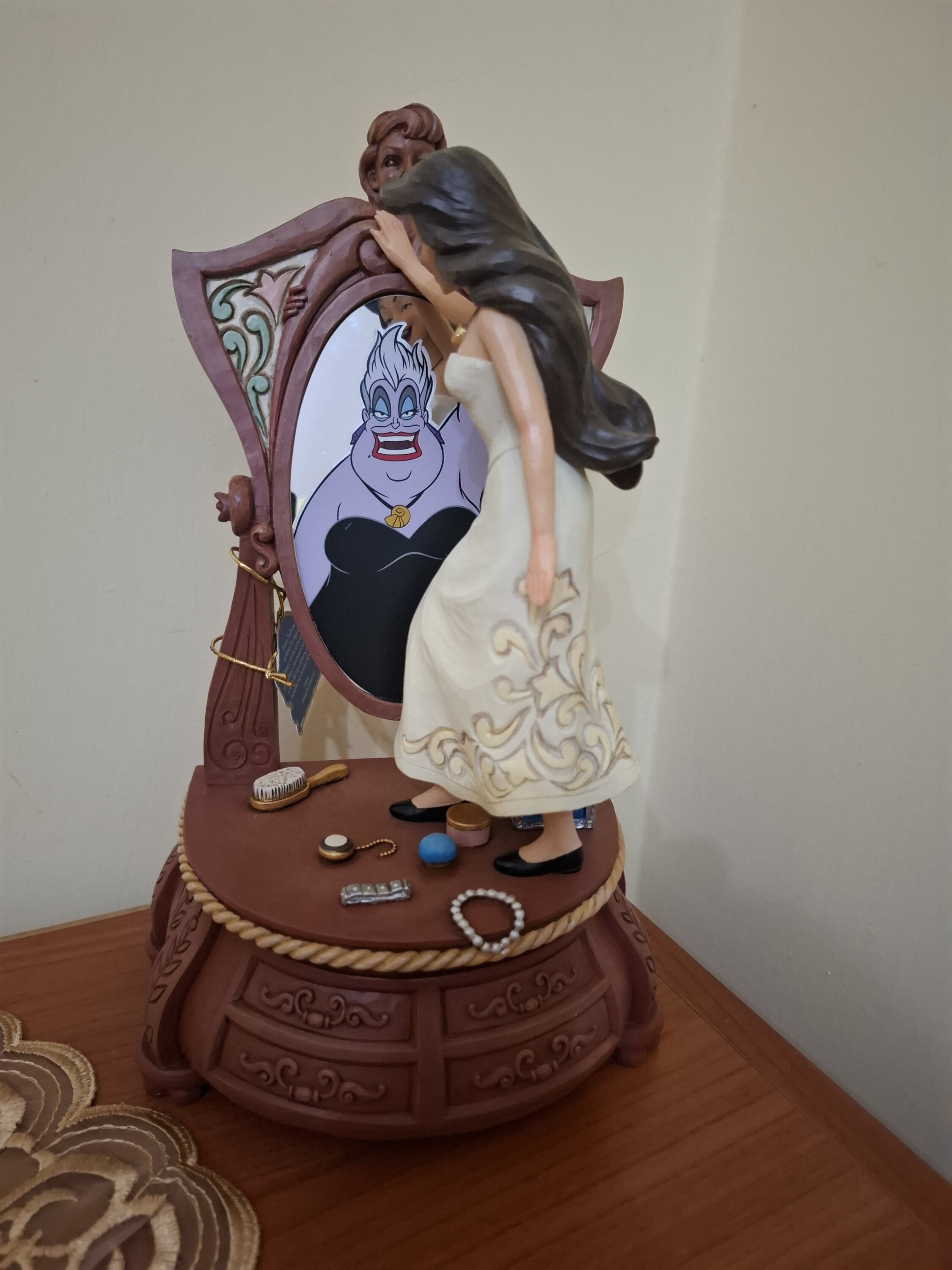 Articolo meraviglioso, raffigura la scena più iconica di Ursula in versione umana. Meravigliosi i dettagli dello specchio, un po' meno il volto di Vanessa, ma essendo ruotato esponendola è impercettibile. Pezzo di assoluto pregio che non poteva mancare nella mia collezione Disney!