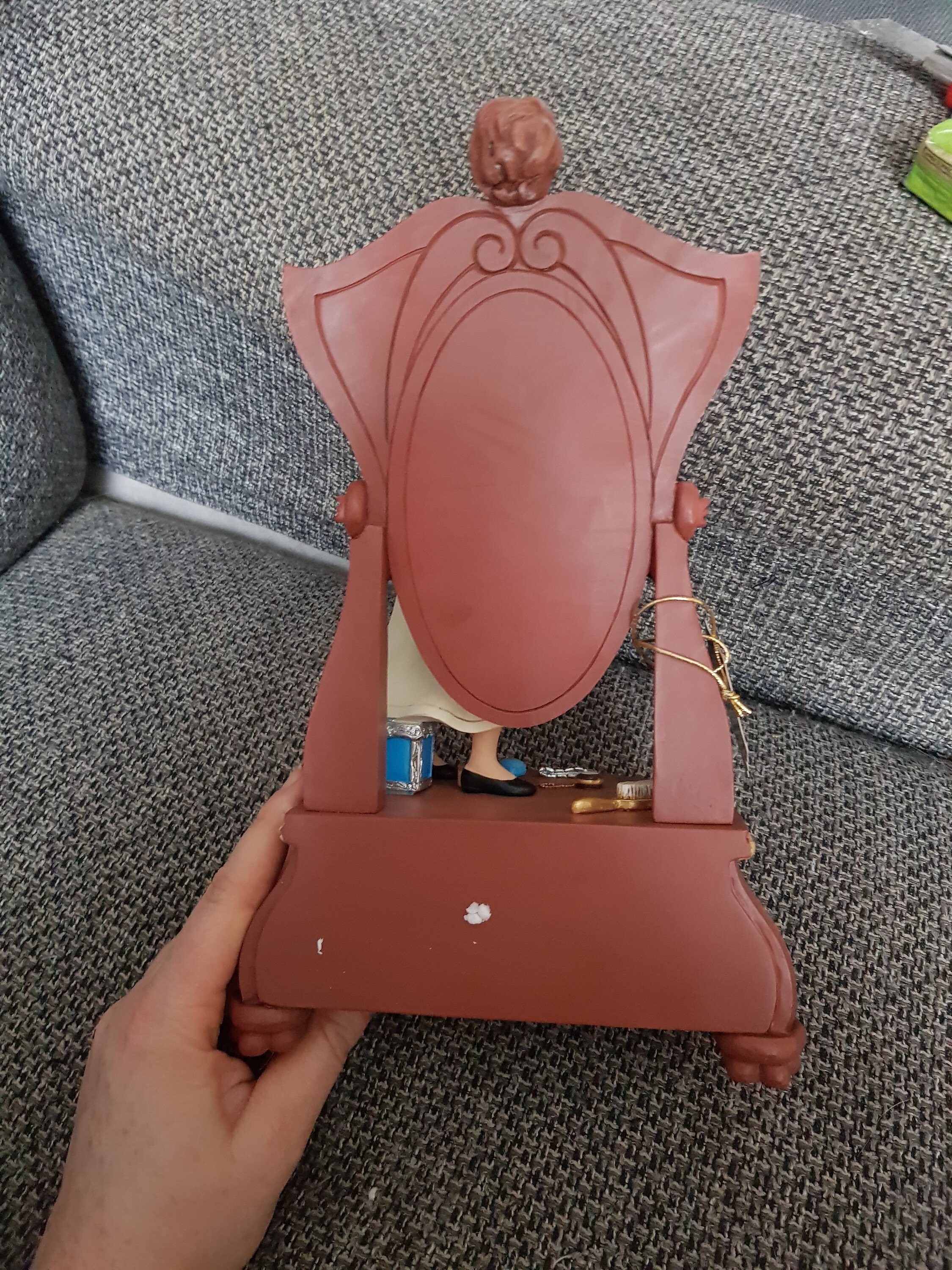Juste de légères griffures, dus au polystyrène qui protège entre le miroir et Vanessa, mais cela part en nettoyant.