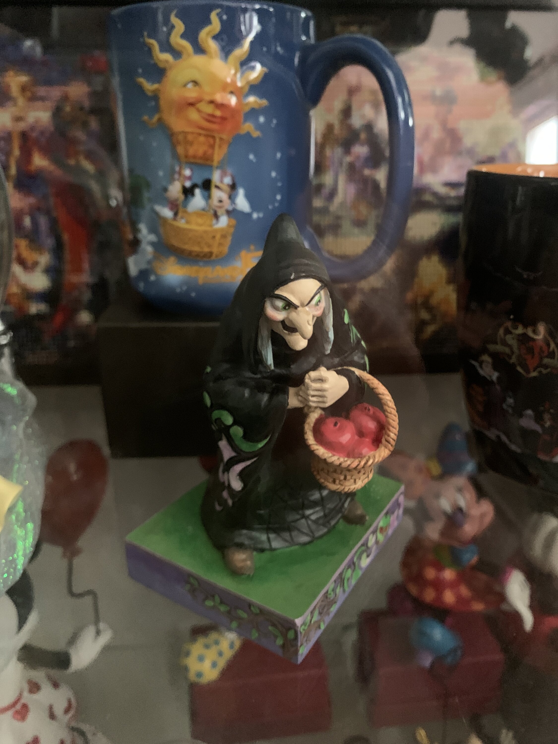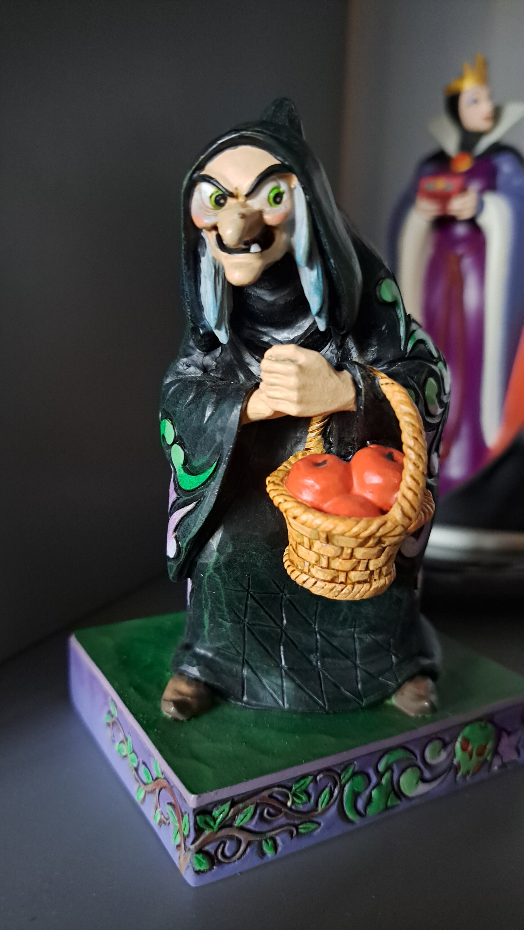 Une des rares représentations de la mechante reine de blanche neige en sorcière.. Avec son panier de pommes, elle est très bien réalisée et son visage est bien détaillé