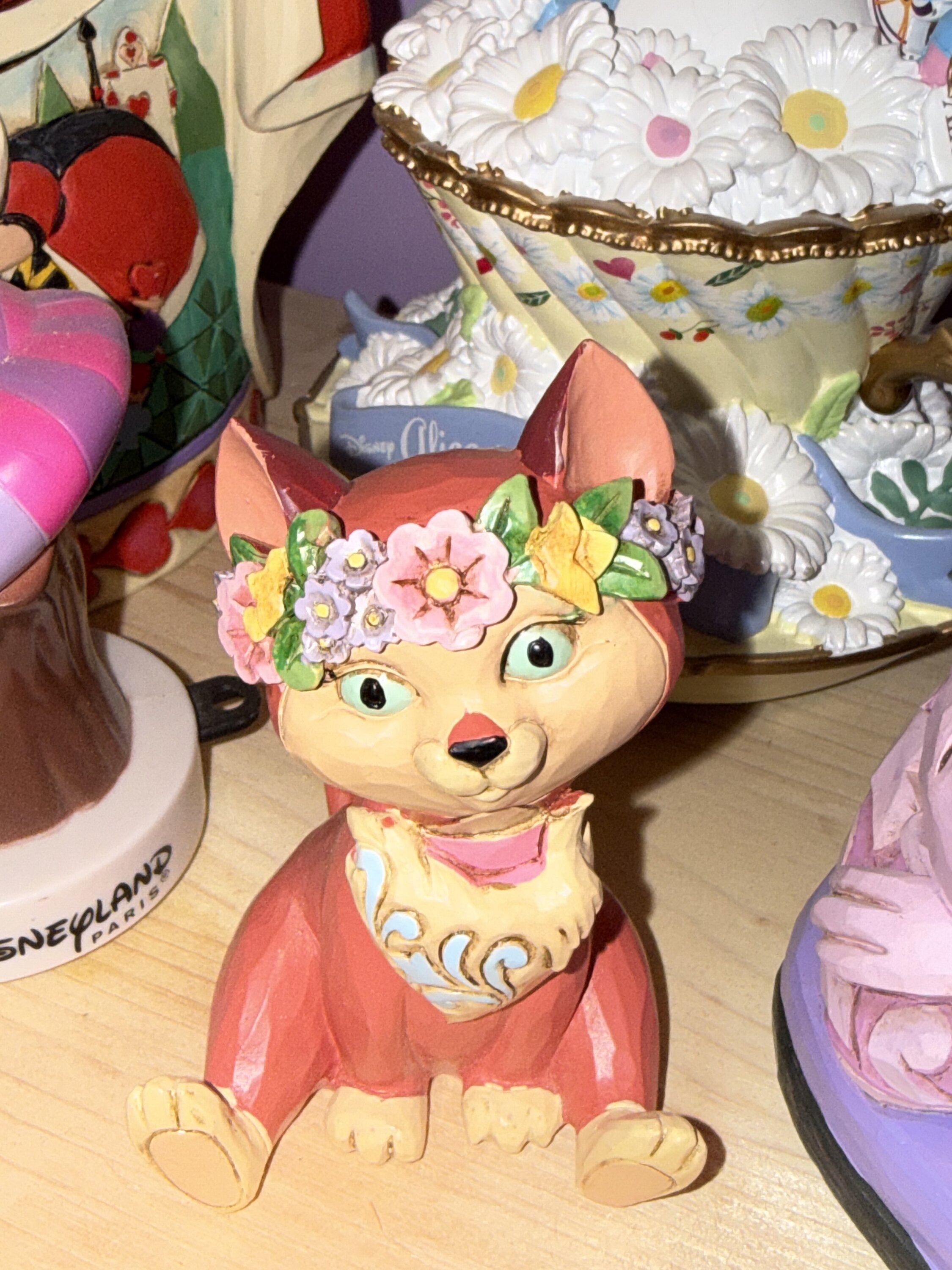 Una pequeña figura de la gata de Alicia en el País de las Maravillas muy bonita😍😍