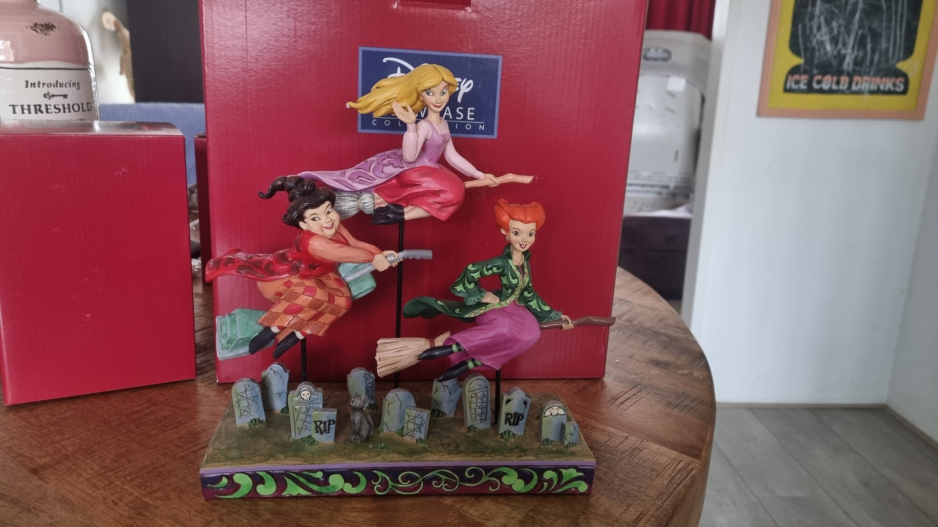 Ik kende deze Disney Traditions-reproductie van de zusjes Sanderson van Jim Shore niet, en het was liefde op het eerste gezicht! Dit product heeft een paar kritische punten, want de heksen zijn vliegend afgebeeld, gemonteerd op een dunne paal. Het arriveerde echter perfect verpakt en op tijd. Ik ben helemaal weg van deze drie heksen en ik heb ze ook in Funko Pop-versies, maar deze van Jim Shore zijn spectaculair! Volgende aankoop: de drie heksen rond de ketel! Ik raad aan om deze site te bekijken voor moeilijk te vinden modellen. Blij en tevreden, klaar voor Halloween!