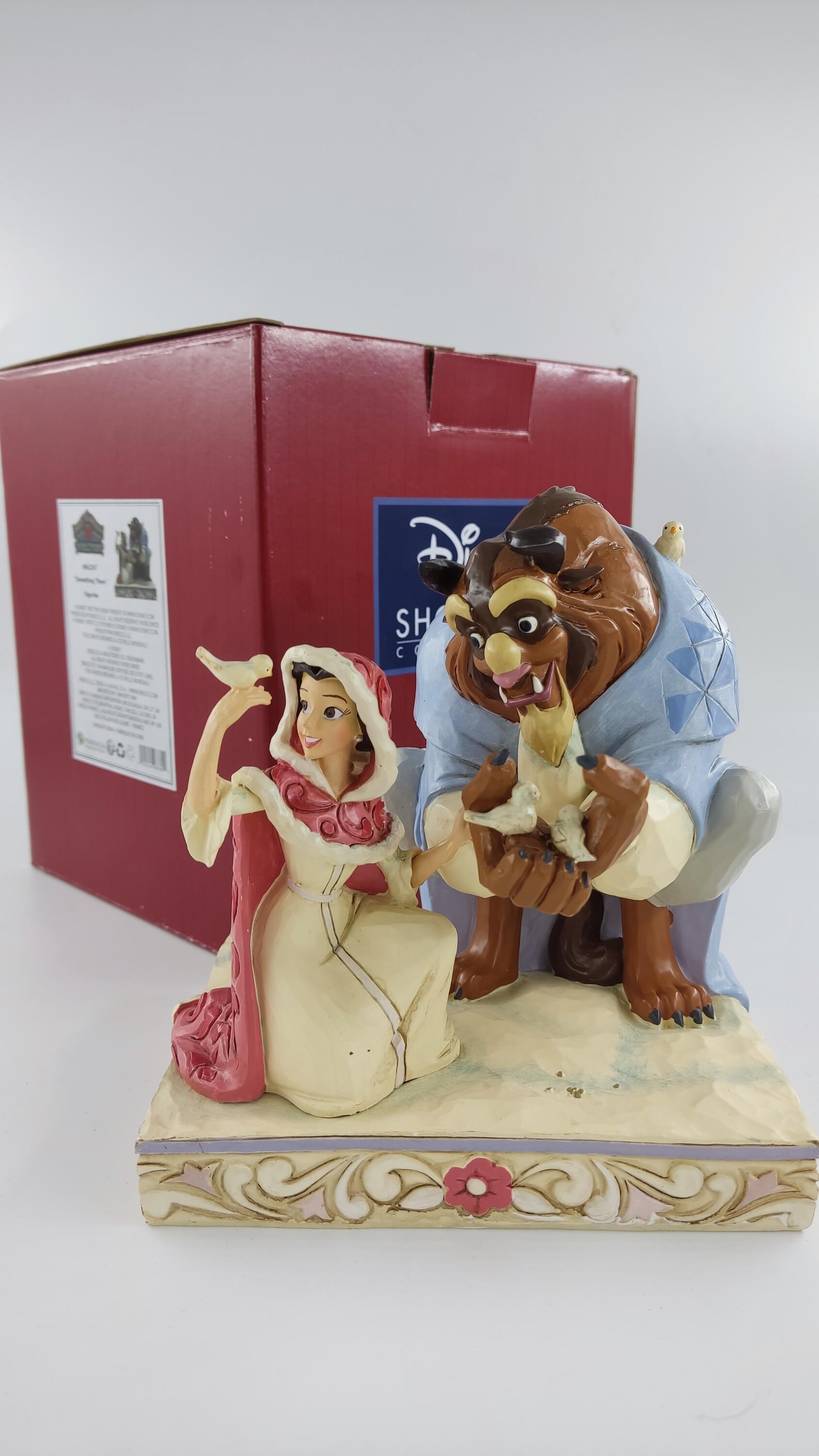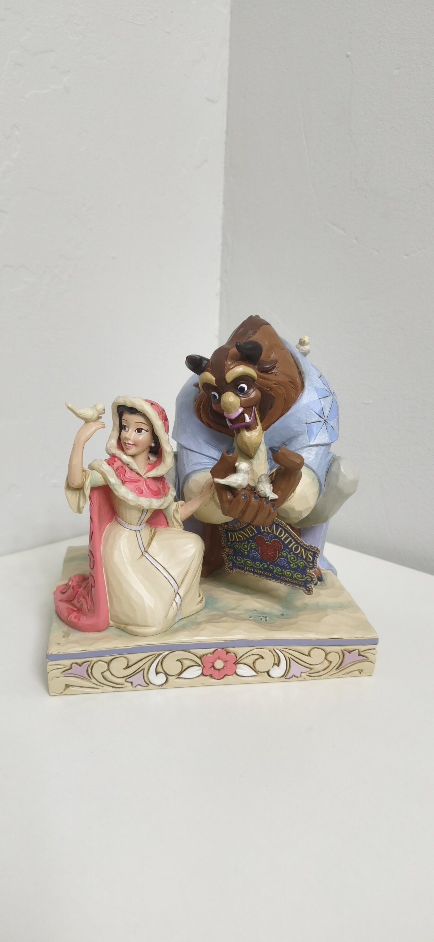 Belle en het Beest delen een teder ❄️ wintermoment omringd door vogels 🕊️ in deze hartverwarmende creatie van Jim Shore . Een poëtische scène die vriendschap, vriendelijkheid en innerlijke schoonheid viert.