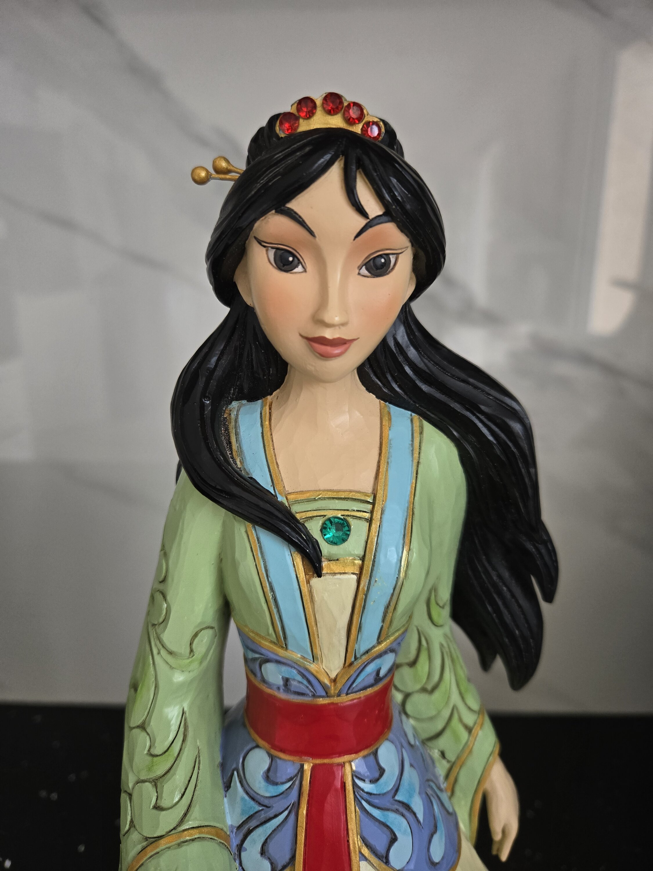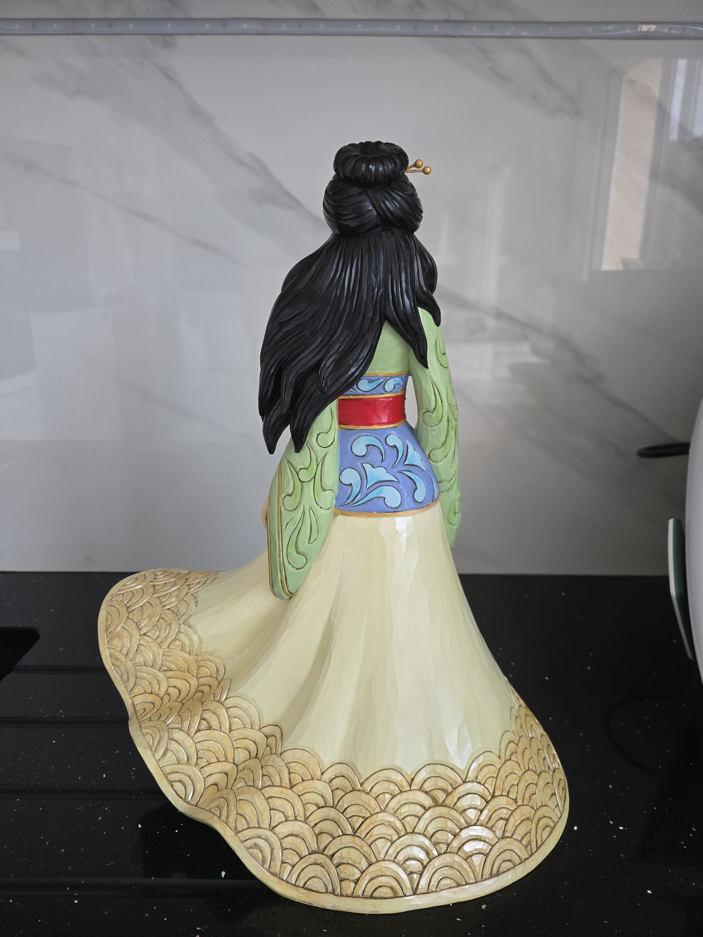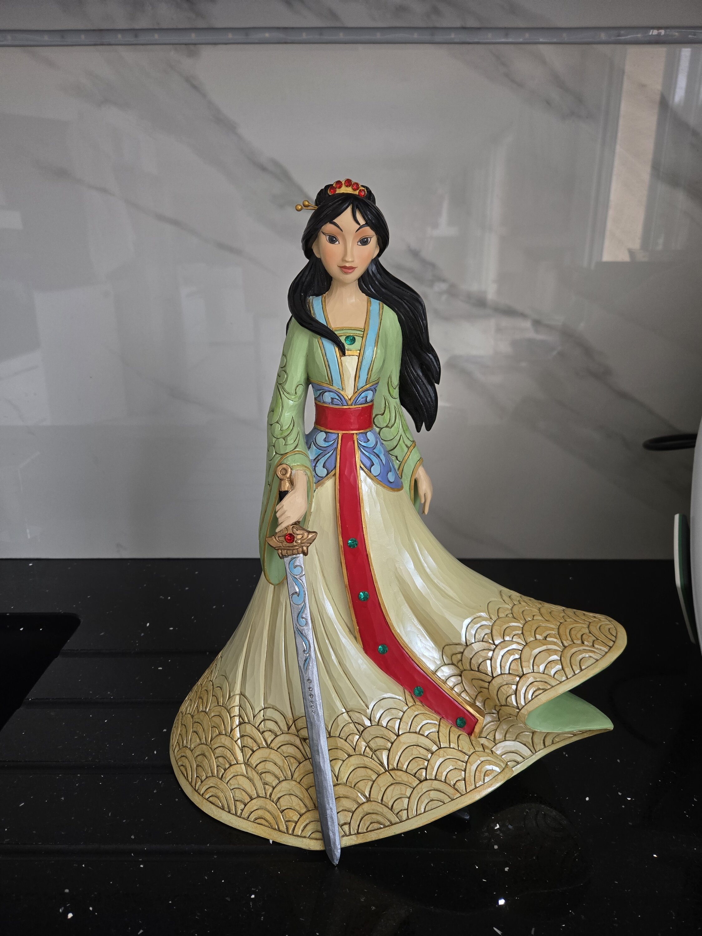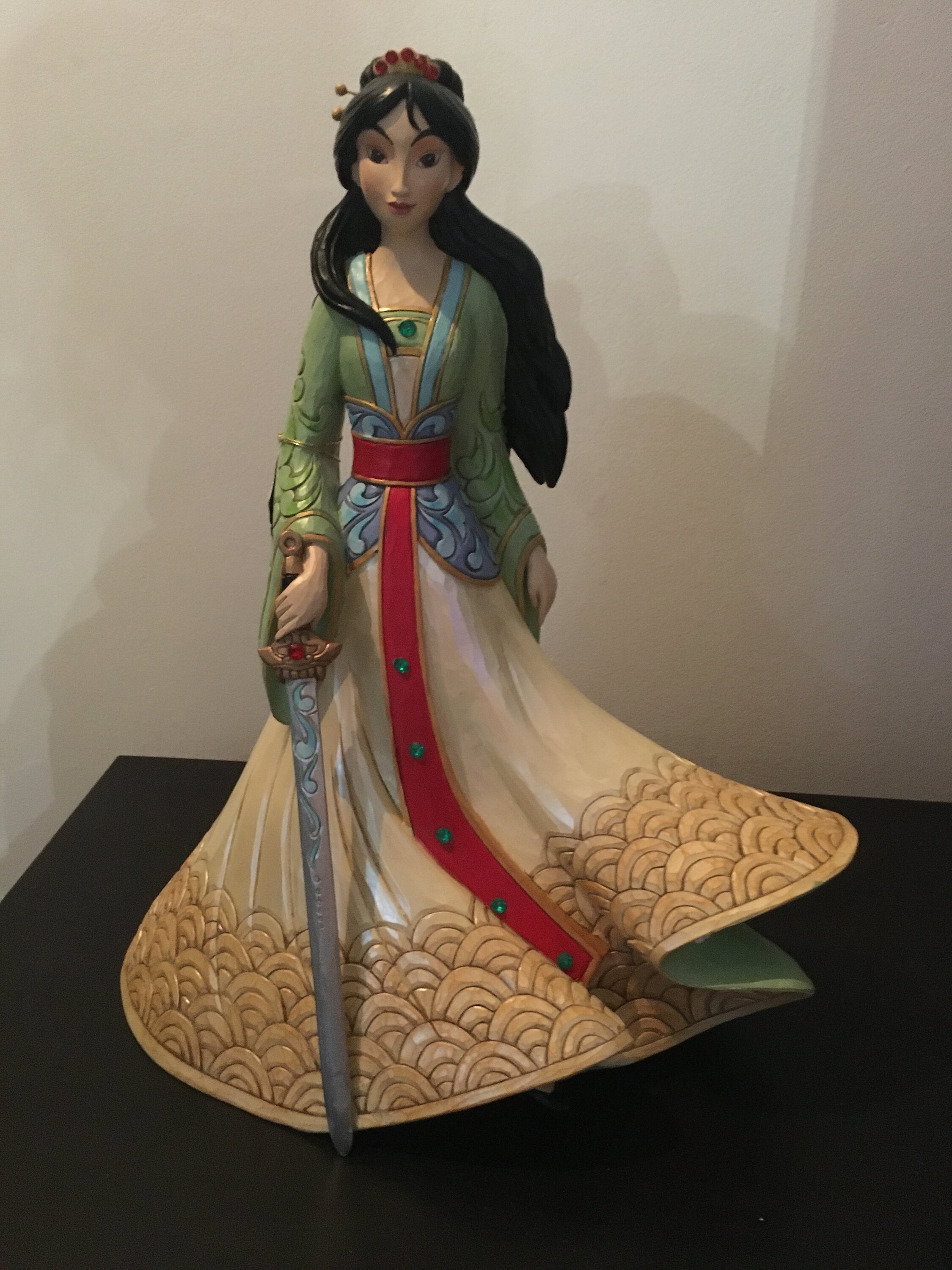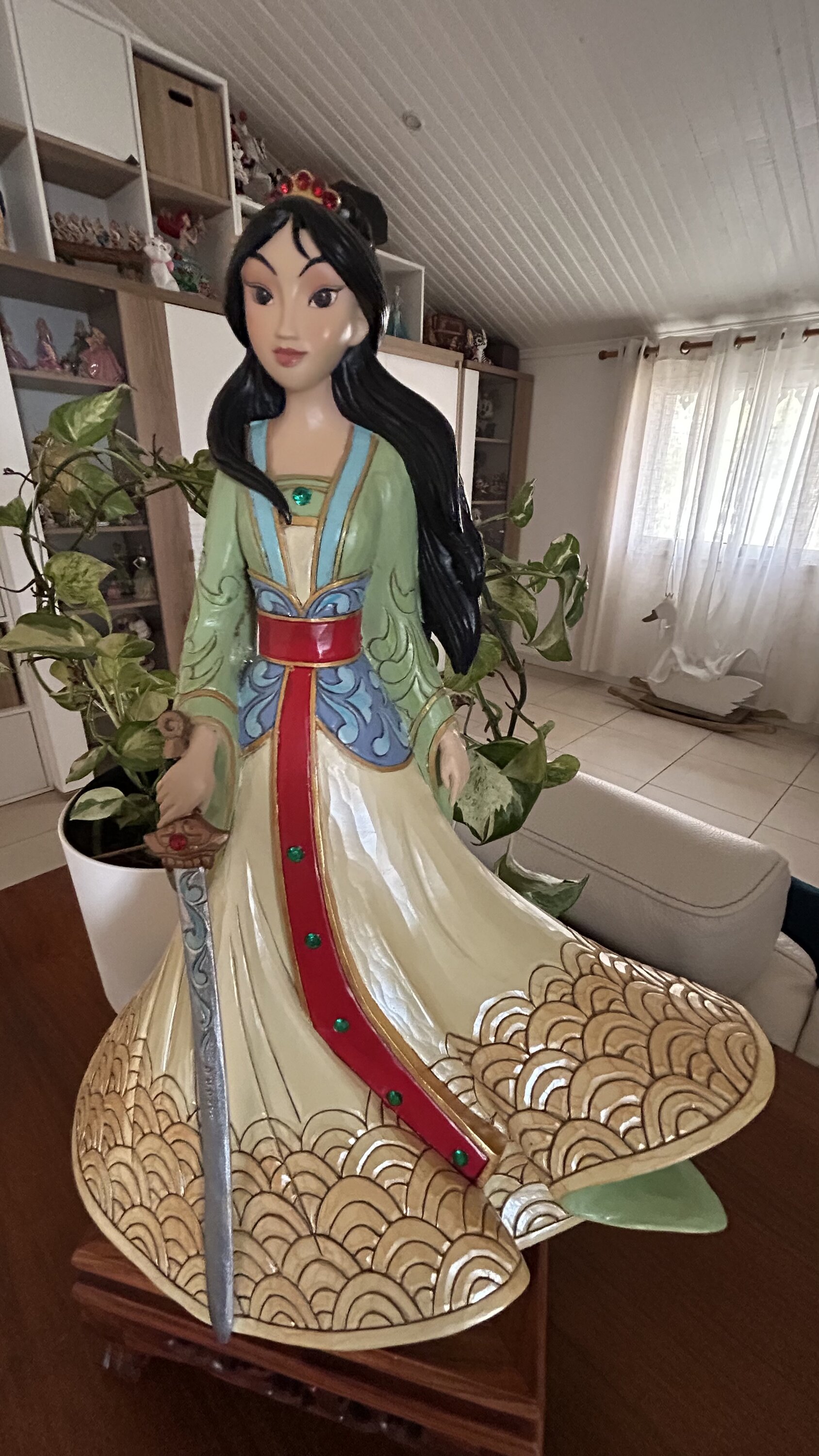 Dit beeldje is groot en prachtig. Met haar jurk, haar haar in de wind en haar zwaard is Mulan magnifiek.