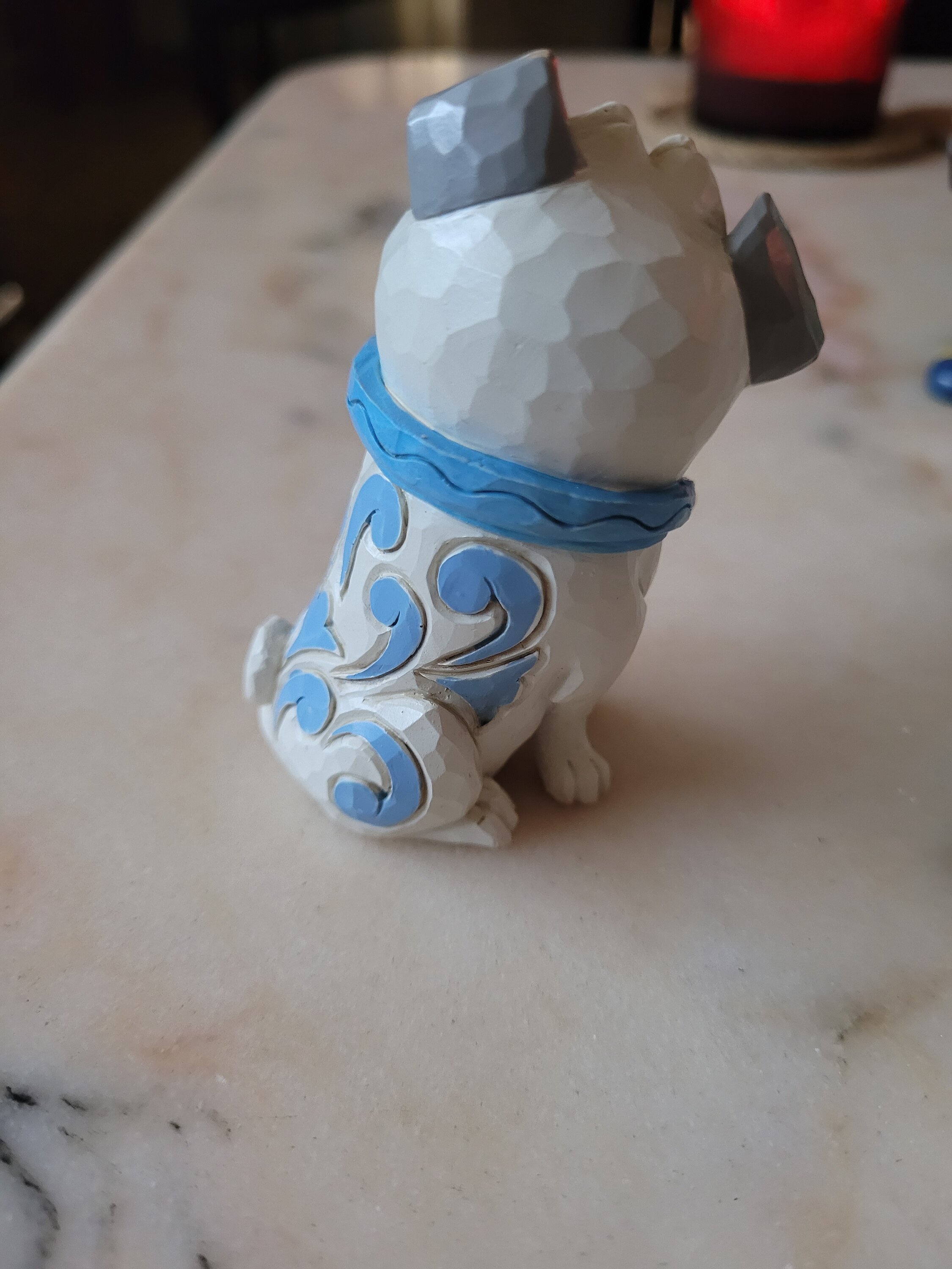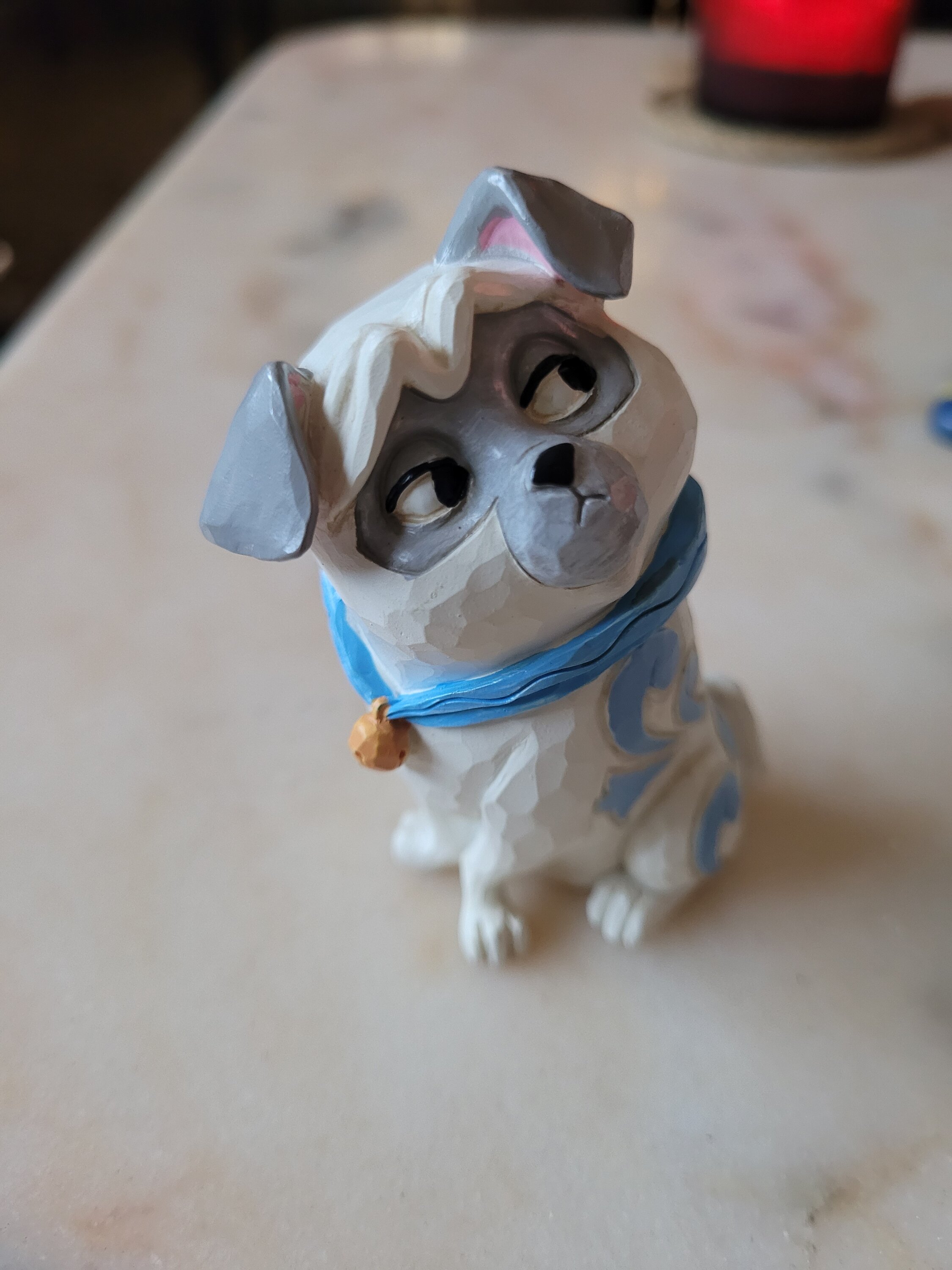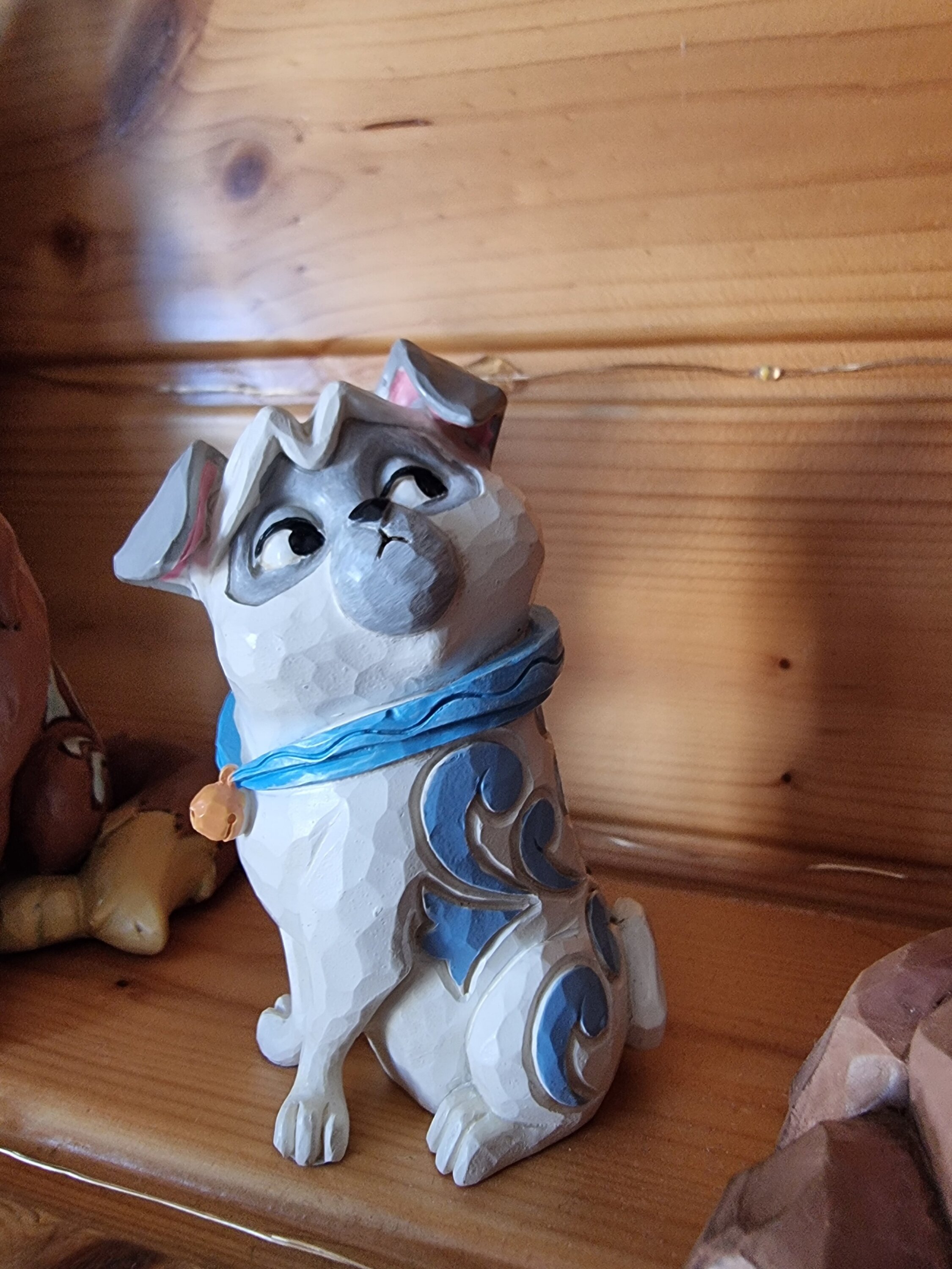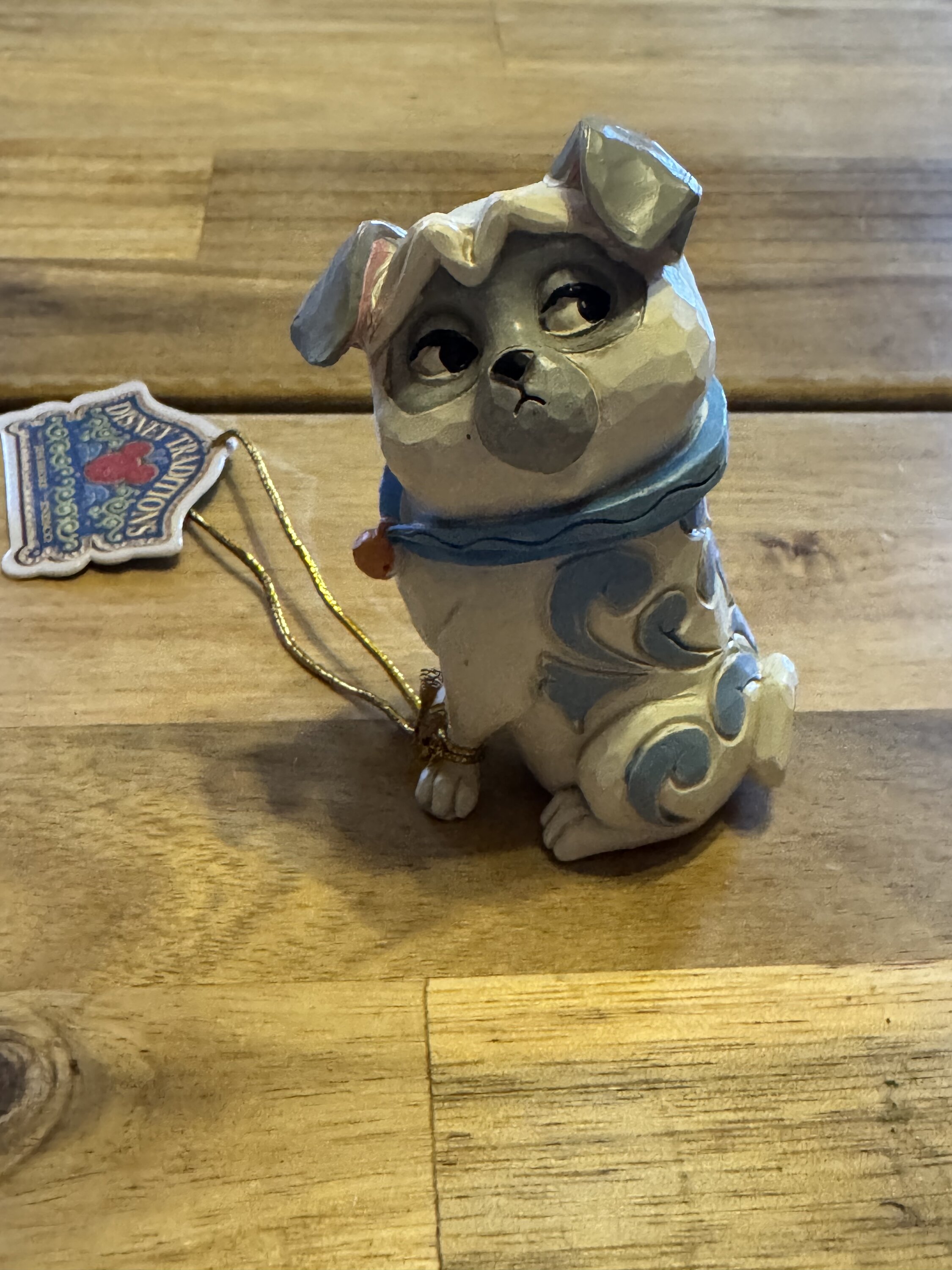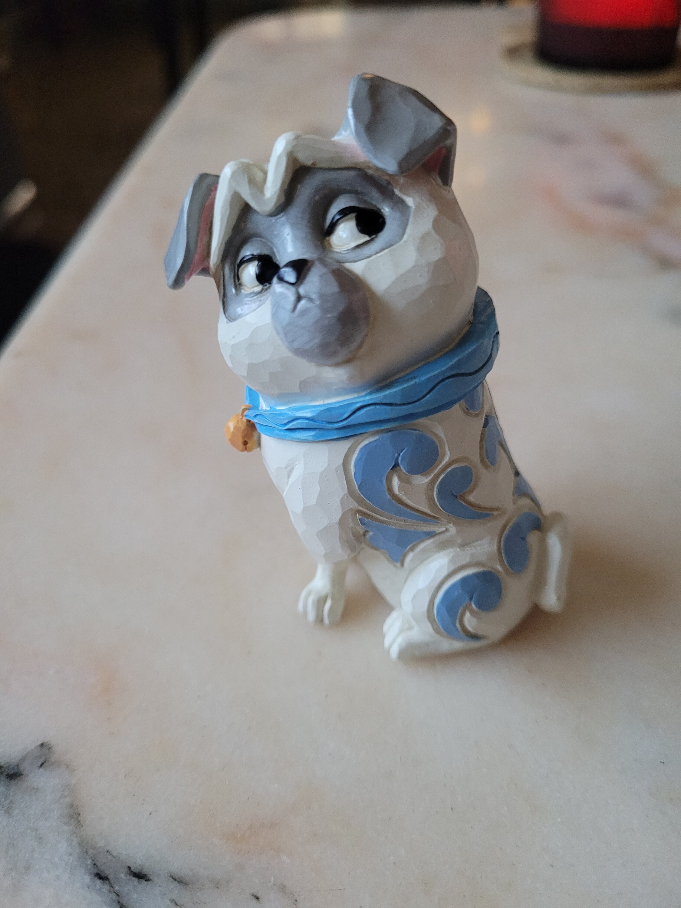 Vier de 30e verjaardag van Pocahontas met deze charmante Jim Shore buste van Percy, Ratcliffe's verwende mopshond. Met zijn brutale uitdrukking draagt hij een blauwe kraag met een bel en toont hij de ingewikkelde rosemaling van de kunstenaar.