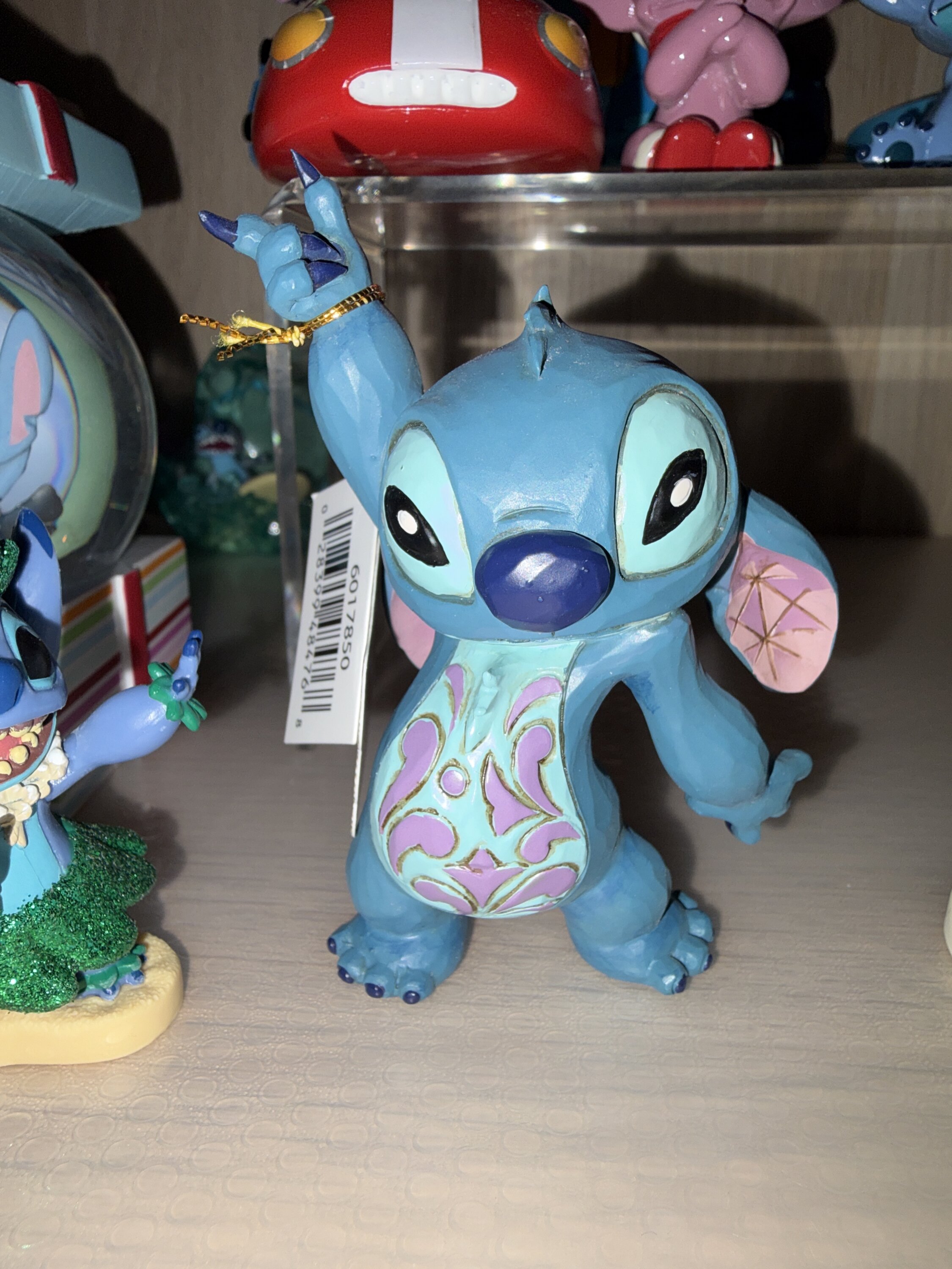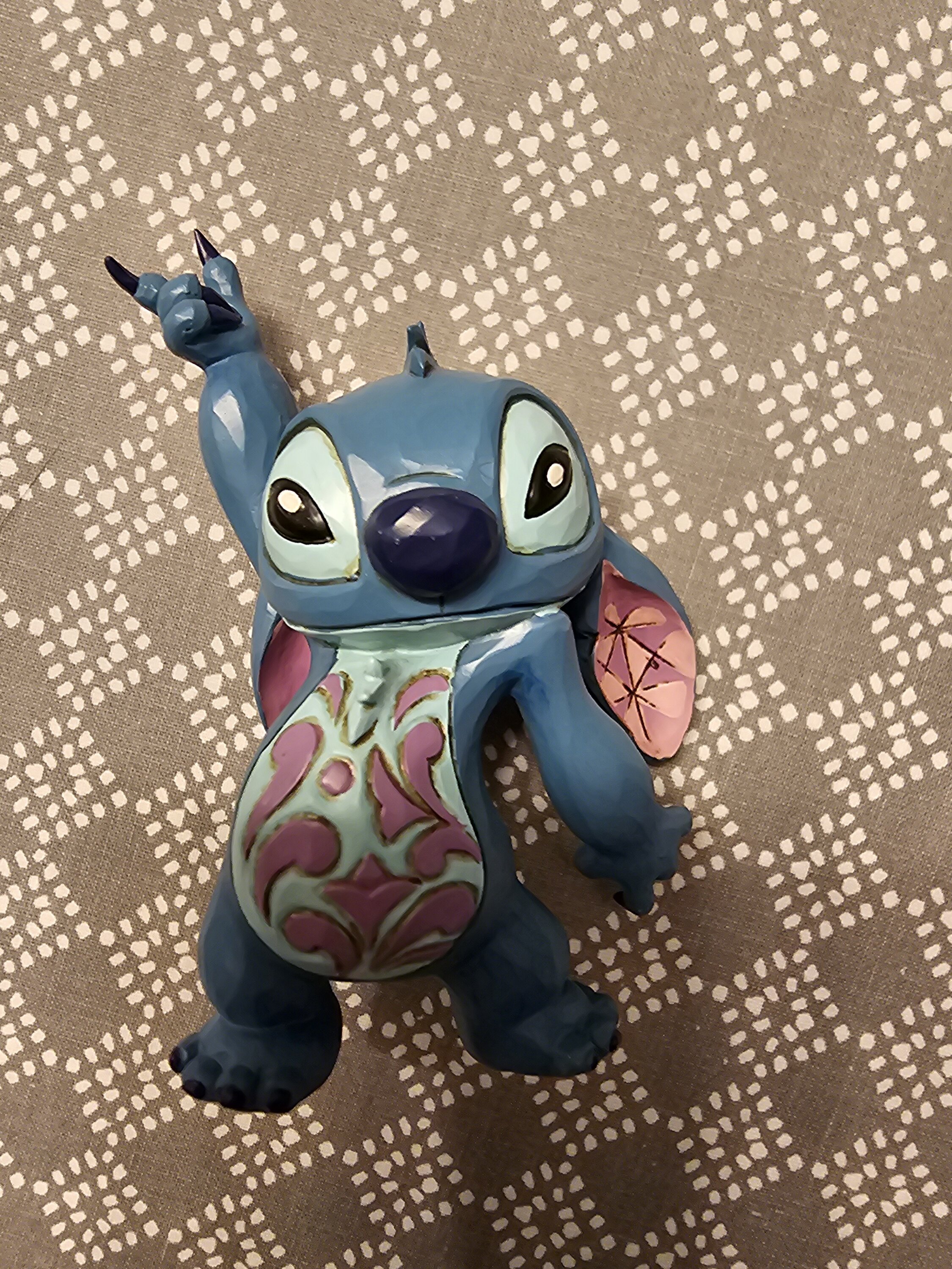 Dit levendige Jim Shore -ontwerp legt Stitch's speelse geest vast terwijl hij danst met rosemaling op zijn buik en gebloemde oren. Of het nu de hula of Elvis is, zijn zorgeloze bewegingen zitten vol charme en ondeugendheid.