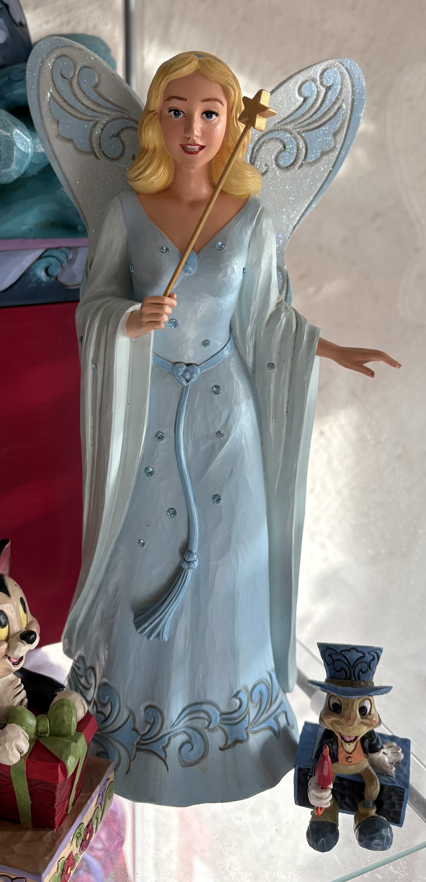 Dit opvallende ontwerp van Jim Shore toont de Blauwe Fe in al haar glorie, met ingelegde strass-steentjes voor extra glans. Met een glimlach en een toverstaf in de aanslag staat ze klaar om poppen in echte jongens te veranderen en krekels eraan te herinneren dat ze een geweten moeten hebben.