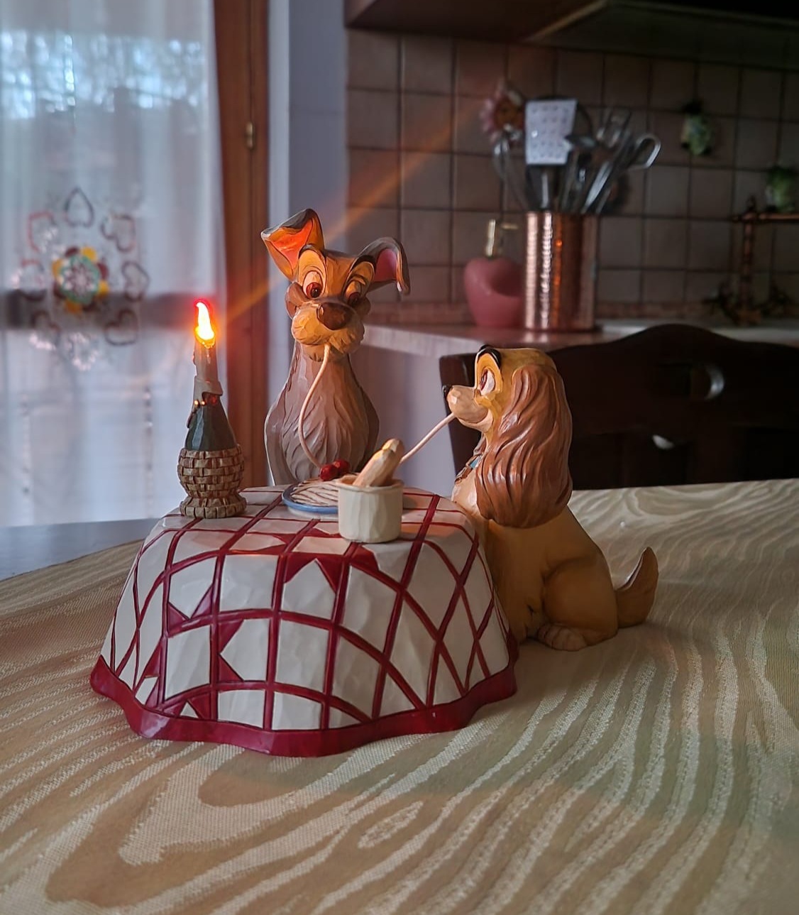 Très belle figurine représentant la scène mythique du film La Belle et Clochard au restaurant italien ♥️. On adore.🥰