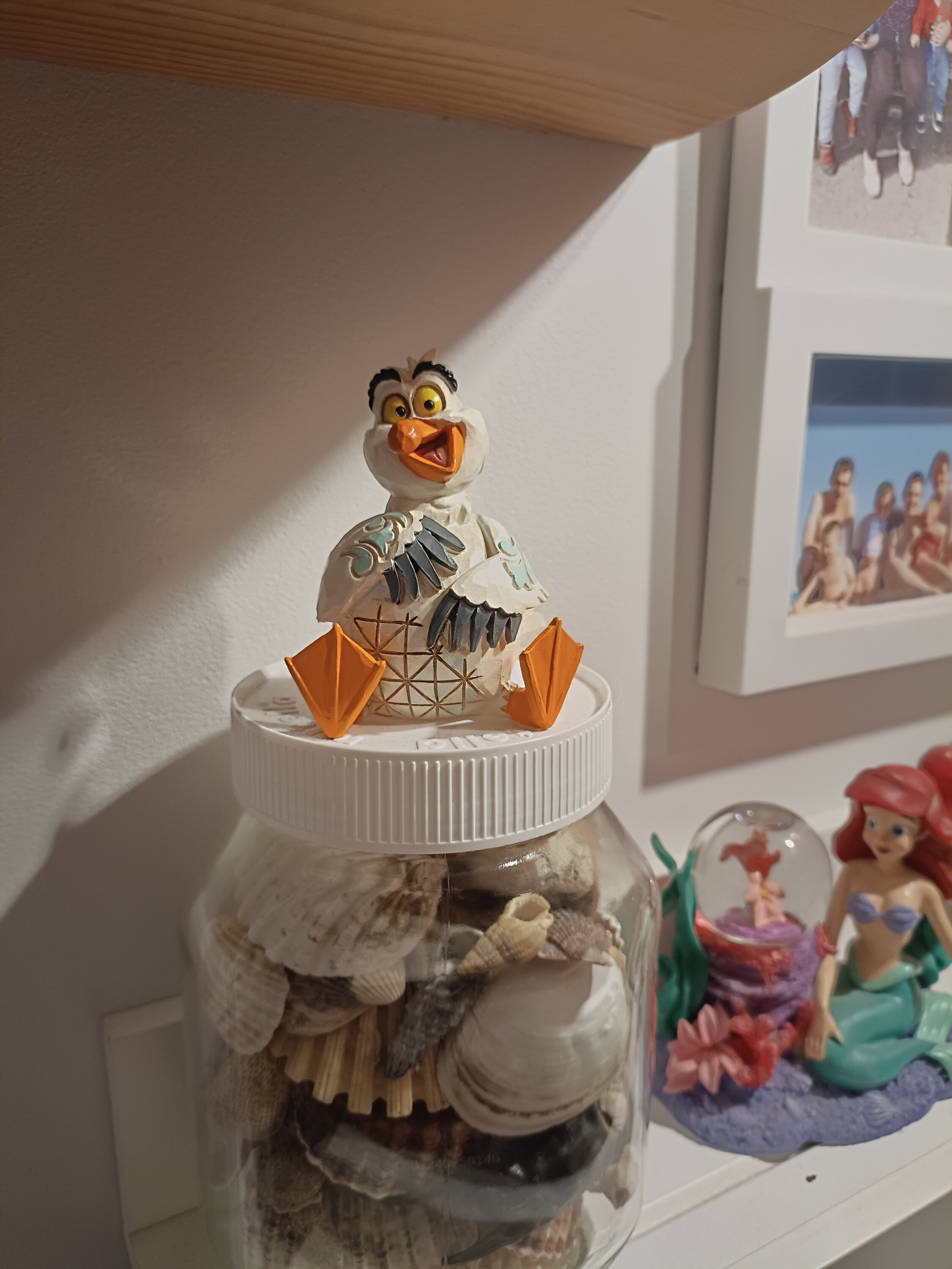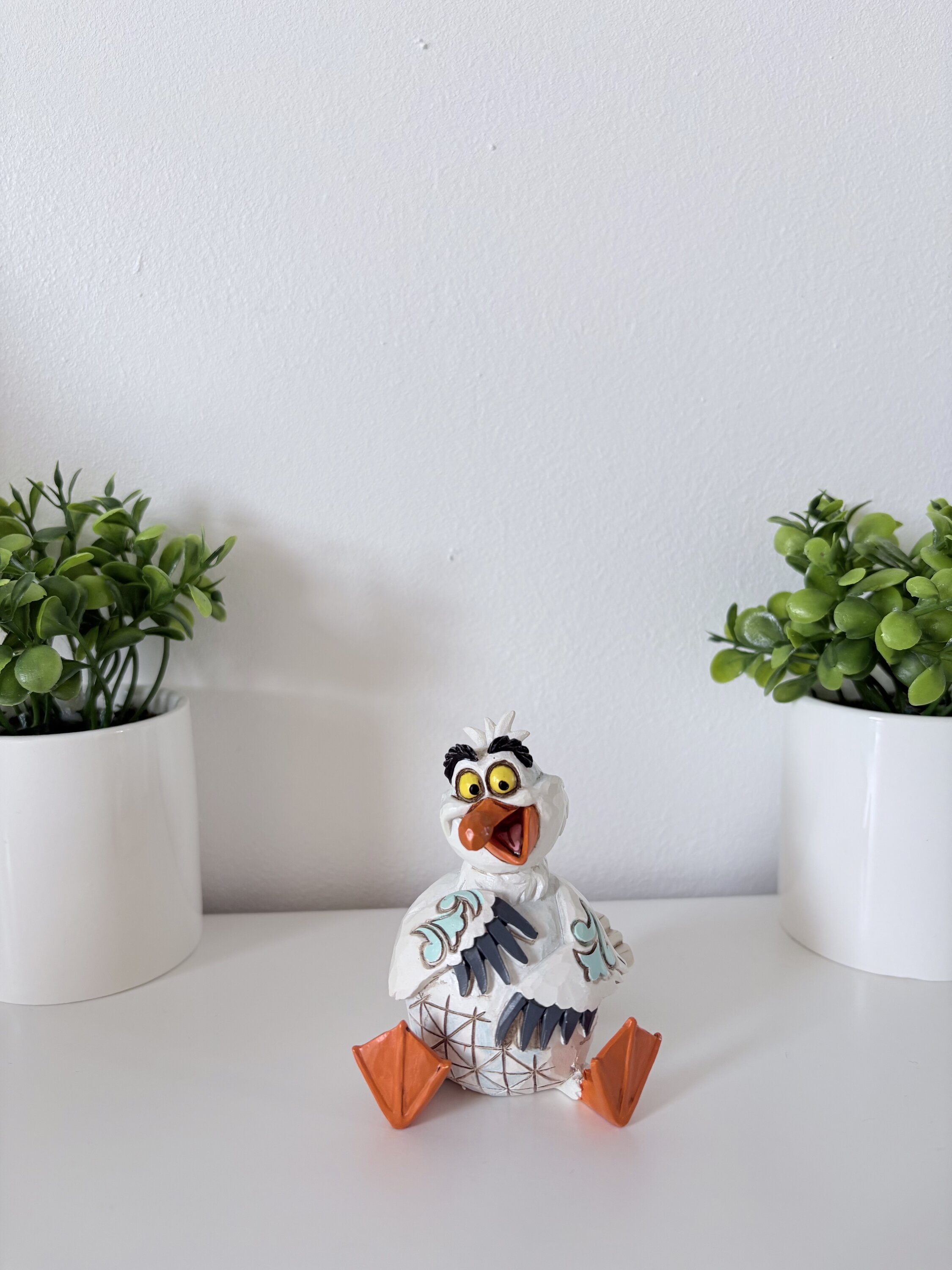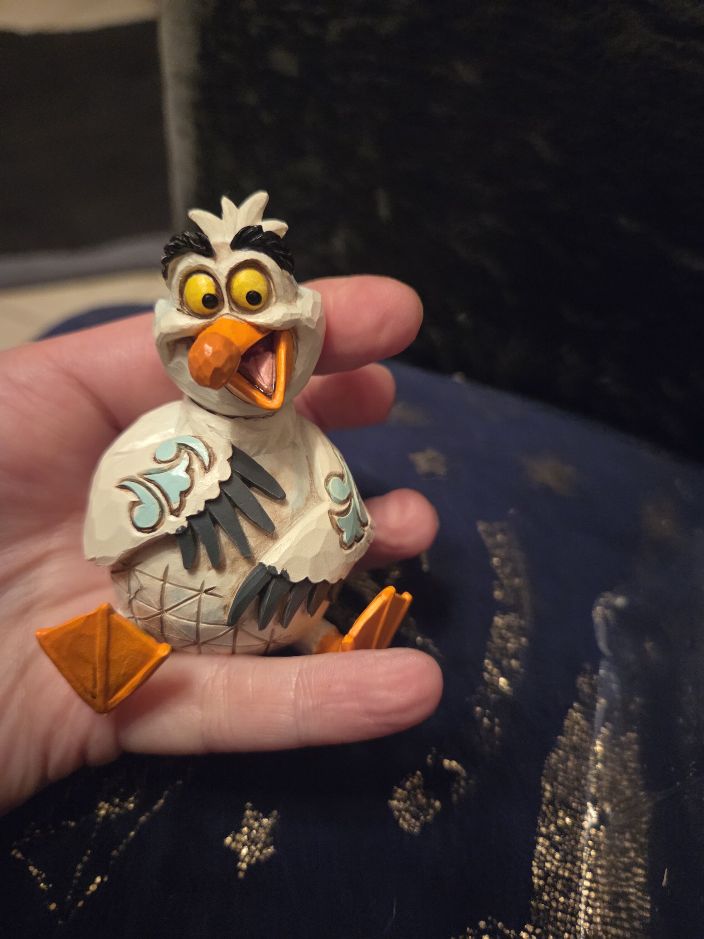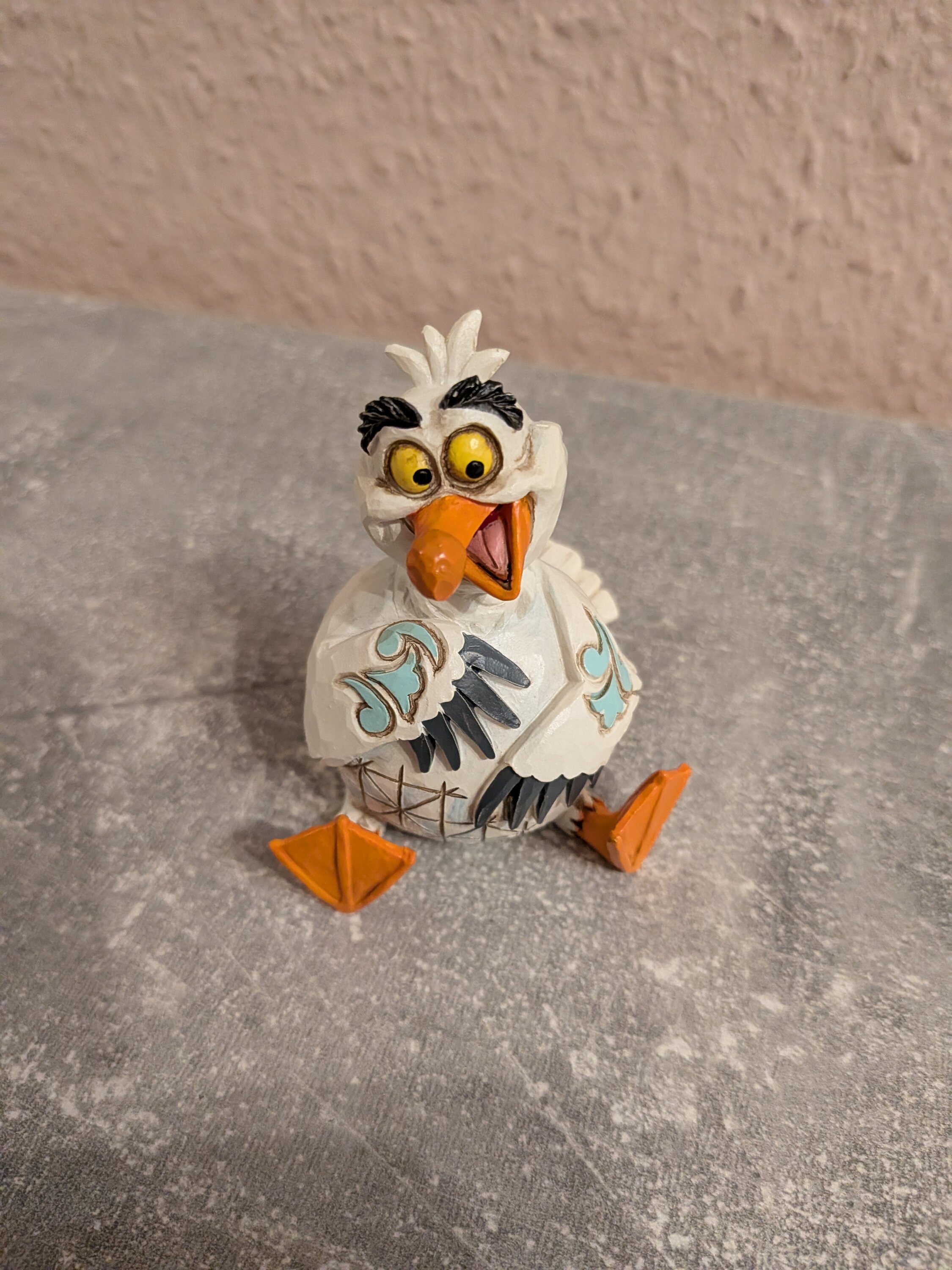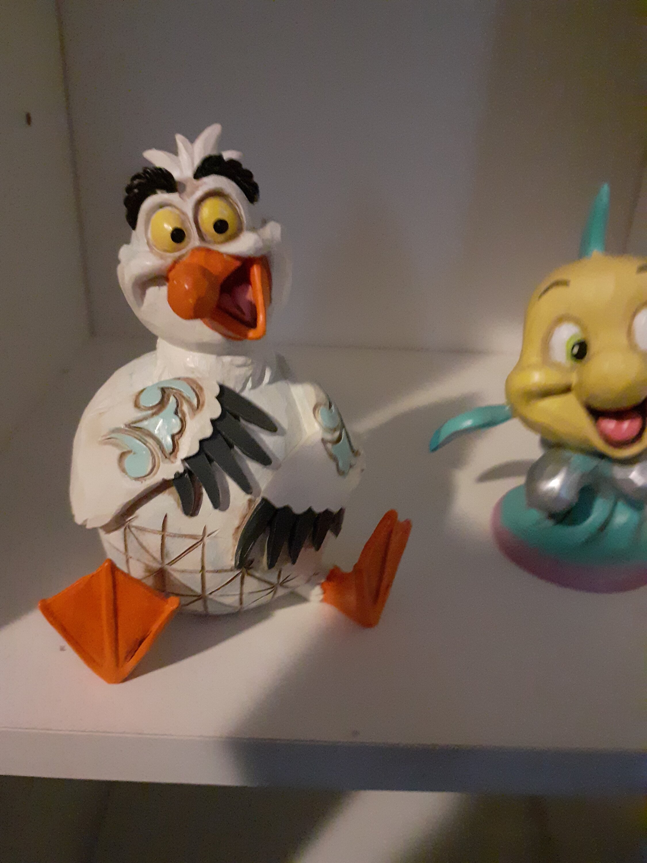 Attendevo con ansia una statuina di Scuttle realizzata da Jim Shore, perché era l'unico personaggio che mancava all'appello. E finalmente eccolo qui! Bellissimo!