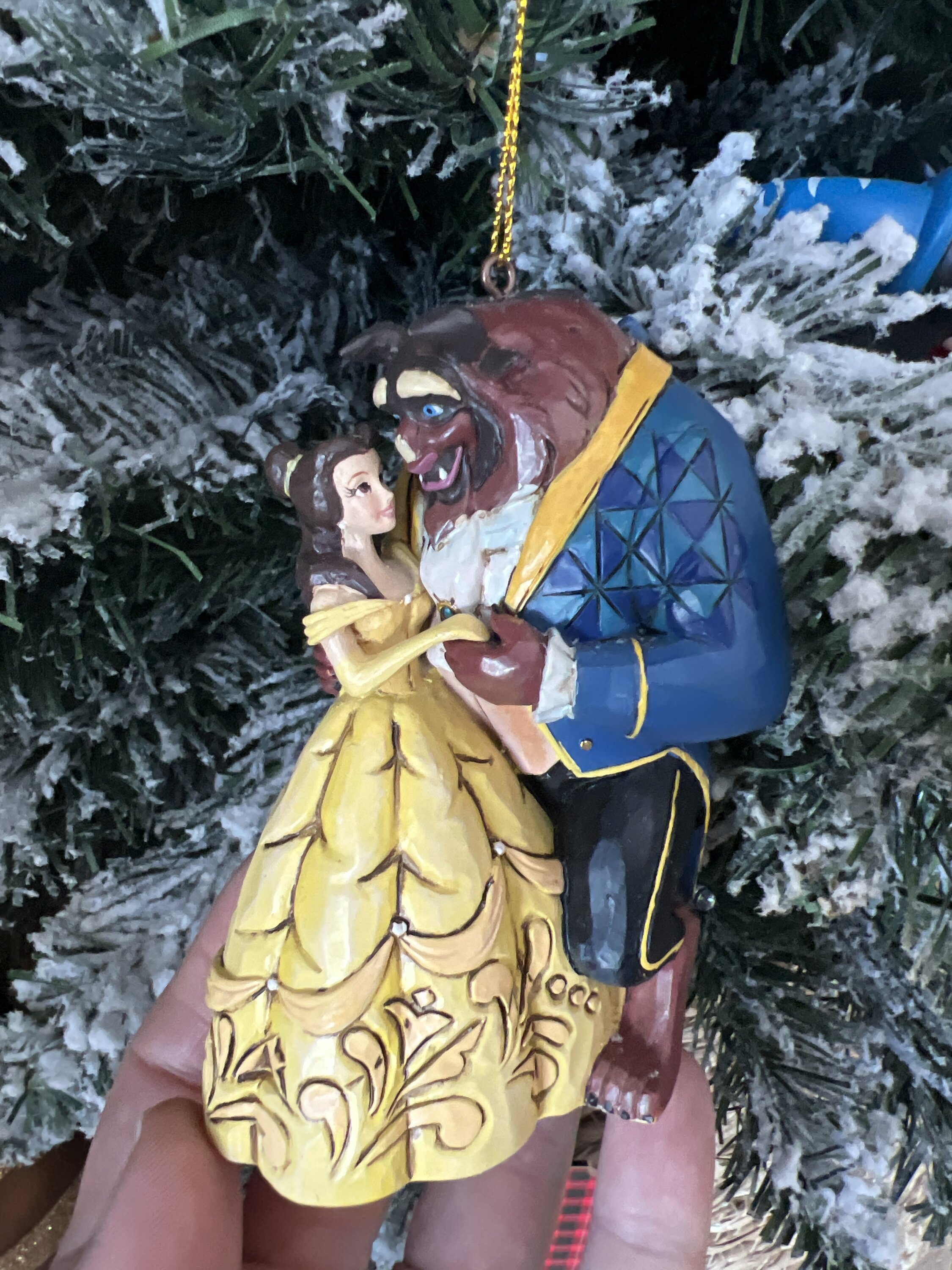 Zeer mooie voorstelling van het mythische koppel Belle en het Beest... Ideaal om in de boom te zetten, of zelfs om ergens op te hangen