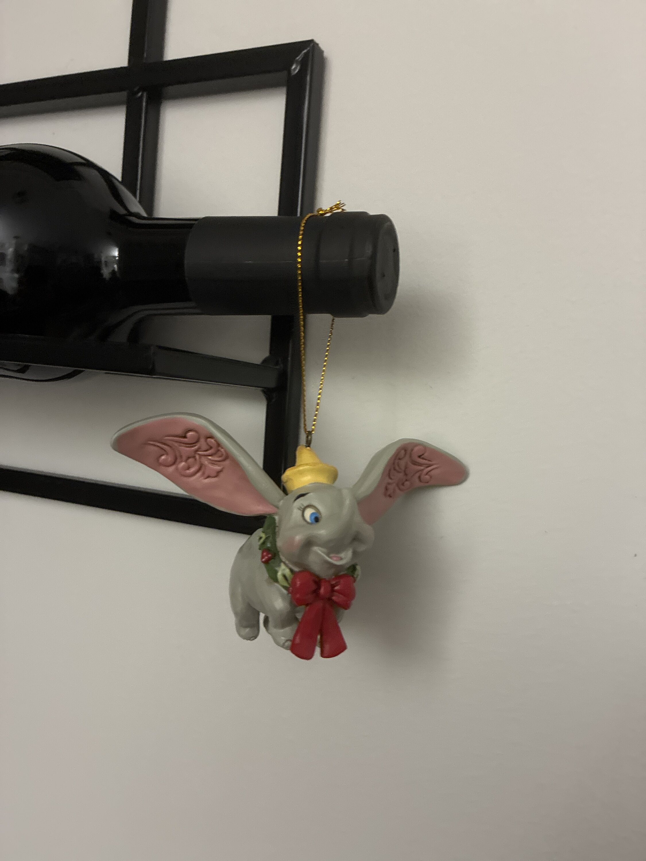 perfetta decorazione di Dumbo con le sue grandi orecchie che spicca il volo. Figure riprodotta minuziosamente, in tema natalizio, è perfetta come decorazione per l'albero di Natale