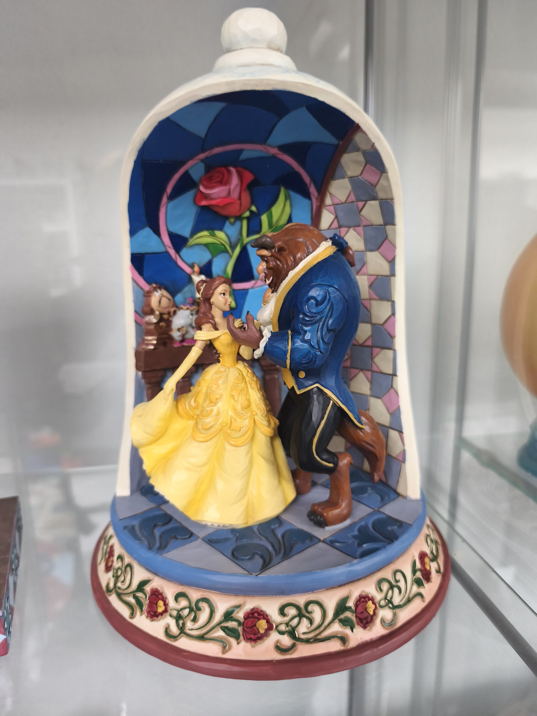 Magnifique pièce avec les personnages principaux 😍 Un seul et tout petit bémol c'est dommage qu'il n'y a rien dutout sur la coupole grise peut-être une rose gravé aurait été sympa 😊 Ça ne retire en rien à la beauté de la pièce. 👏👏👏