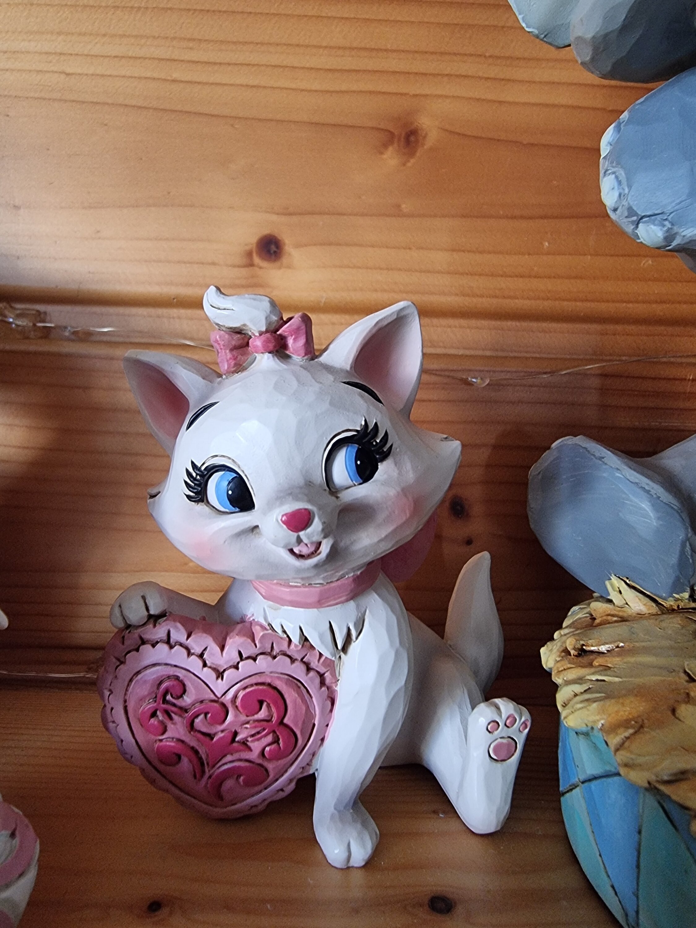 De Walt Disney-klassieker De Aristokatten volgde drie kittens en hun moeder door het platteland van Parijs nadat ze door een butler uit hun huis waren ontvoerd. Mary, het enige meisje in de bende, heeft een roze hart in dit schattige Jim Shore -beeldje