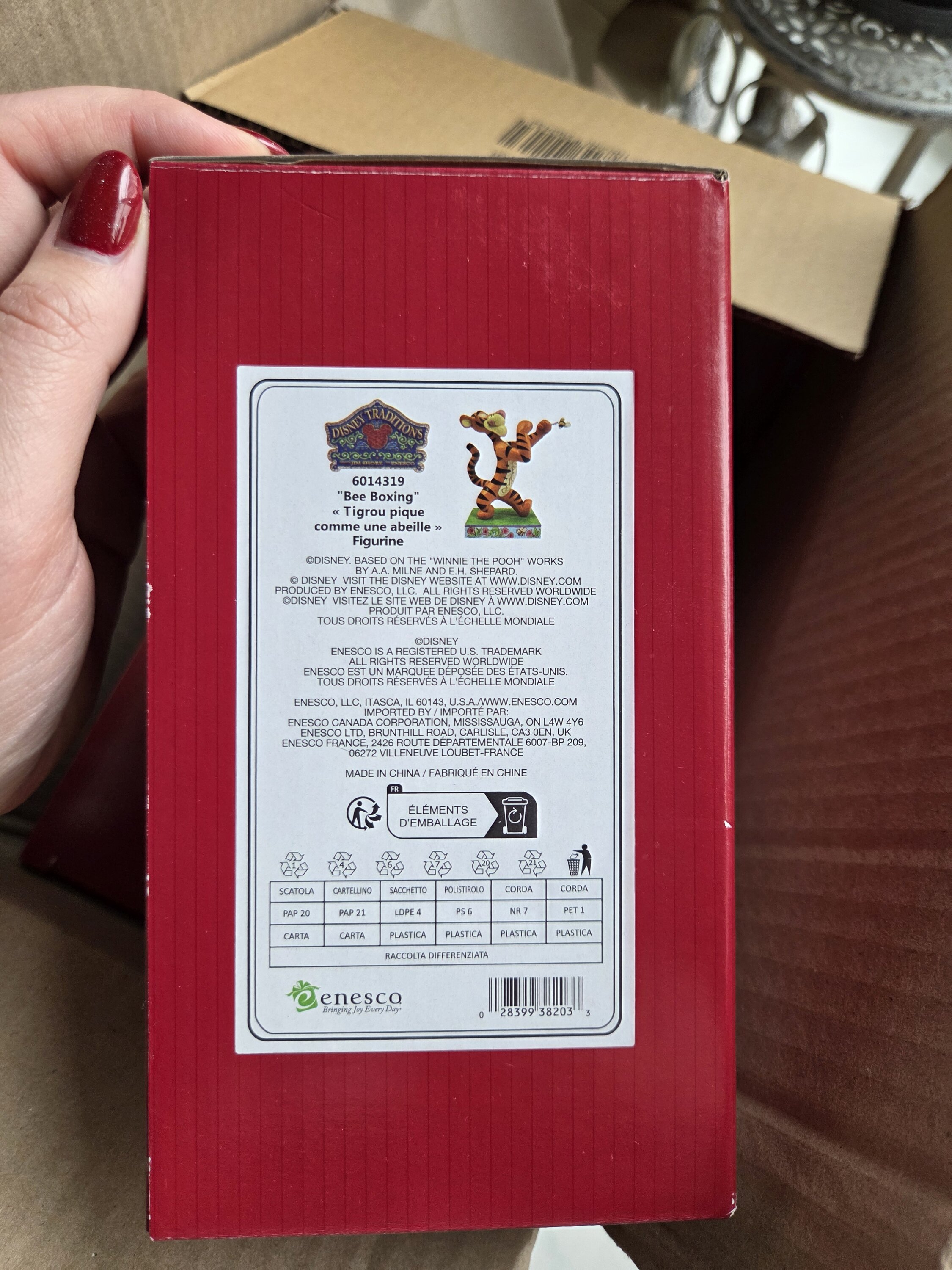 Met felle vastberadenheid vecht Teigetje tegen een bij in dit originele Winnie de Poeh-beeldje, gemaakt door Jim Shore. Met de kenmerkende rozet van de kunstenaar en uitstekend vakmanschap is dit leuke stuk een geweldige aanvulling op je collectie.