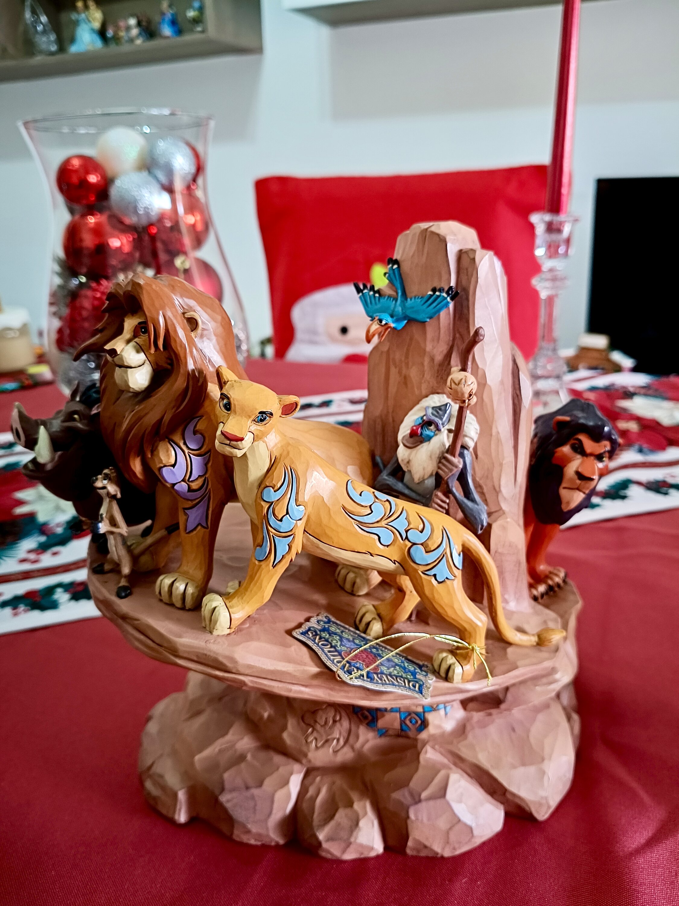 Je suis heureuse et impressionnée d avoir cette magnifique disney tradition du roi lion qui est grande et qui représente la scène la scene belle avec tous les personnages dont scar a l arrière 🥰🙏🙏merci Jim shore 🌠💙🙏