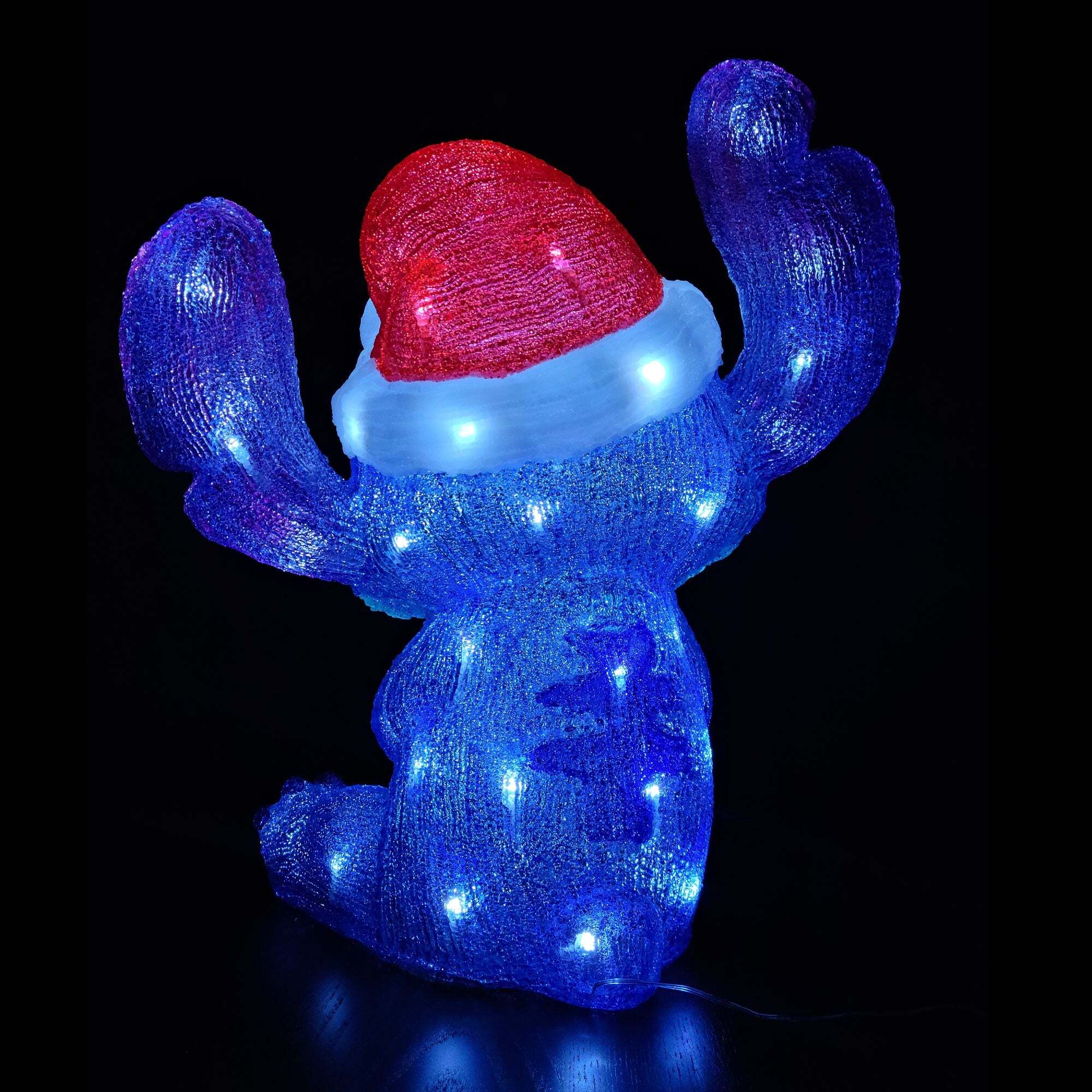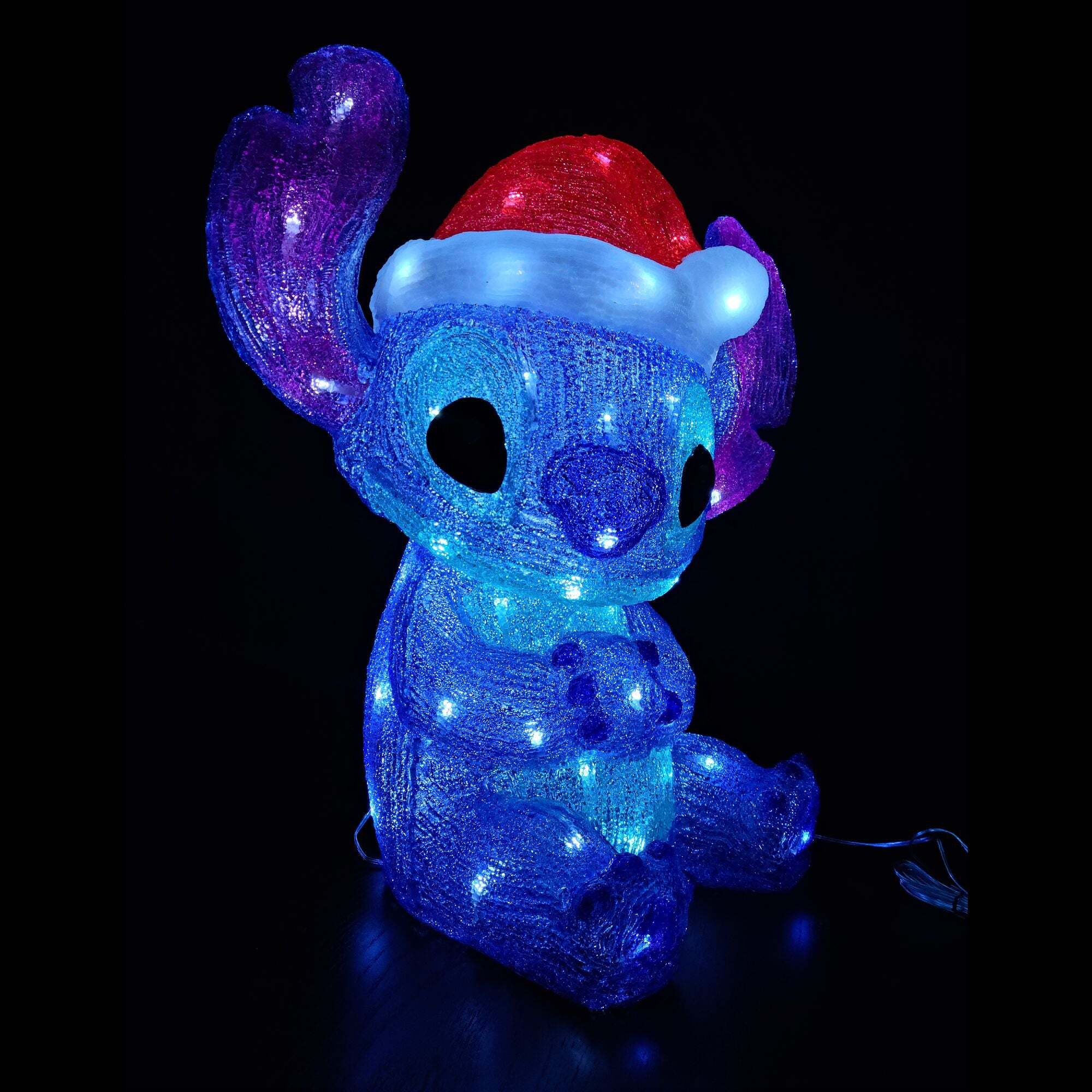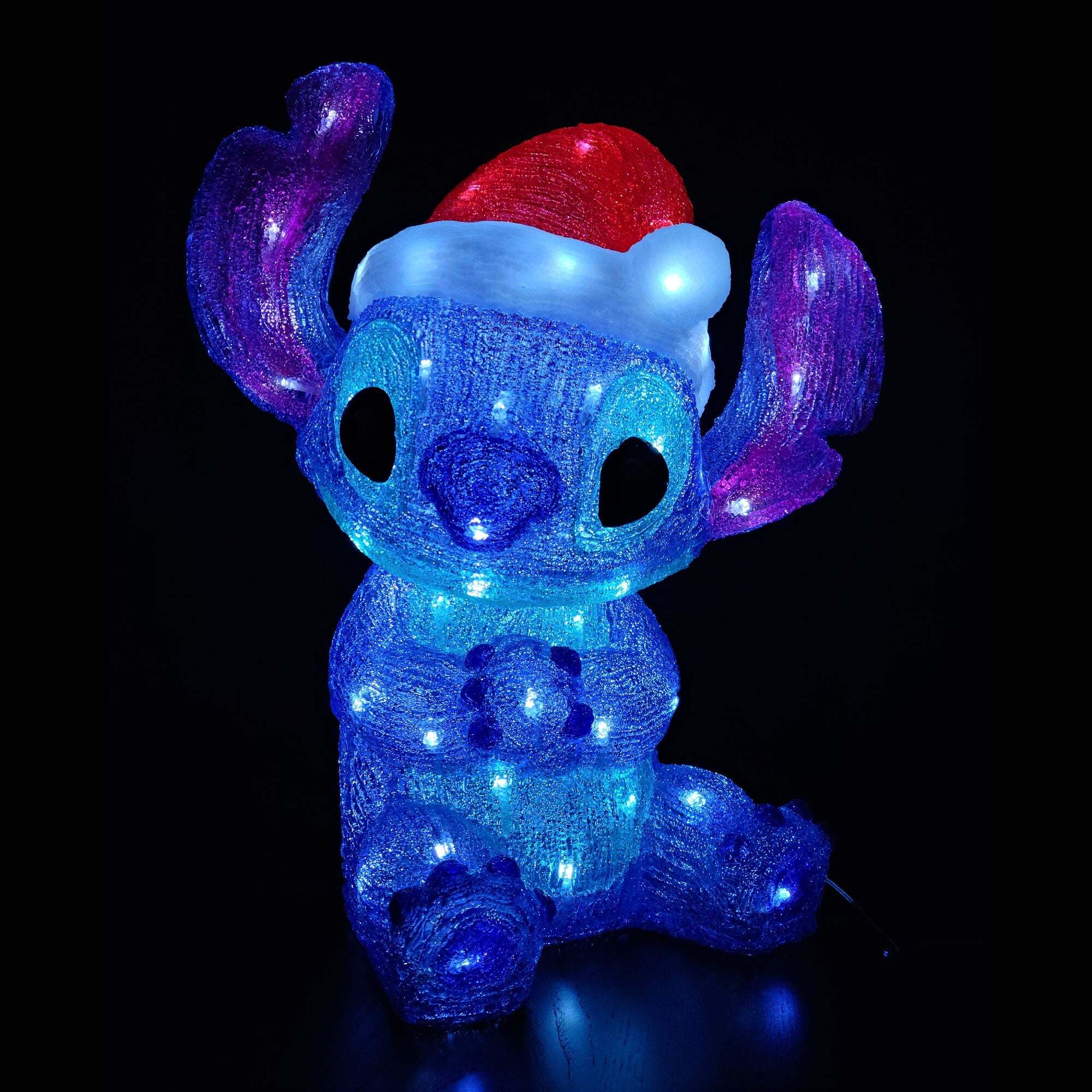 Stitch met zijn feestelijke hoed past perfect bij de feestdagen en brengt een vrolijke toets in huis of op je veranda met deze lichtgevende acryldecoratie. Perfect om je feestje op te vrolijken. Hij kan eenvoudig worden aangesloten op een weerbestendig stopcontact voor een magisch effect gedurende het hele seizoen. Inclusief stroomadapter.