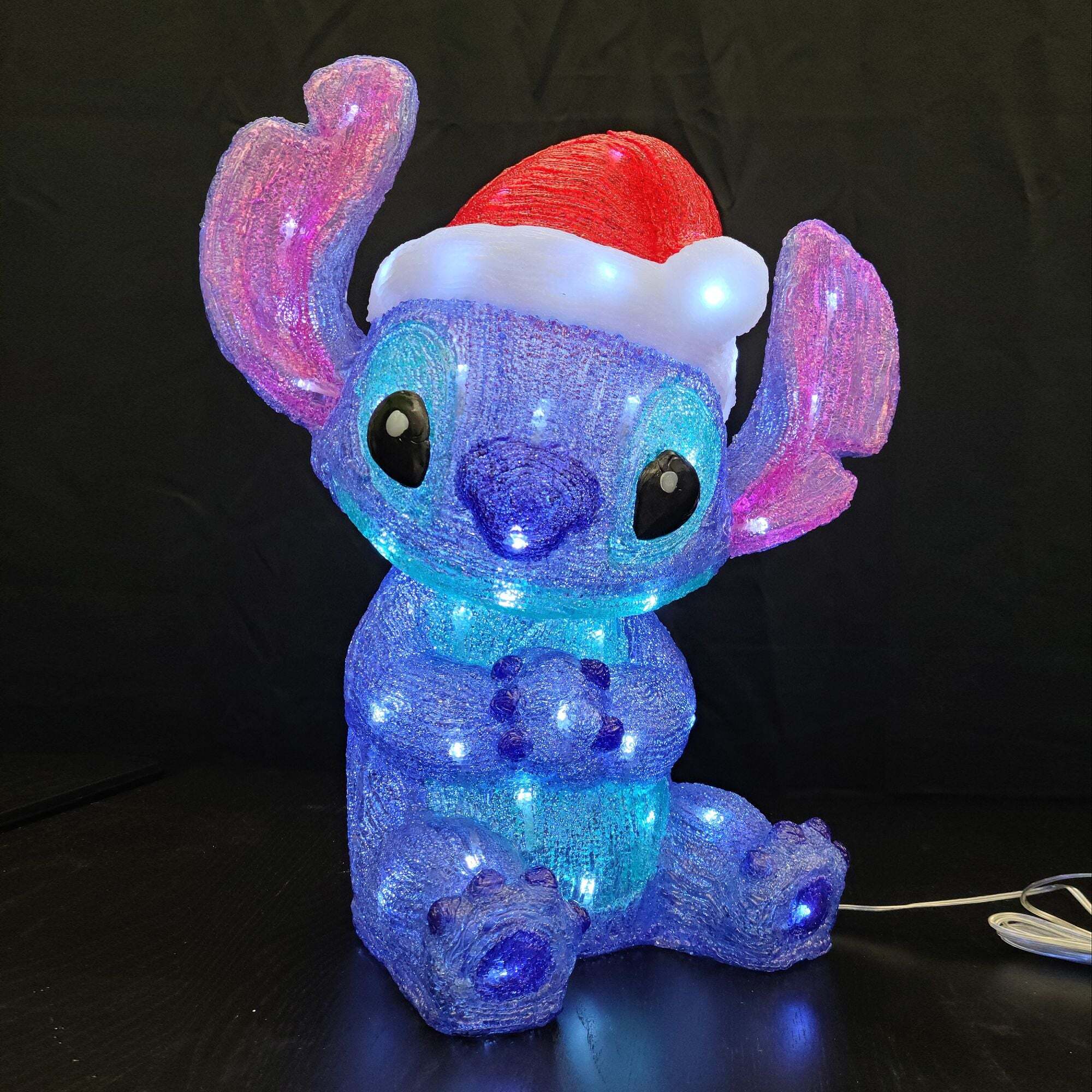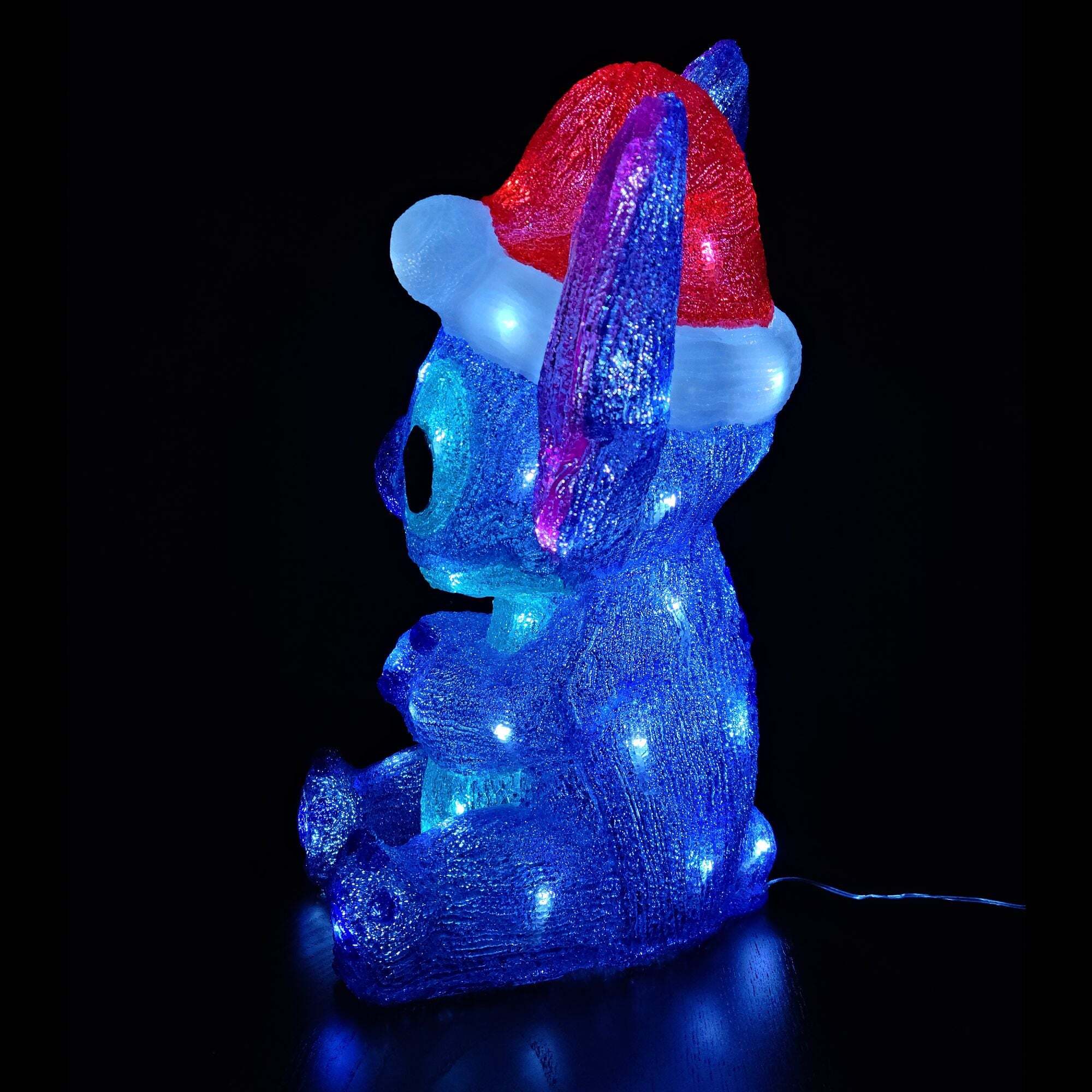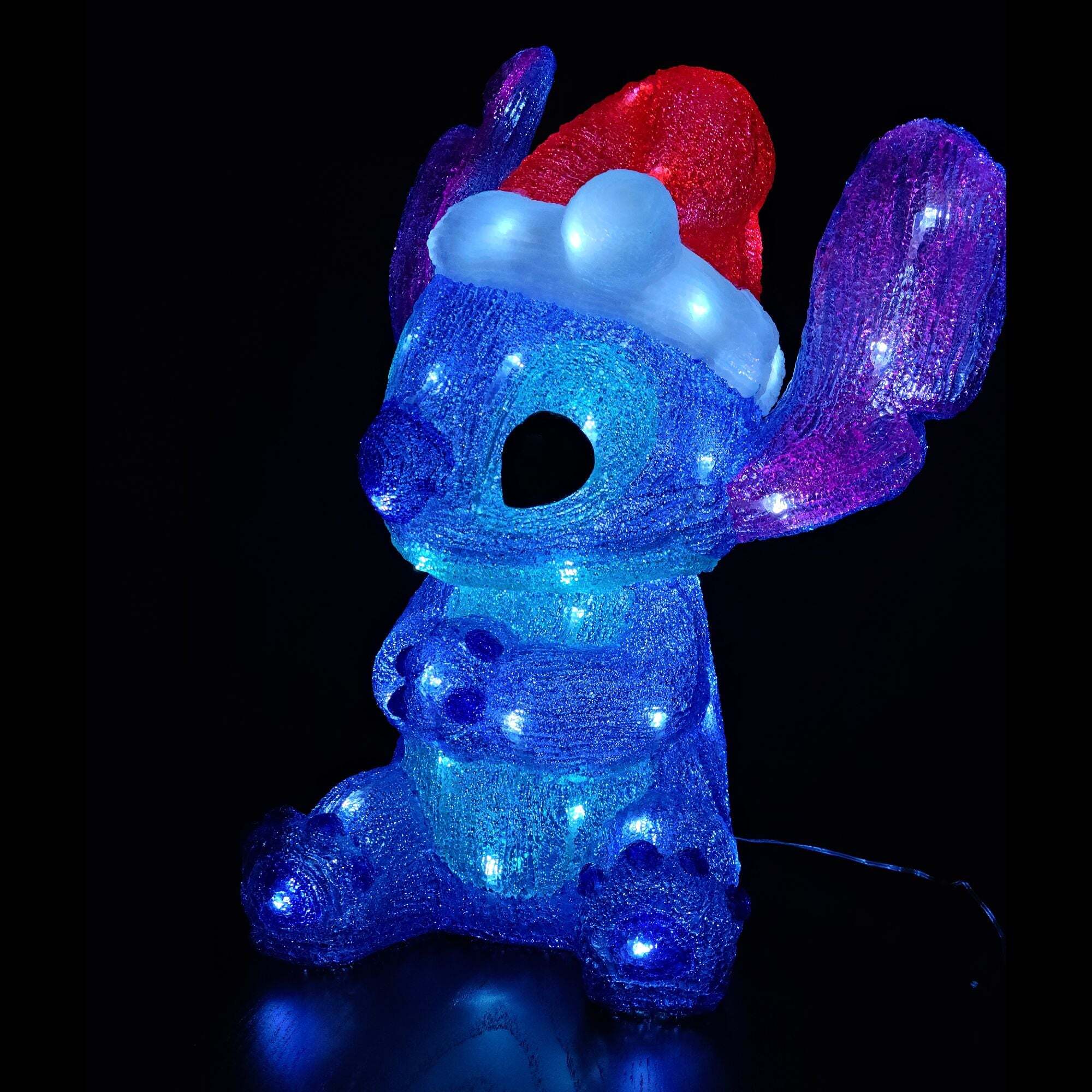 Stitch met zijn feestelijke hoed past perfect bij de feestdagen en brengt een vrolijke toets in huis of op je veranda met deze lichtgevende acryldecoratie. Perfect om je feestje op te vrolijken. Hij kan eenvoudig worden aangesloten op een weerbestendig stopcontact voor een magisch effect gedurende het hele seizoen. Inclusief stroomadapter.