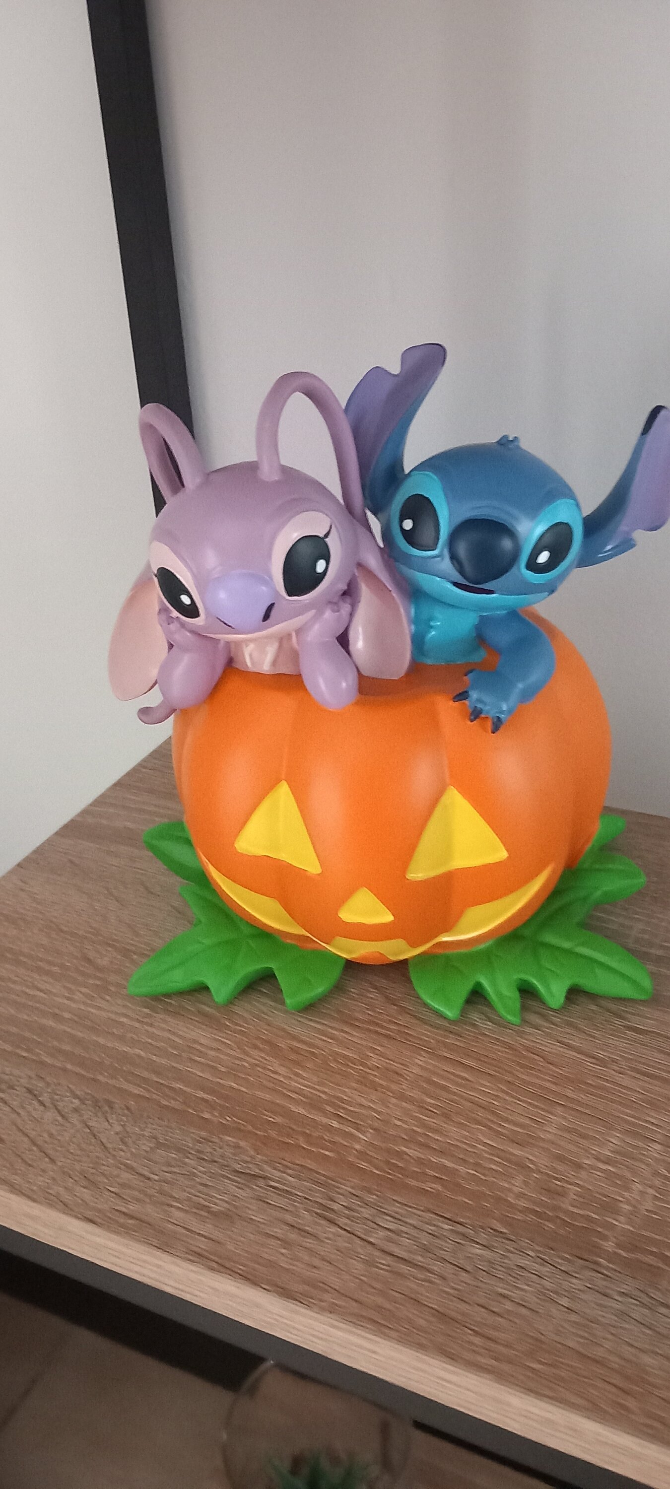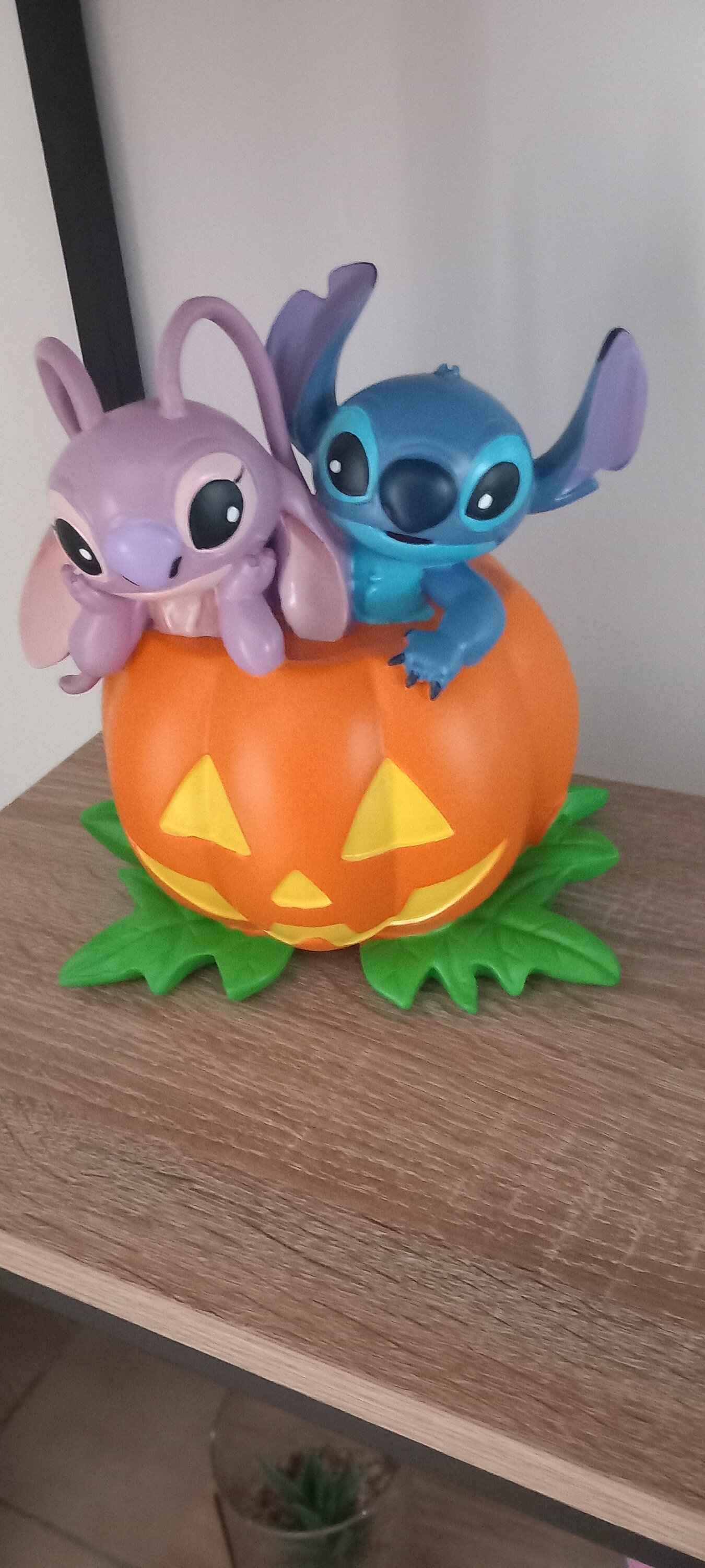 Te mooi, origineel om Stitch en Angel in een pompoen te zien. Het is gemaakt van kunsthars en heeft een redelijk formaat. Het beeldje maakte mijn Disney-collectie compleet en maakte mijn kleinkinderen blij, die dol zijn op mijn nieuwe producten; ik raad het verzamelaars aan +++++