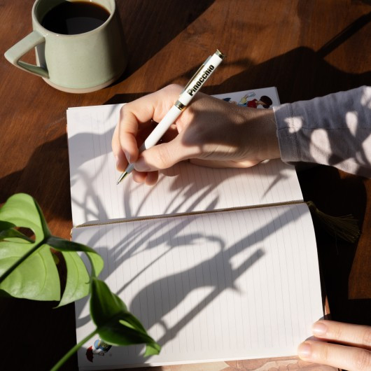 Wat een mooi notitieboek van Pinokkio. Ik ben er helemaal weg van. Prachtige uitvoering. En de pen is ook top.