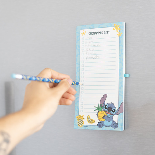 Het heeft twee grote magneten aan de achterkant, waardoor het stevig blijft zitten waar je het ook neerlegt. Het bevat 65 afneembare pagina's en een bijpassend potlood.