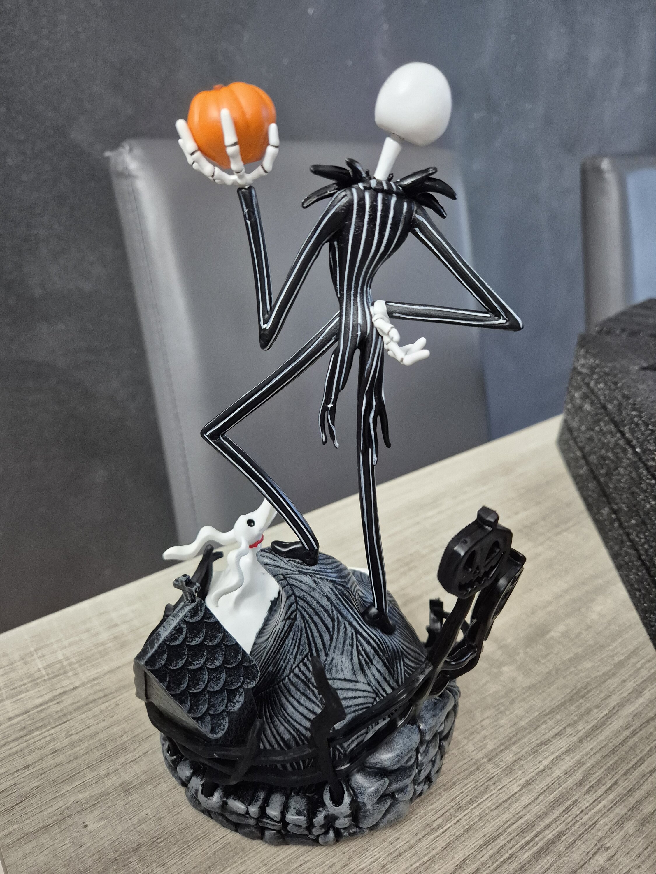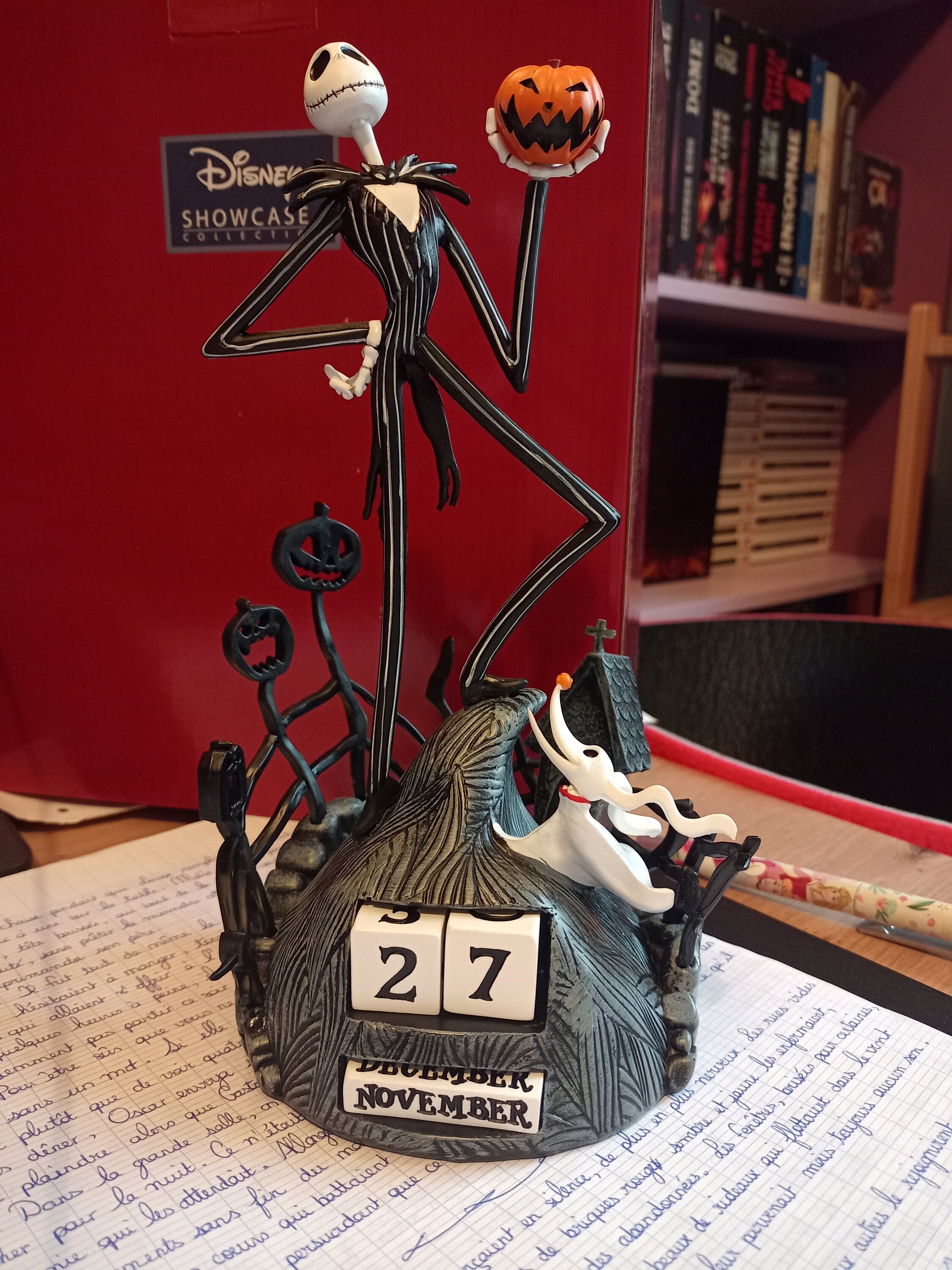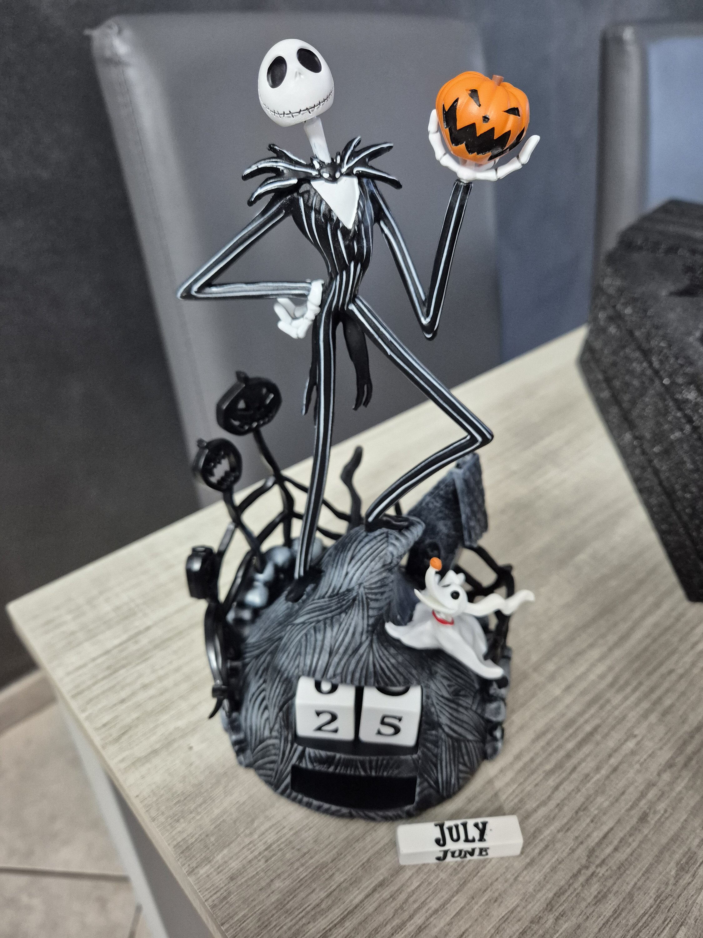 3D eeuwigdurende kalender, gemaakt van hars en met de hand geschilderd. Het bestaat uit 2 beweegbare delen, de pompoen en het hoofd van Jack Skellington, deze twee delen kunnen met elkaar worden vervangen om het beeldje te kunnen personaliseren. Het bevat 5 blokken met dagen en maanden die kunnen worden uitgewisseld en gecombineerd om alle mogelijke data te verkrijgen.