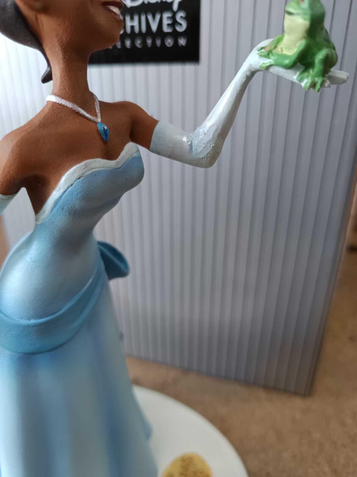 Dit vakkundig vervaardigde, handgeschilderde, gelimiteerde Tiana-sculptuur uit De Prinses en de Kikker is afkomstig van een ongeschilderde animatiemaquette uit de collectie van het bedrijf. De productiemallen worden gemaakt op basis van een digitale driedimensionale scan. Dit beeldje van Tiana is gemaakt van kunsthars en is ongeveer 26 cm hoog.