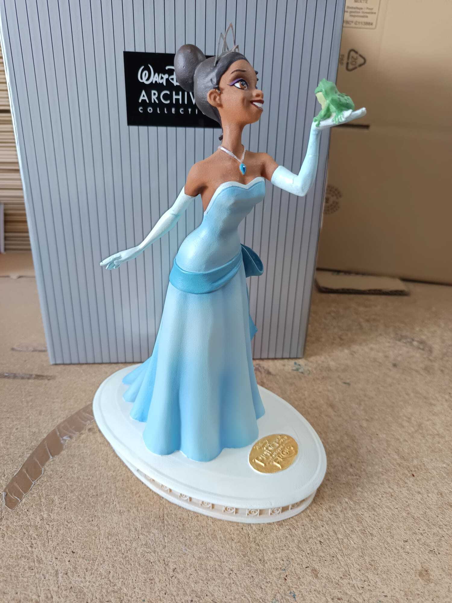 Dit vakkundig vervaardigde, handgeschilderde, gelimiteerde Tiana-sculptuur uit De Prinses en de Kikker is afkomstig van een ongeschilderde animatiemaquette uit de collectie van het bedrijf. De productiemallen worden gemaakt op basis van een digitale driedimensionale scan. Dit beeldje van Tiana is gemaakt van kunsthars en is ongeveer 26 cm hoog.