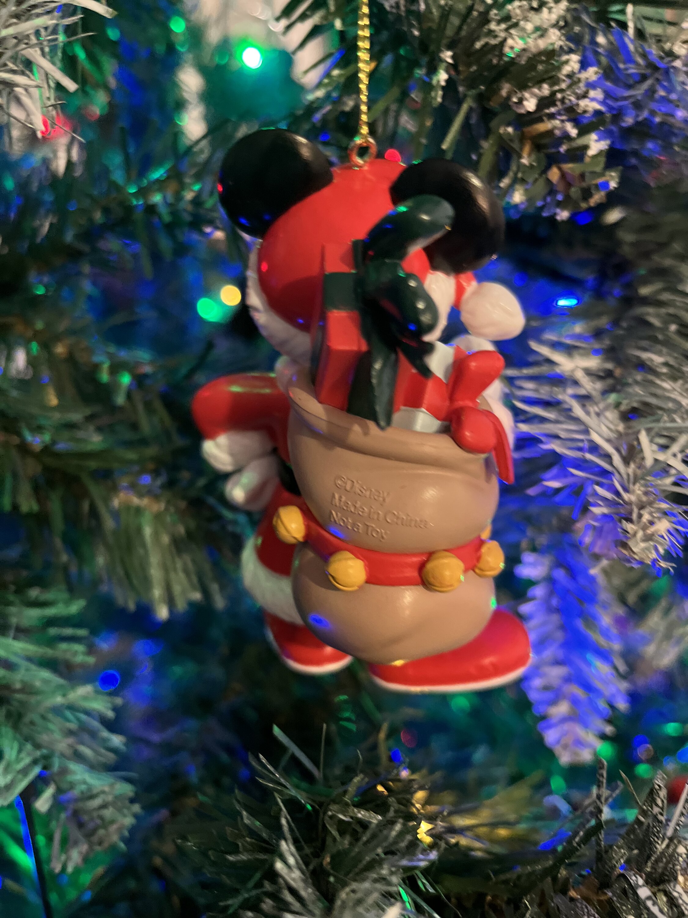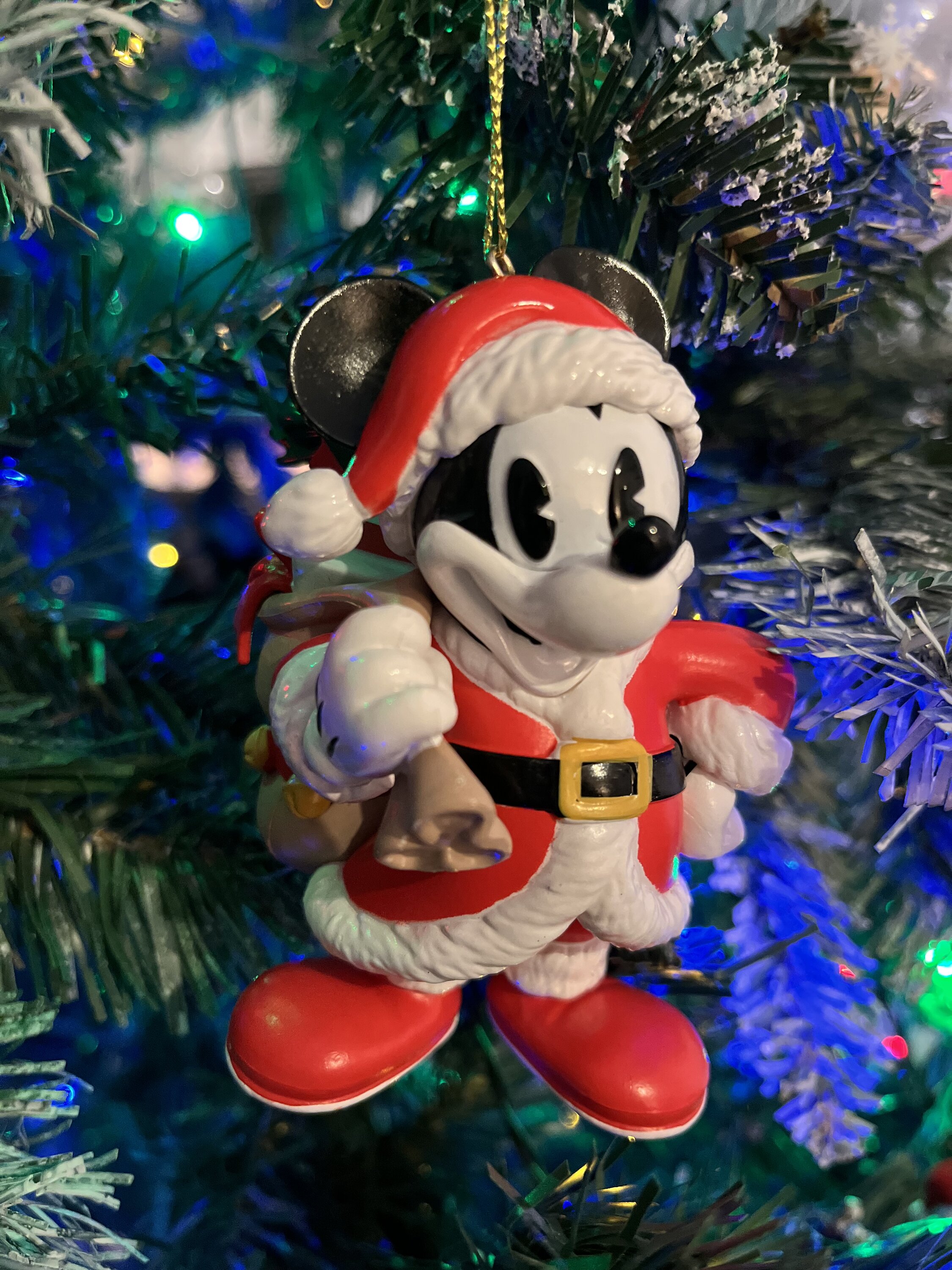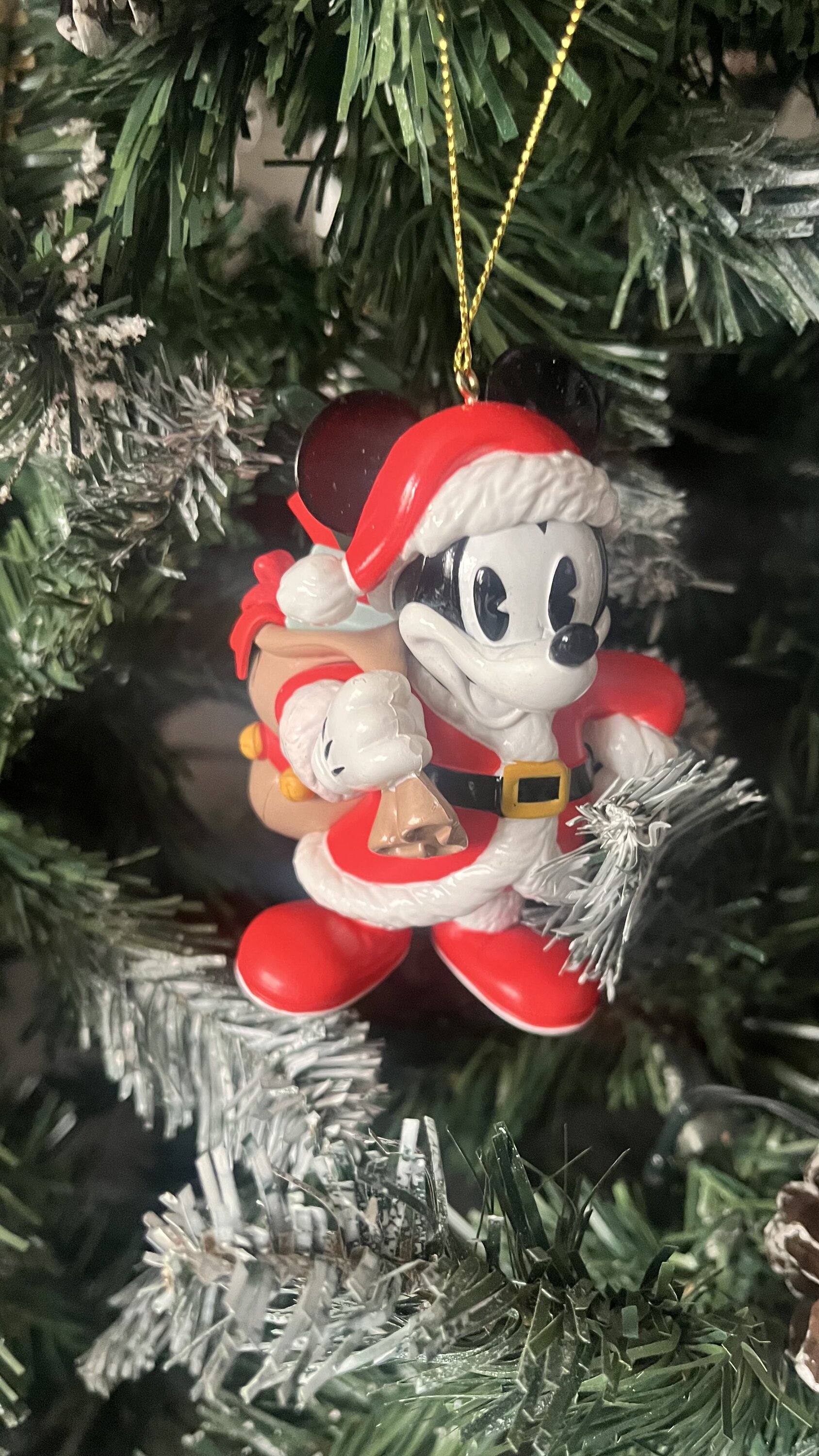 Très jolie ornement de Mickey Vintage. Matière Plastique/Résine finition brillante. Le rouge est très vif presque fluo.