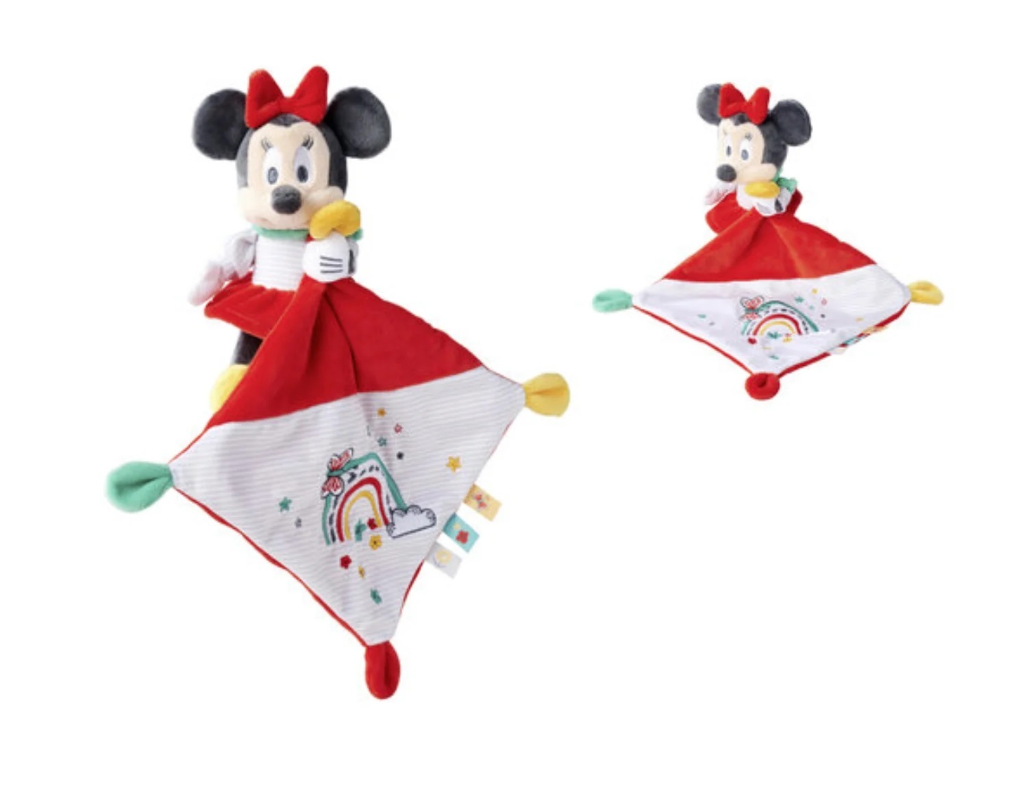 Minnie Rainbow pluche knuffel + dekentje 13 cm - Disney Mickey & vrienden Minnie Rainbow pluche knu...
