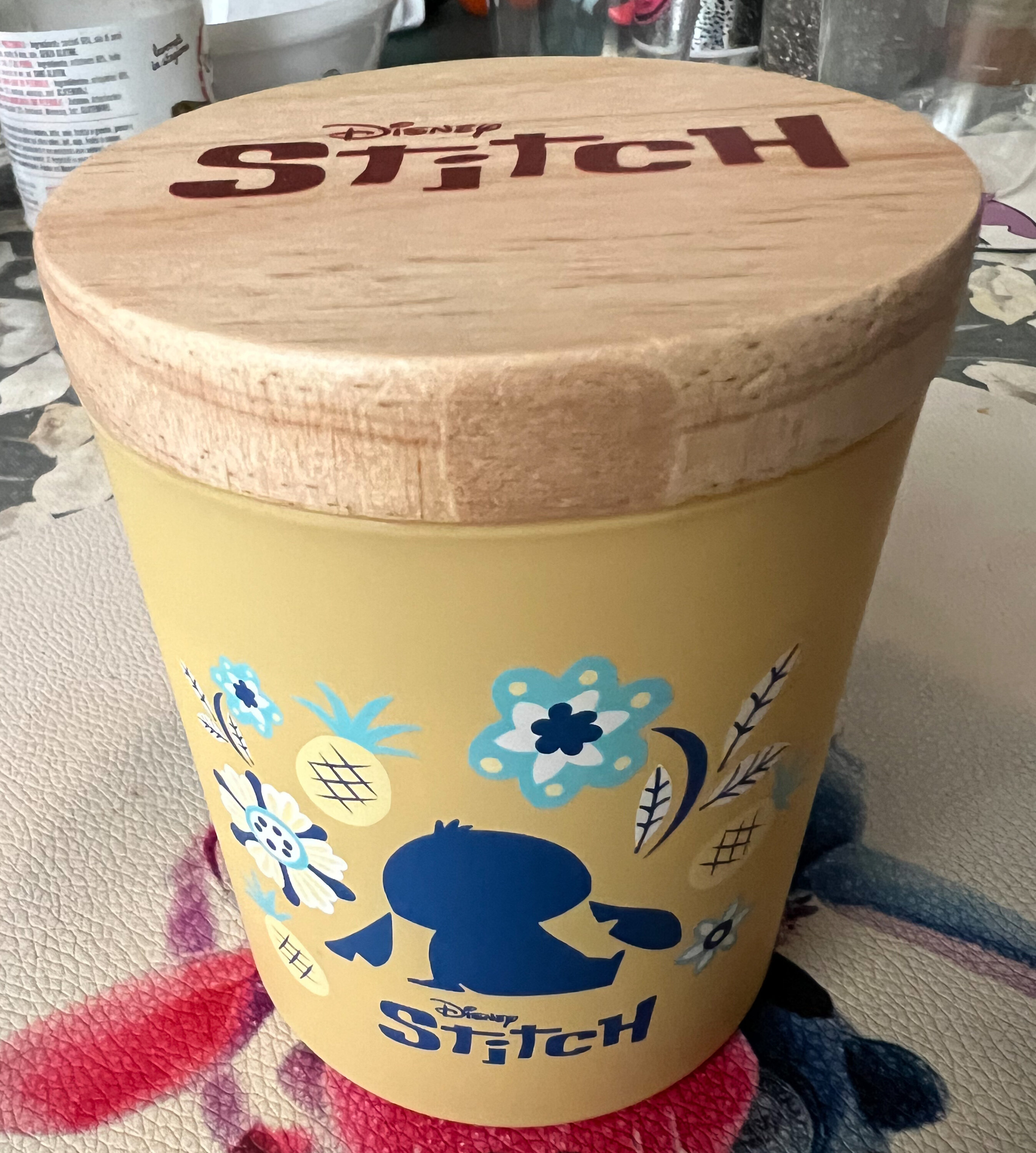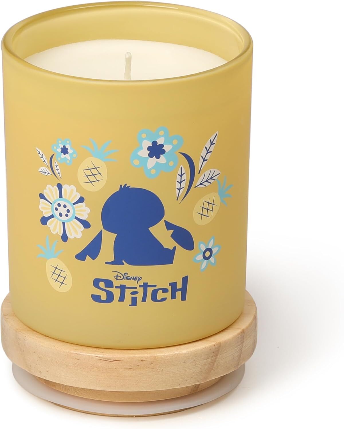 De kaars zit in een prachtig vormgegeven gele glazen pot met een speels Stitch silhouet aan de zijkant, heeft een charmant ontworpen deksel en wordt geleverd in een bijpassende gele geschenkdoos, waardoor het de perfecte aanvulling is op de collectie van elke Disney-fan.