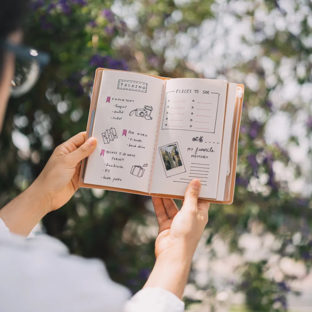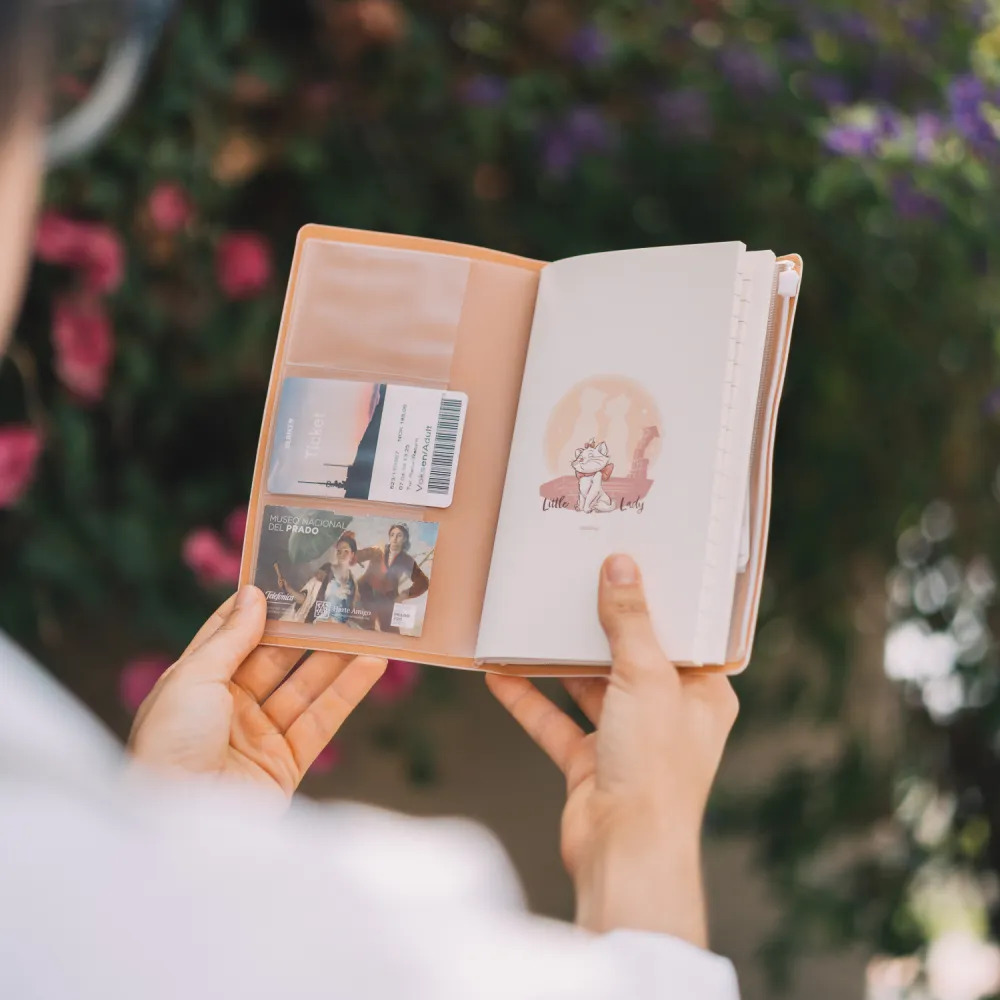 Reisdagboek met een zachte polyurethaan kaft. Inclusief een kaartvak, twee notitieboeken van 80 vellen (160 pagina's) met twee verschillende papiersoorten (puntjes en gelinieerd) en een binnenvak aan de achterkant. Voorzien van een elastische sluiting en een drukknoop van polyurethaan.