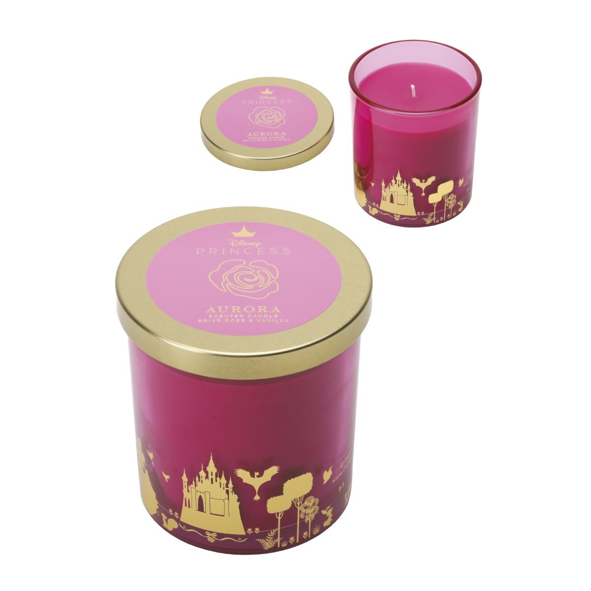 Glazen Kaars Met Deksel - Disney Doornroosje, Wilde Roos & Vanille