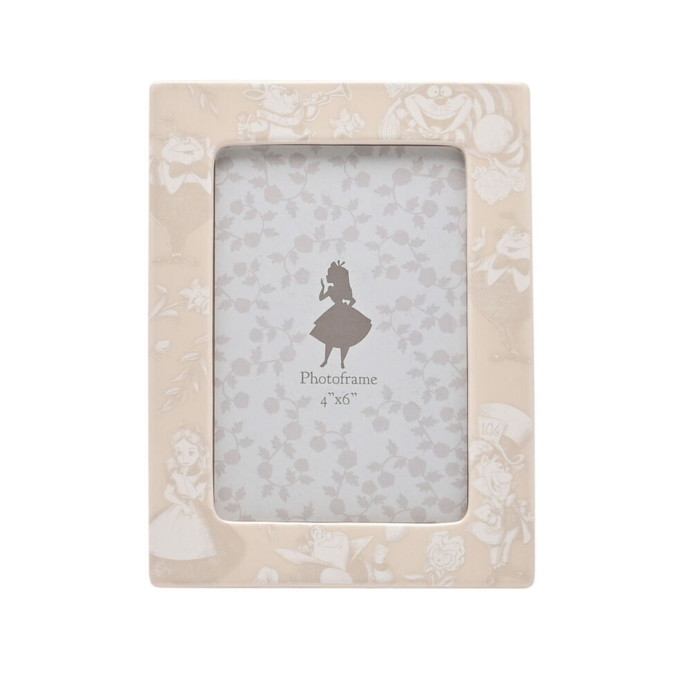 Deze fotolijst van 10 cm x 15 cm (4" x 6") is gemaakt van keramiek met een geglazuurde afwerking en is een eerbetoon aan de geliefde personages uit Wonderland.