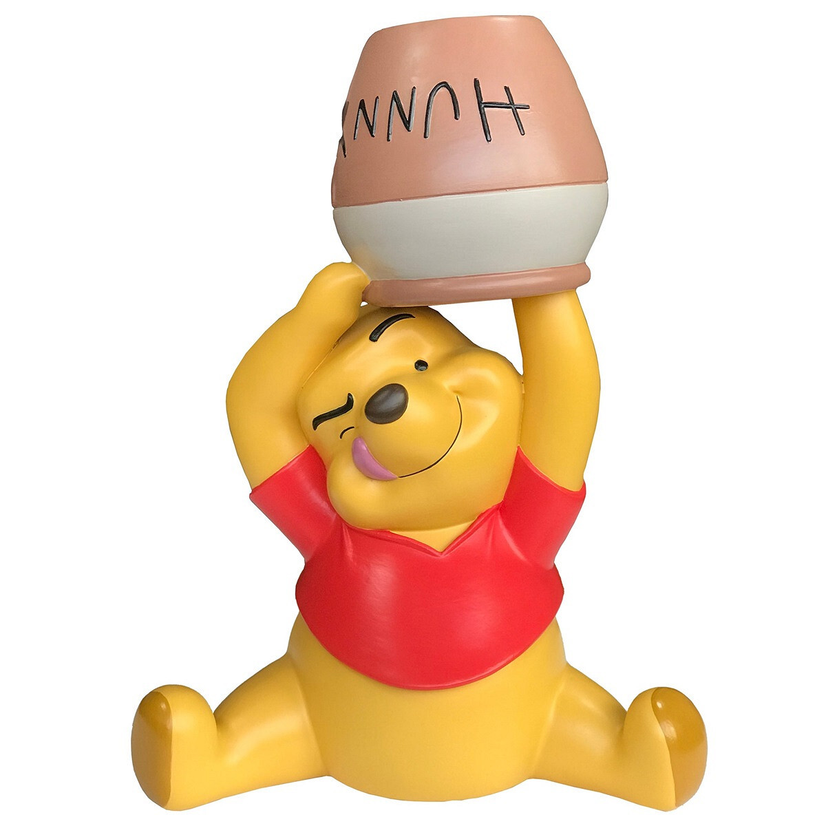 Dit decoratieve beeldje is gemaakt van hars en combineert duurzaamheid met fijn bewerkte details, waardoor de iconische kenmerken van Winnie de Pooh worden benadrukt.
